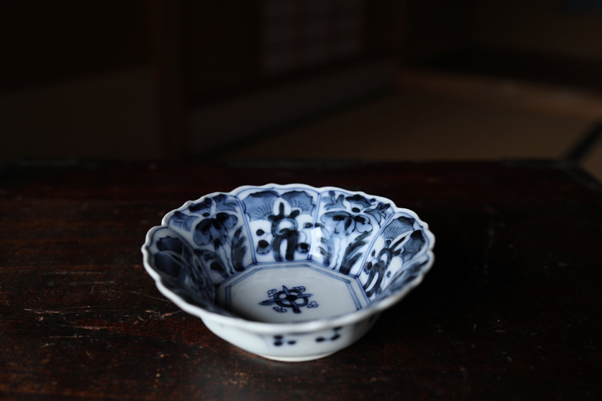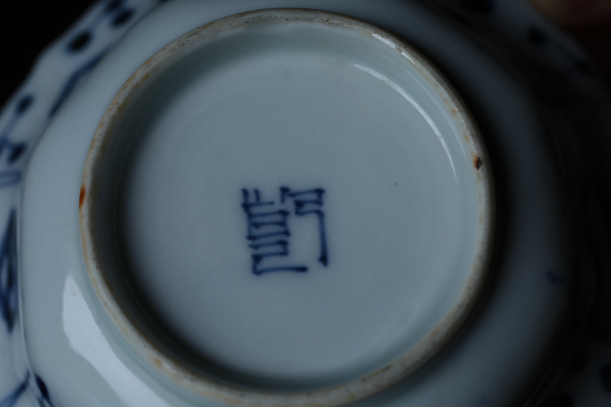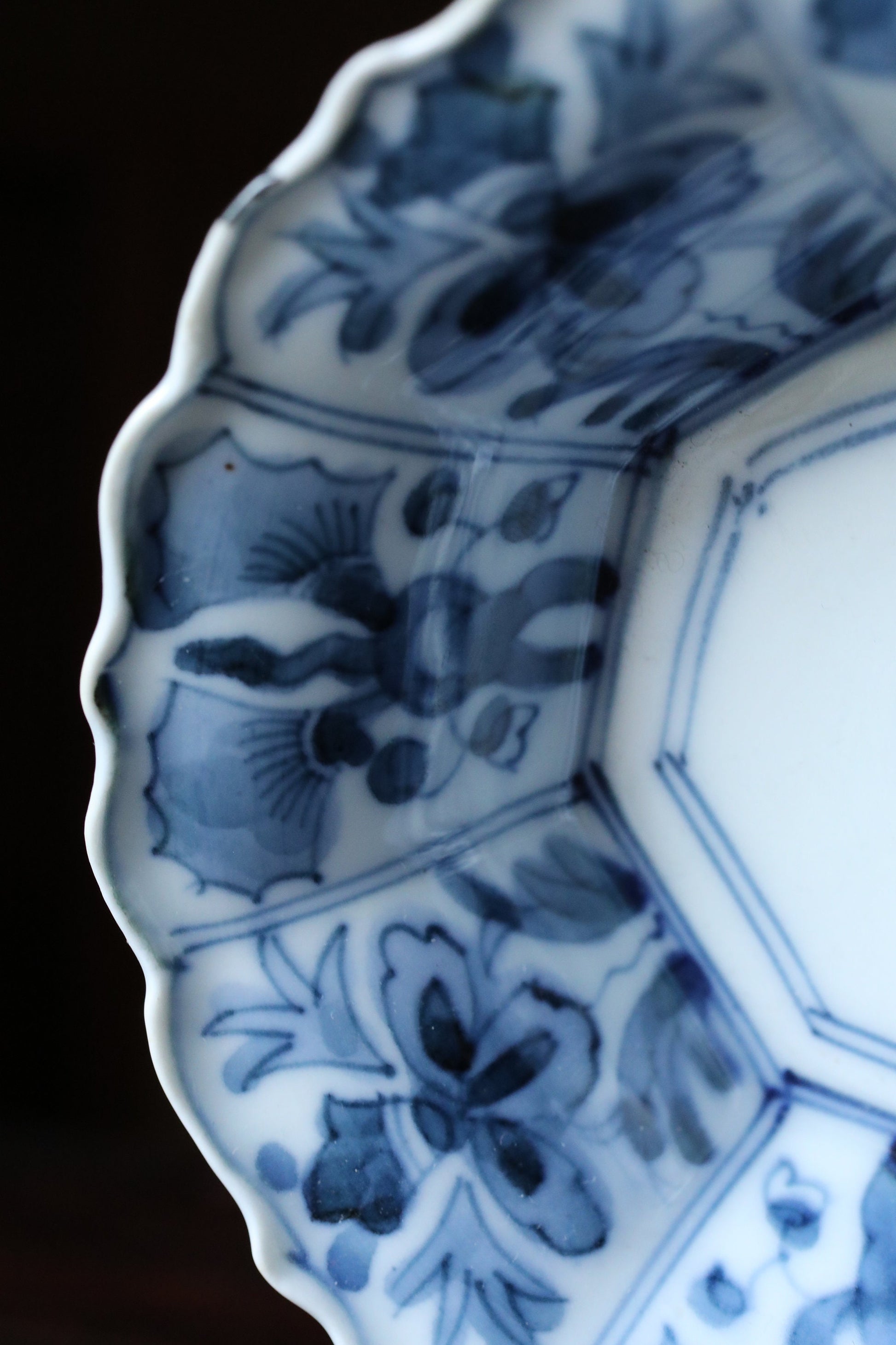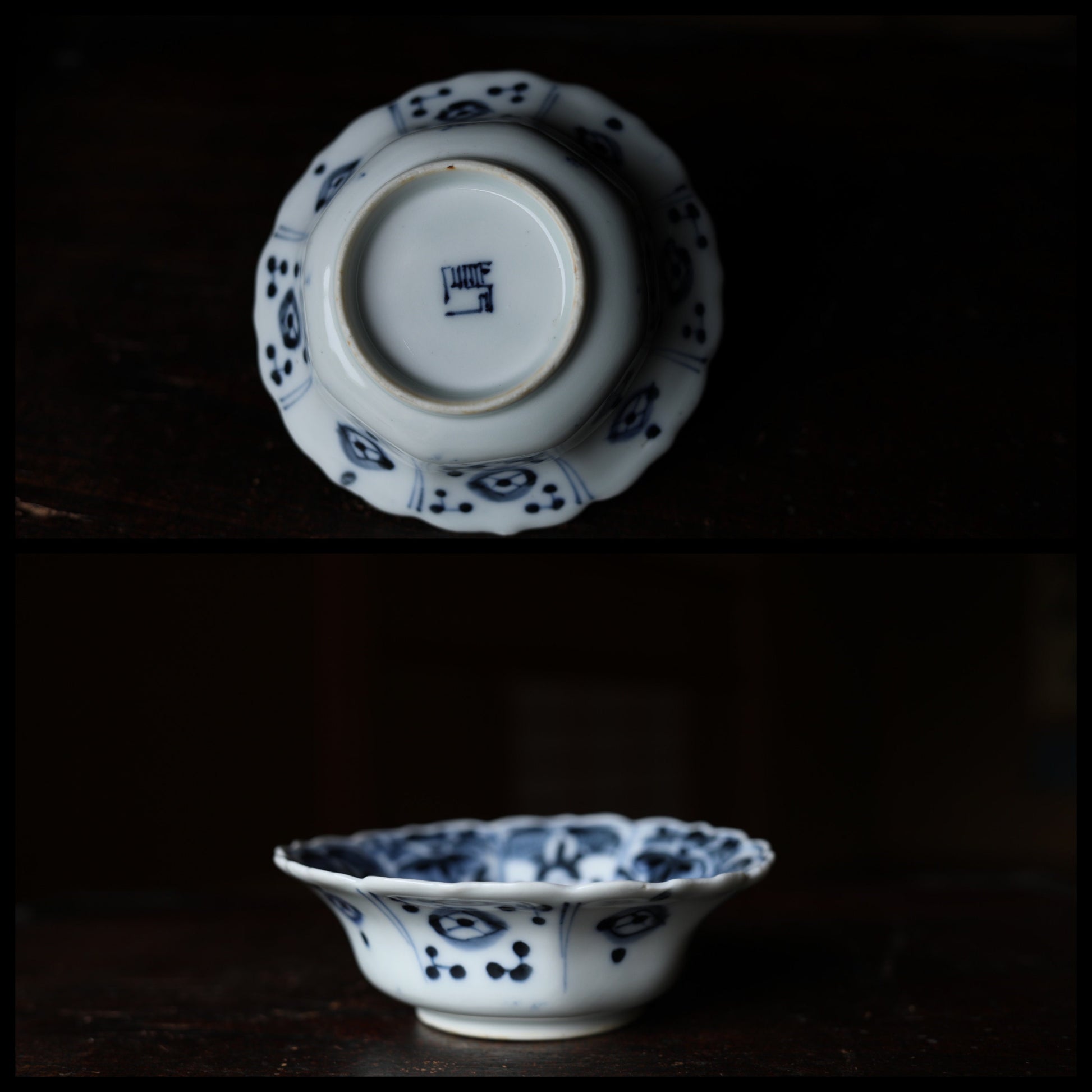 This pottery called 伊万里 Imari was made during the Meiji period. All are hand-painted, with plant and flower motifs on the back and front.