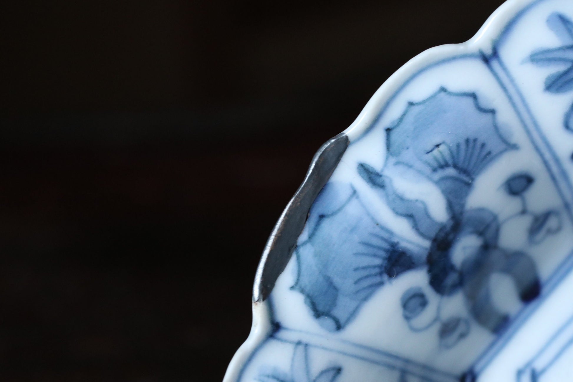The shapes are delicate and the edges are very beautiful with a flower-like shape. It has been repaired in several places with silver and lacquer. It is also very cool.