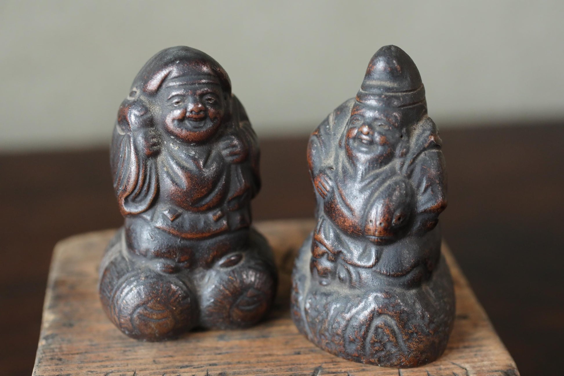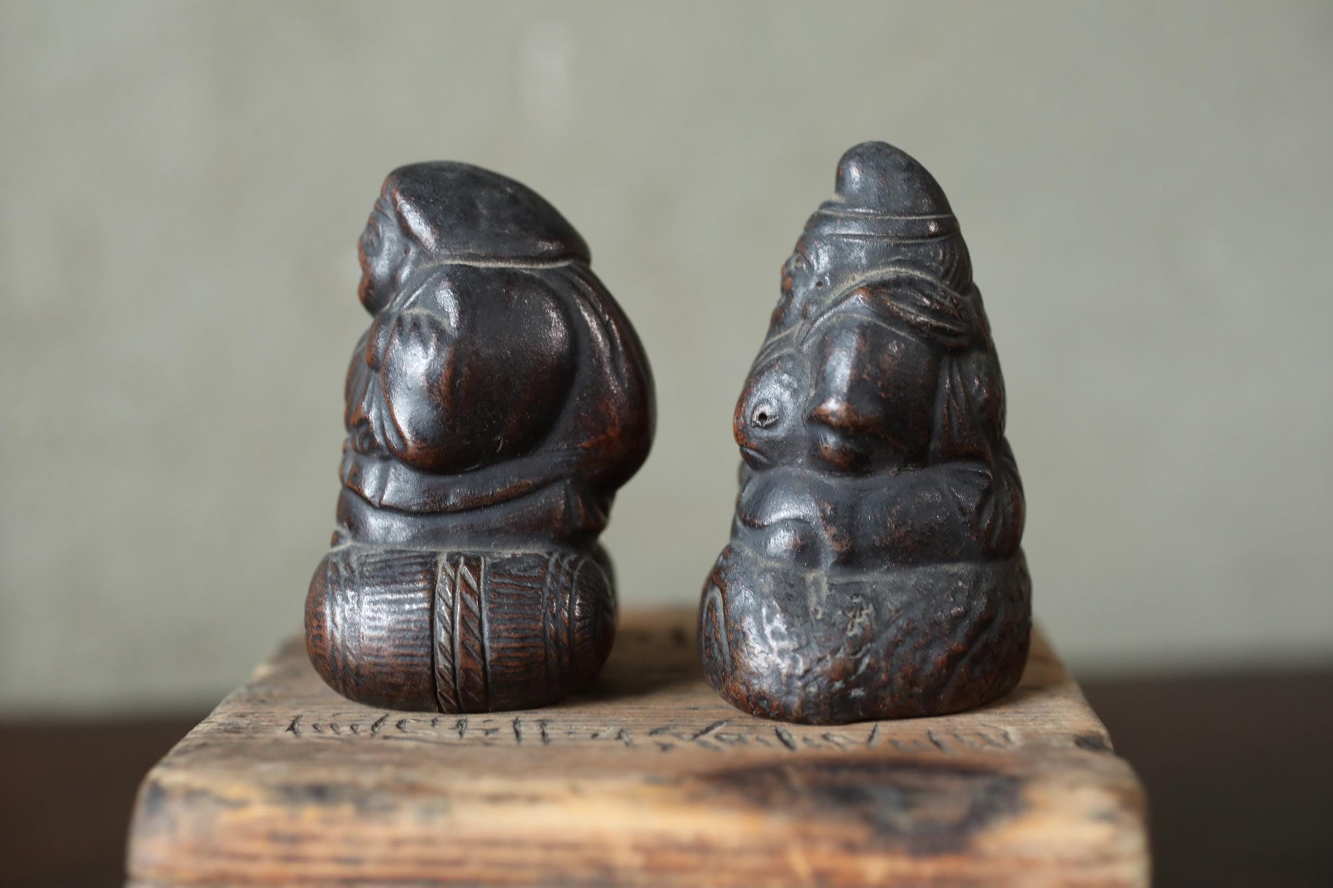 Ebisu symbolizes the abundance of the sea and the good fortune that comes from diligence and fair trade. Daikoku symbolizes material wealth, abundant food, and prosperous households. He is often seen as the guardian deity of households and granaries.