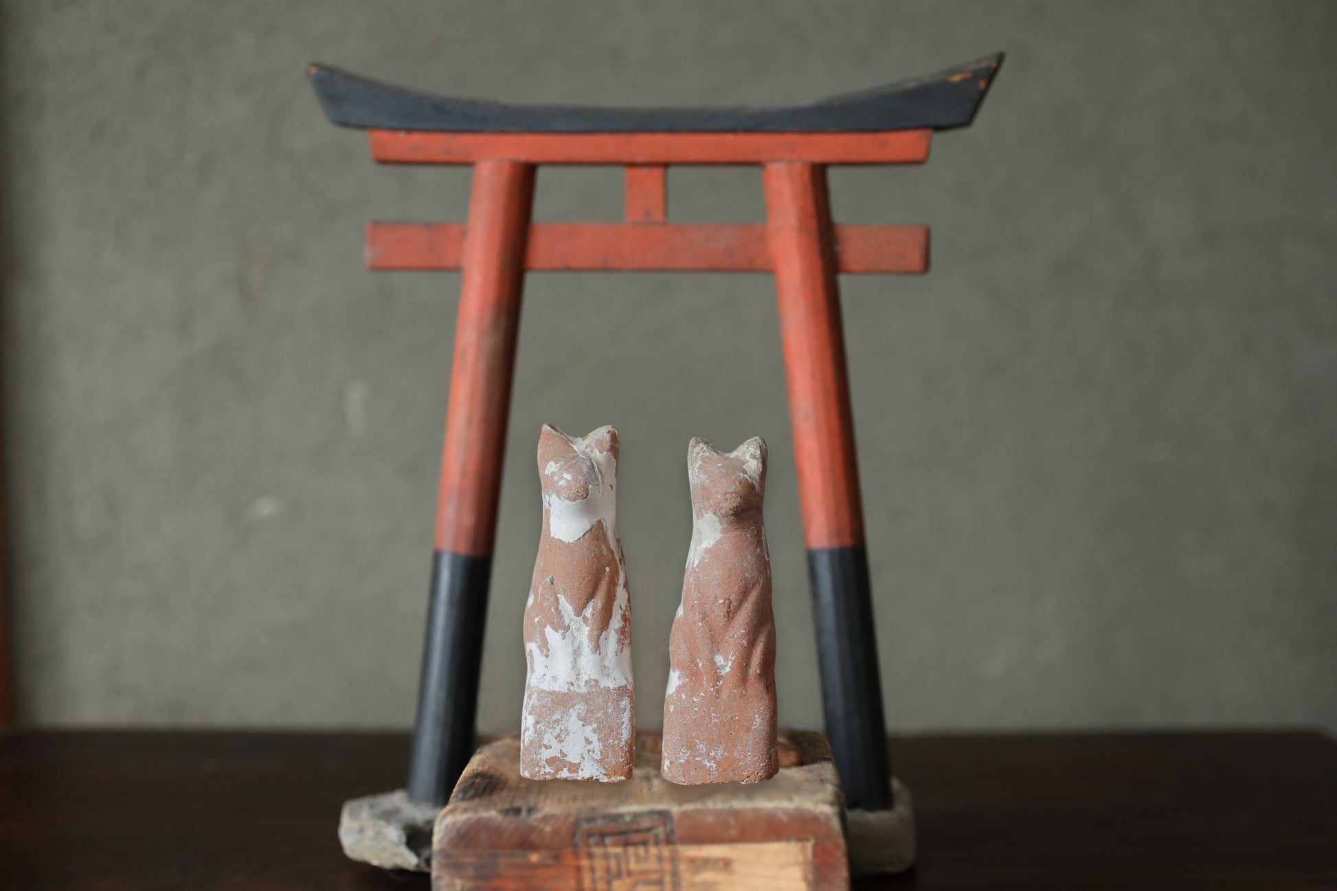 □ Material : pottery ※The torii in the back and stand is not included, only the dolls.