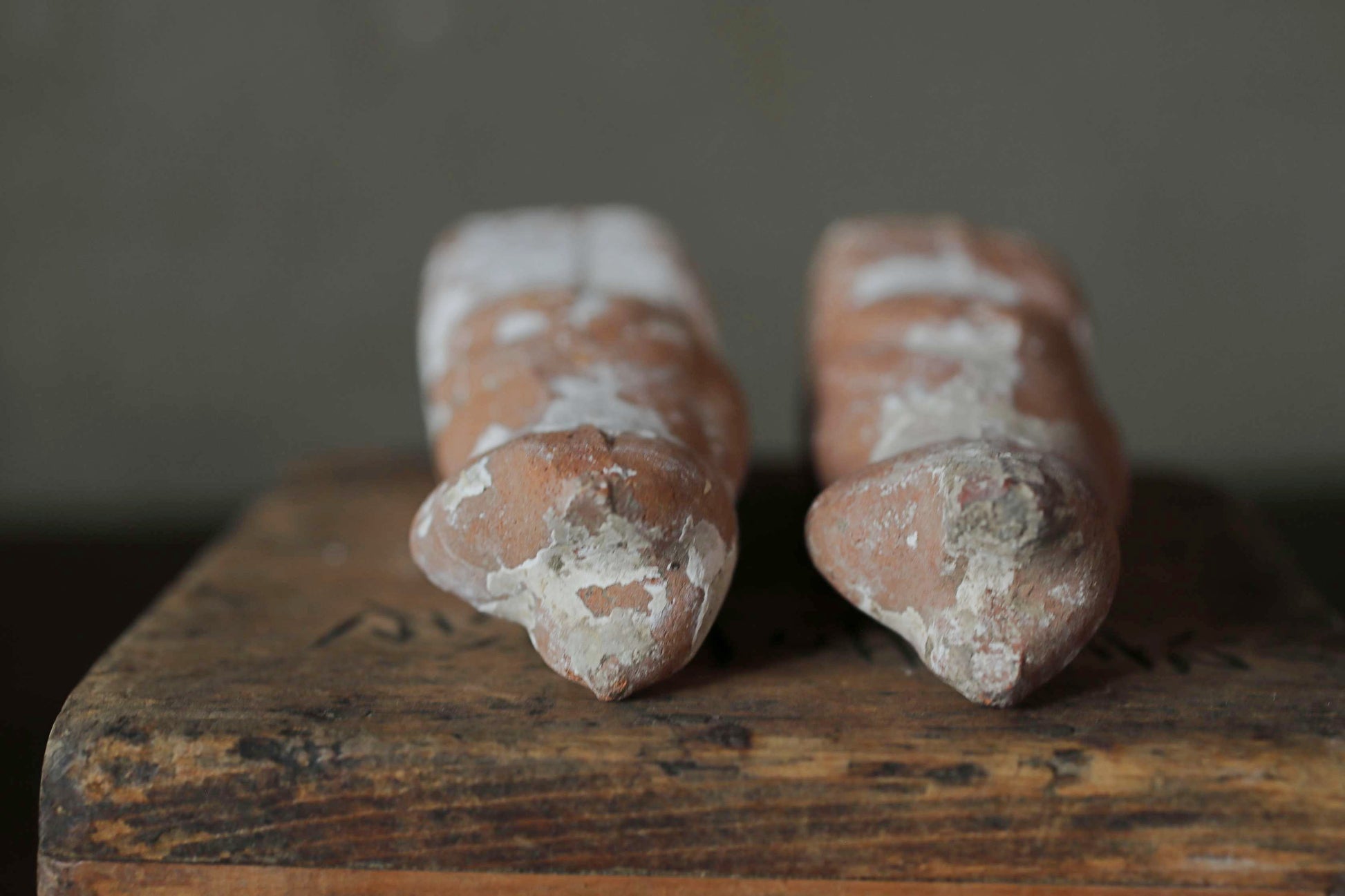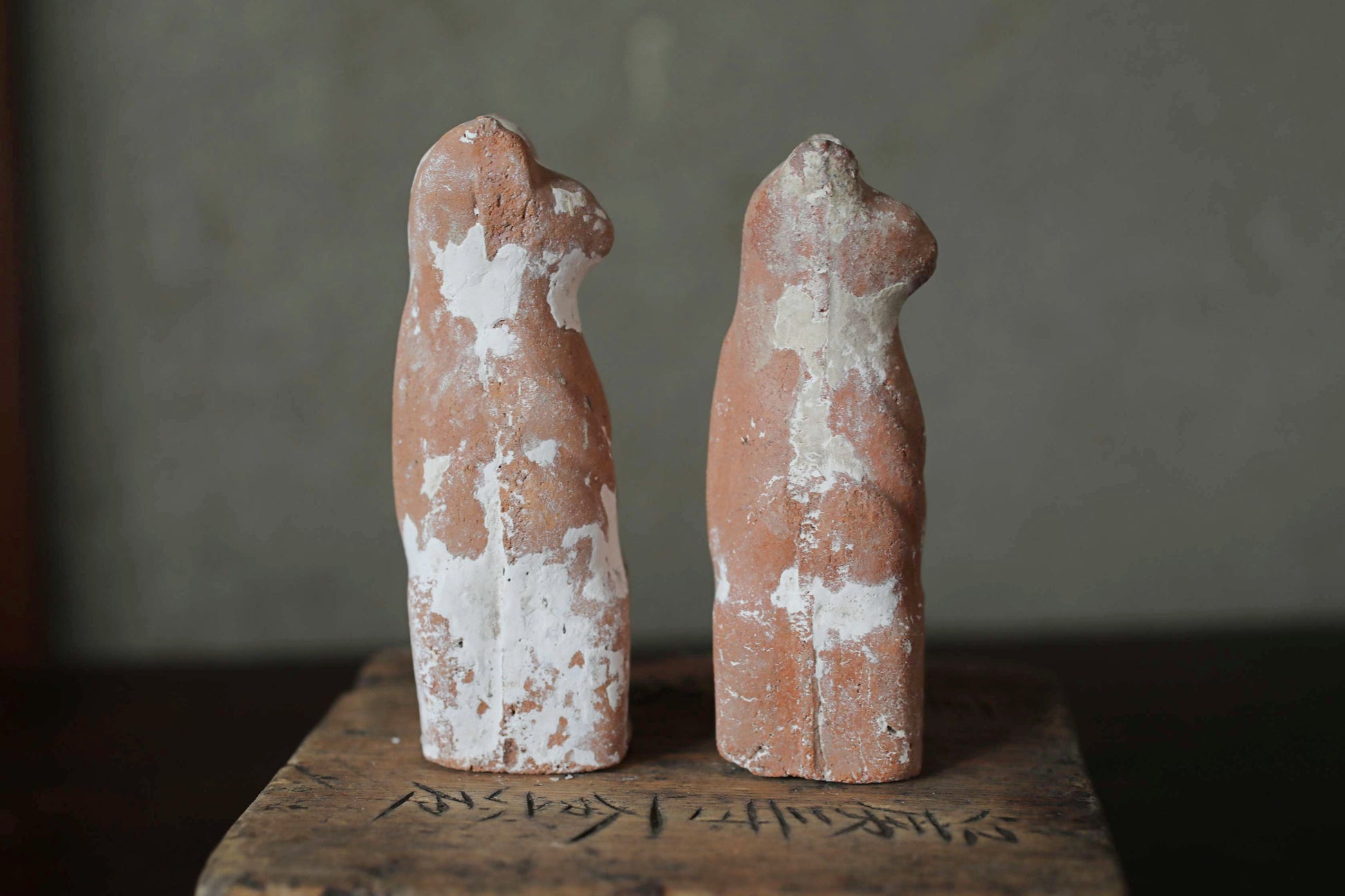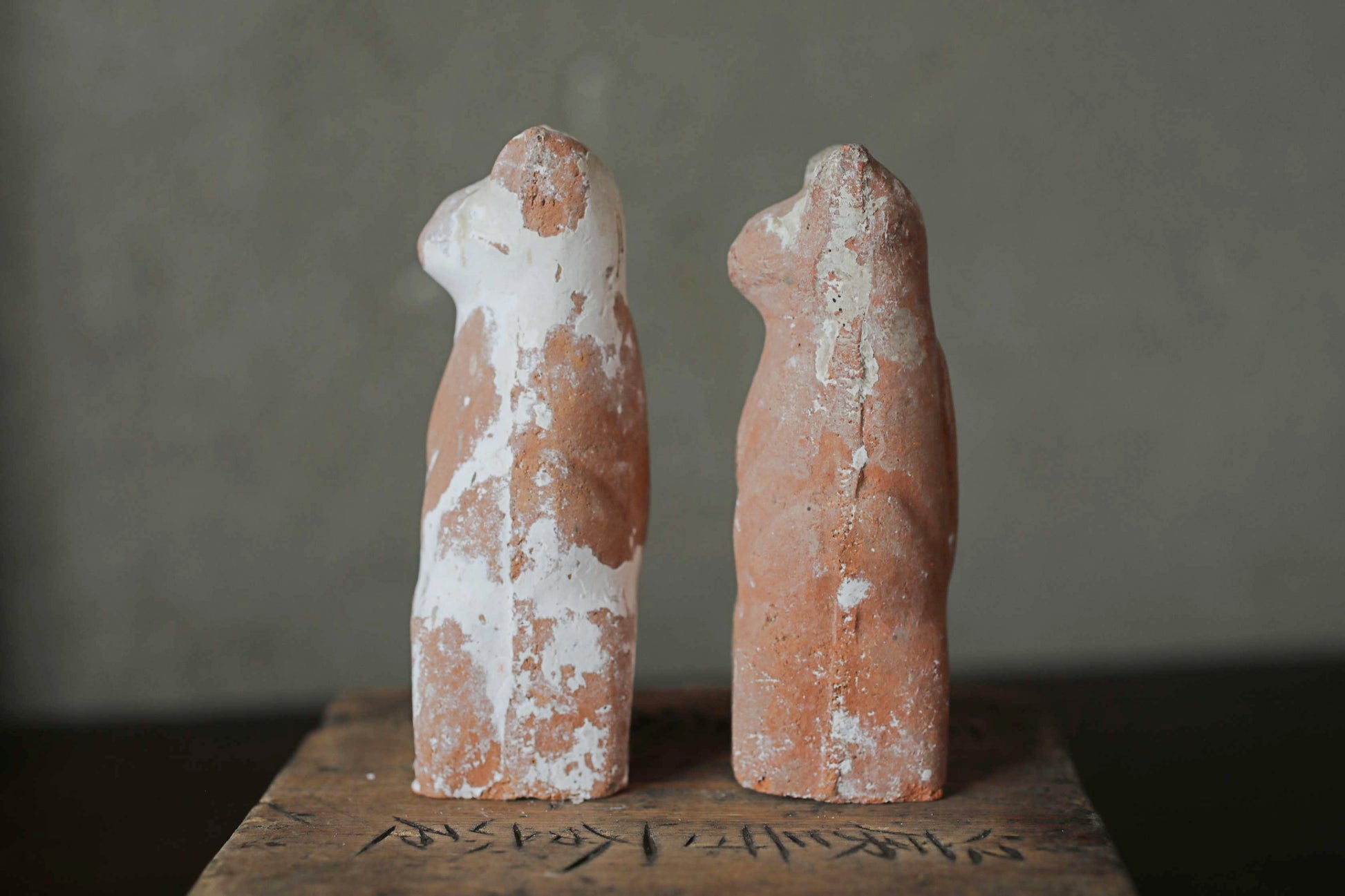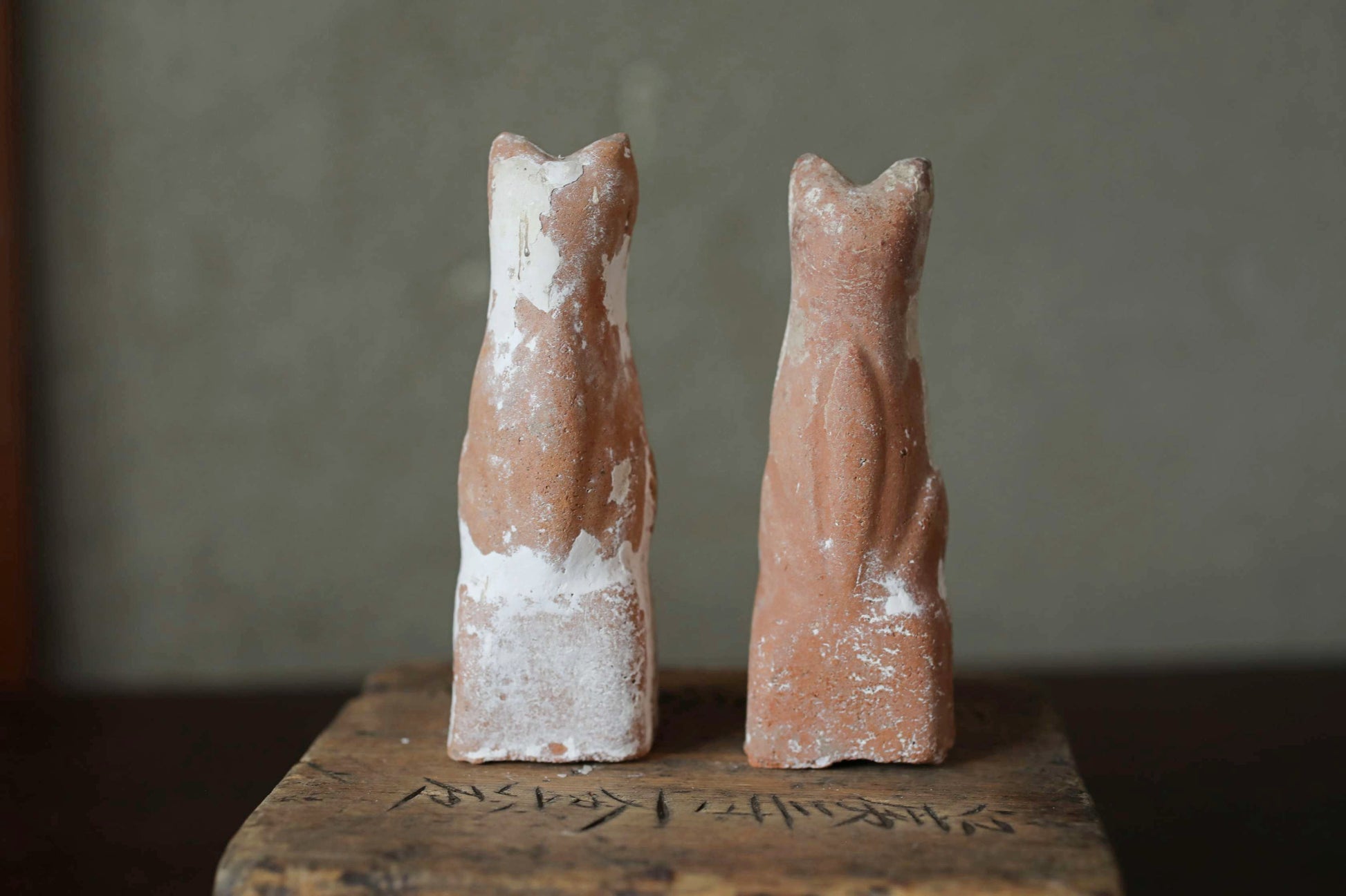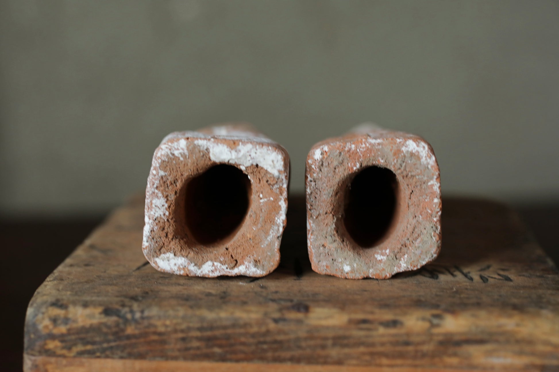 It is unglazed and has a rustic and unique aura with the added atmosphere of age. This is a pair of slightly different sizes.