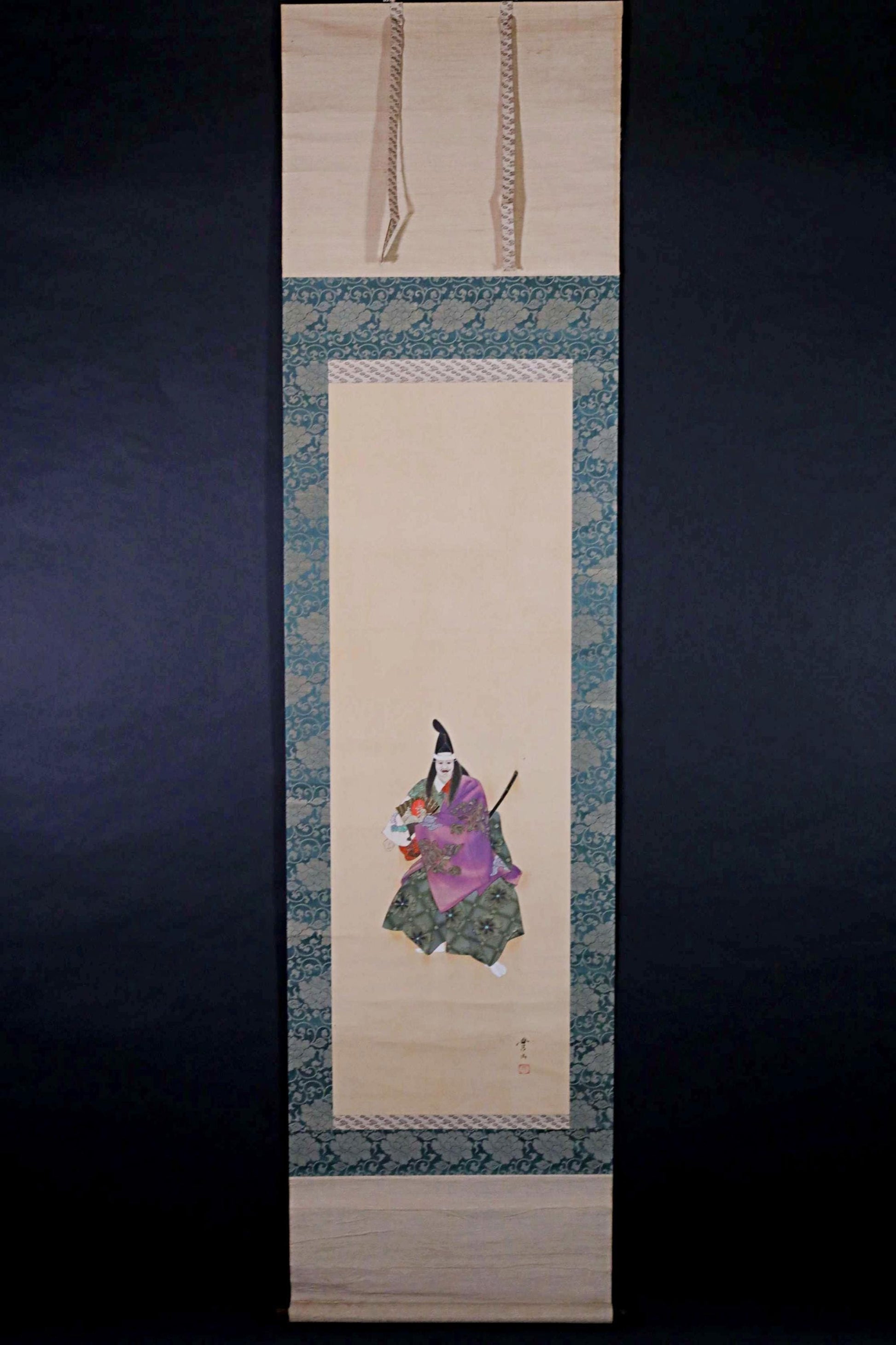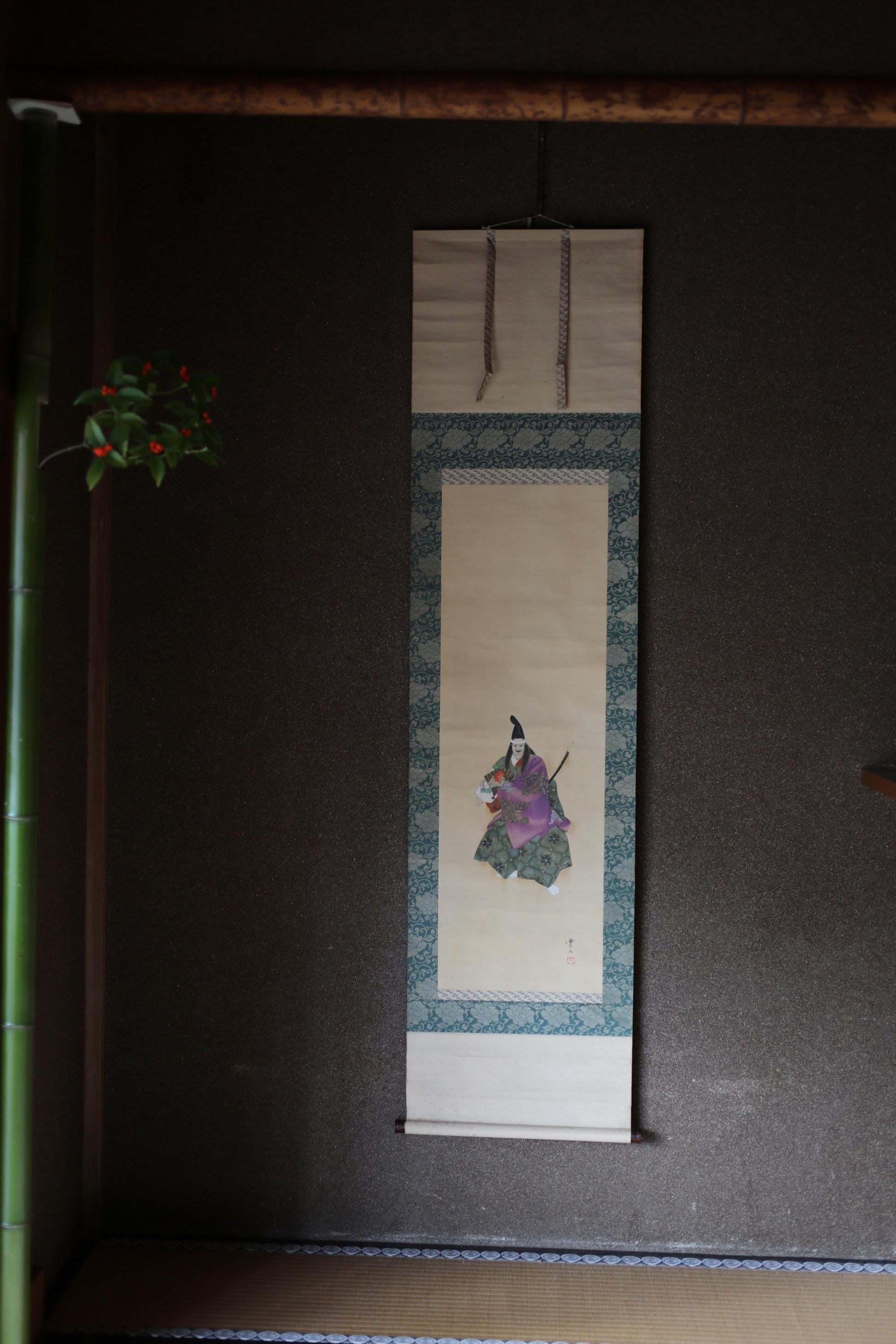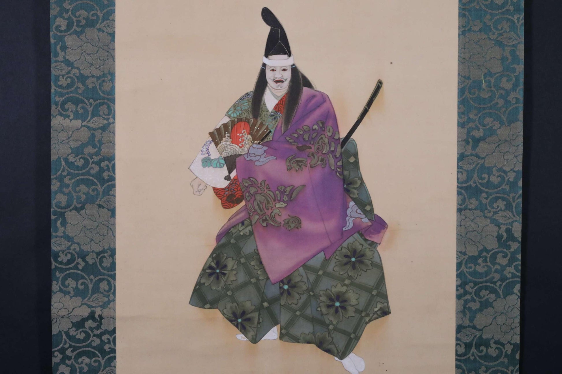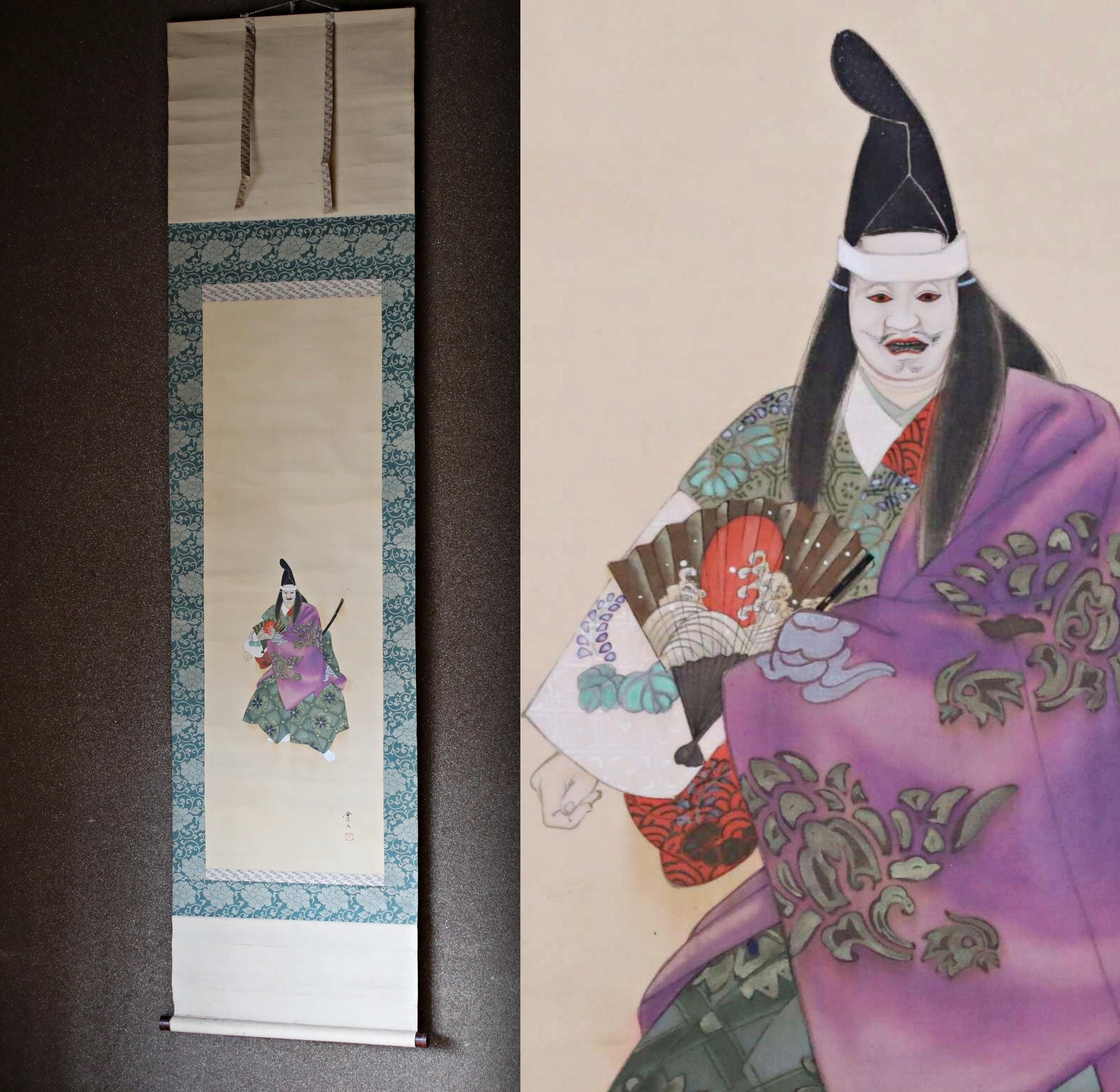It was painted by 貫山 Kanzan Sekiguchi (1889-1961), who was selected 13 times for an exhibition called the Imperial Art Exhibition and excelled at Noh paintings.