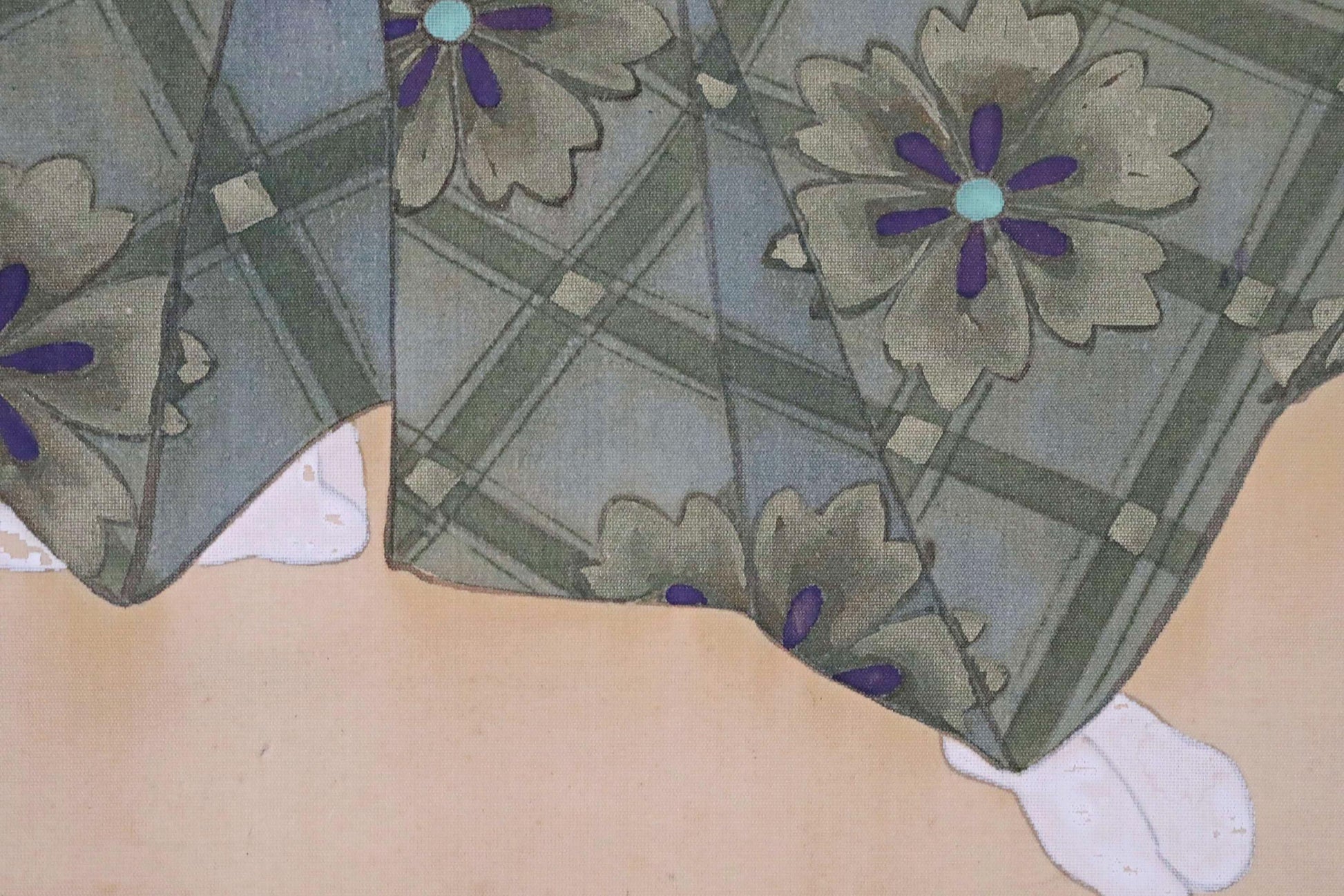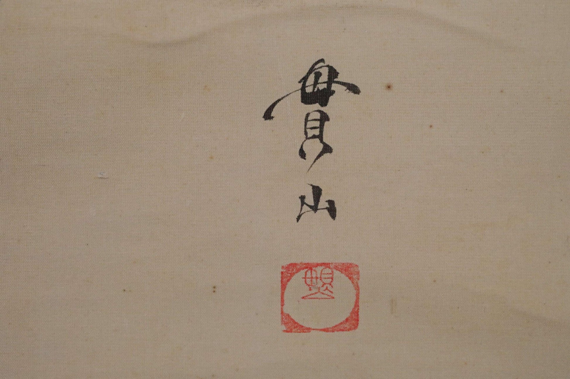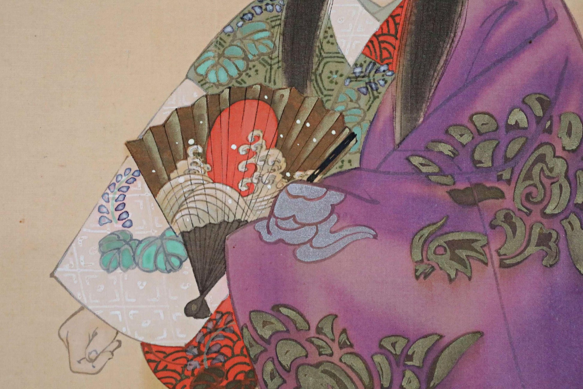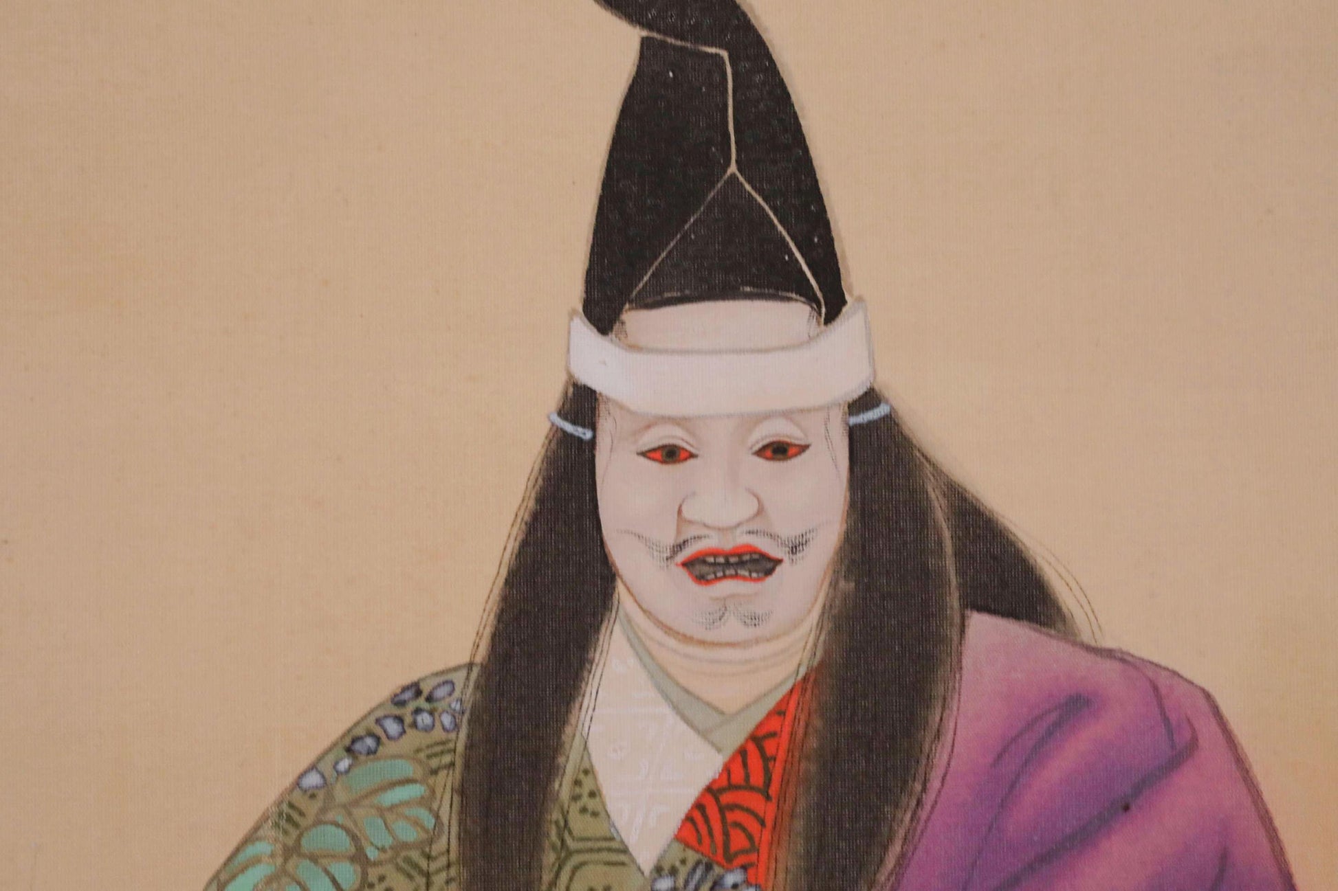It was painted by 貫山 Kanzan Sekiguchi (1889-1961), who was selected 13 times for an exhibition called the Imperial Art Exhibition and excelled at Noh paintings.