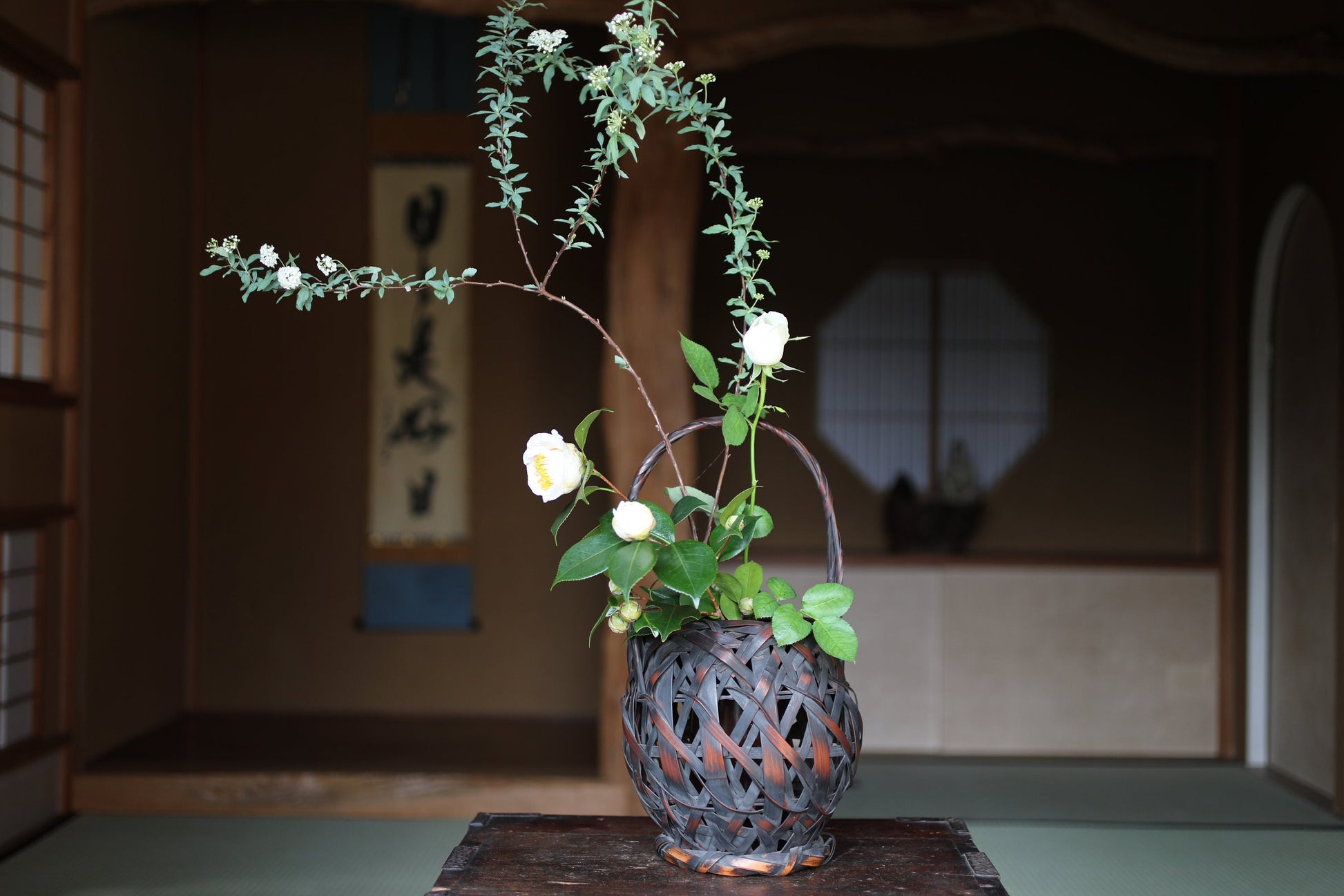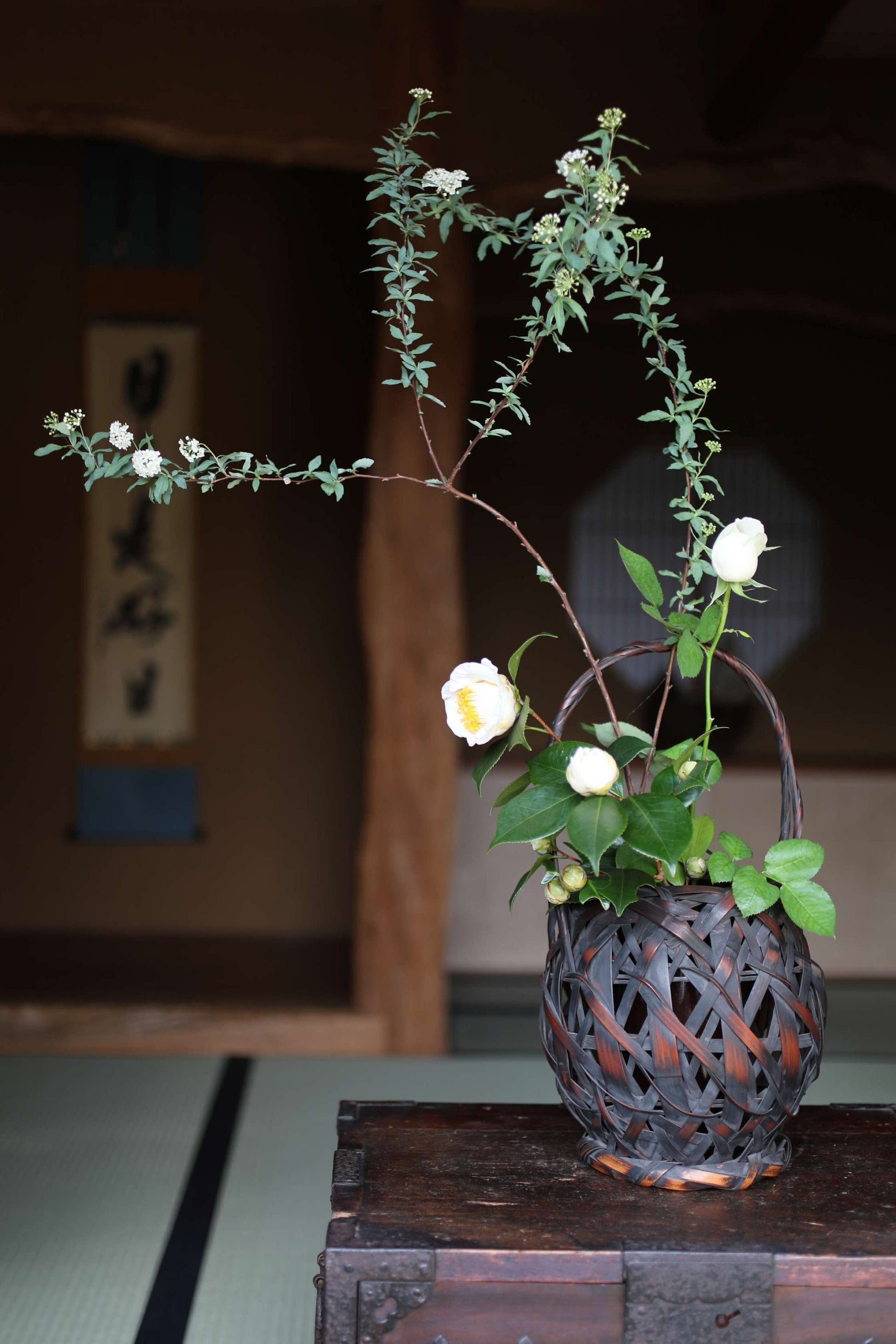 Bamboo flower basket with the beautiful color of bamboo over time.