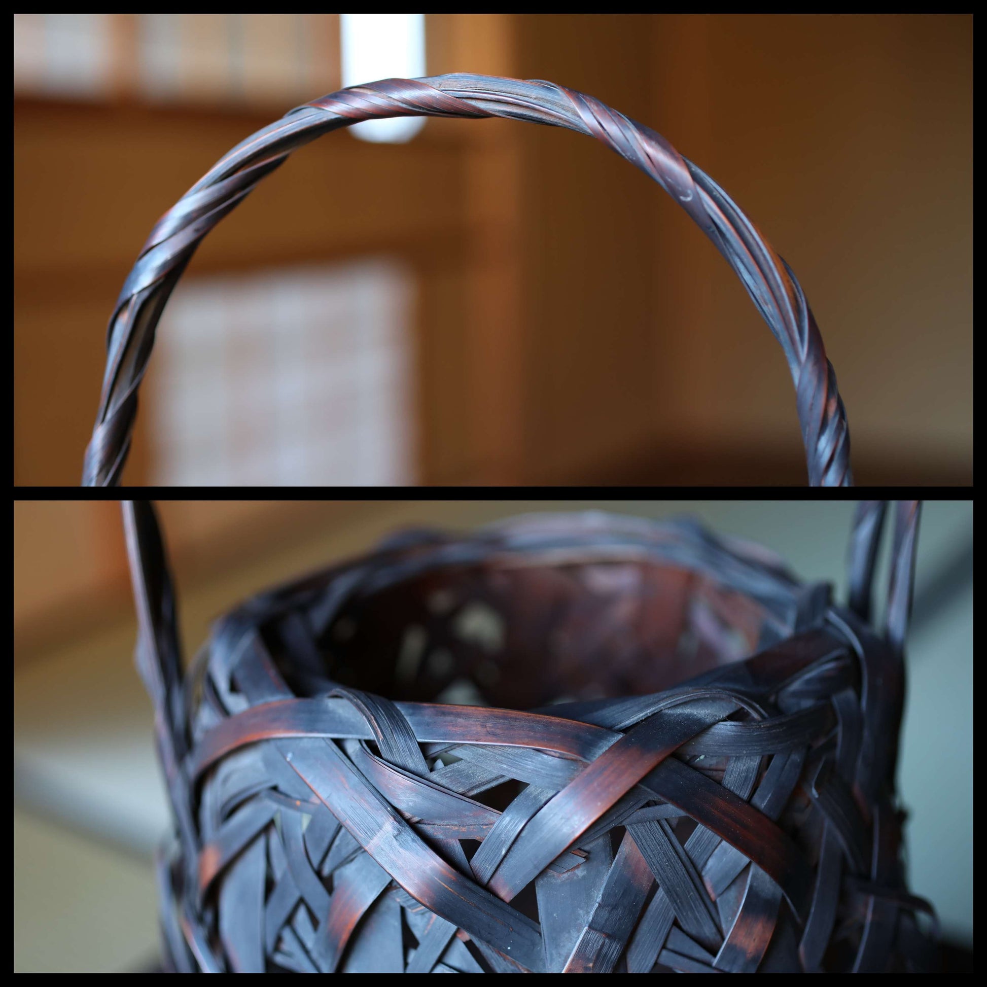 Bamboo of this color is called 煤竹SUSUDAKE sooty bamboo, and is characterized by its unique brownish-brown or candy-colored discoloration, which comes naturally from being smoked in the smoke of an open hearth over a period of 100 years or more.