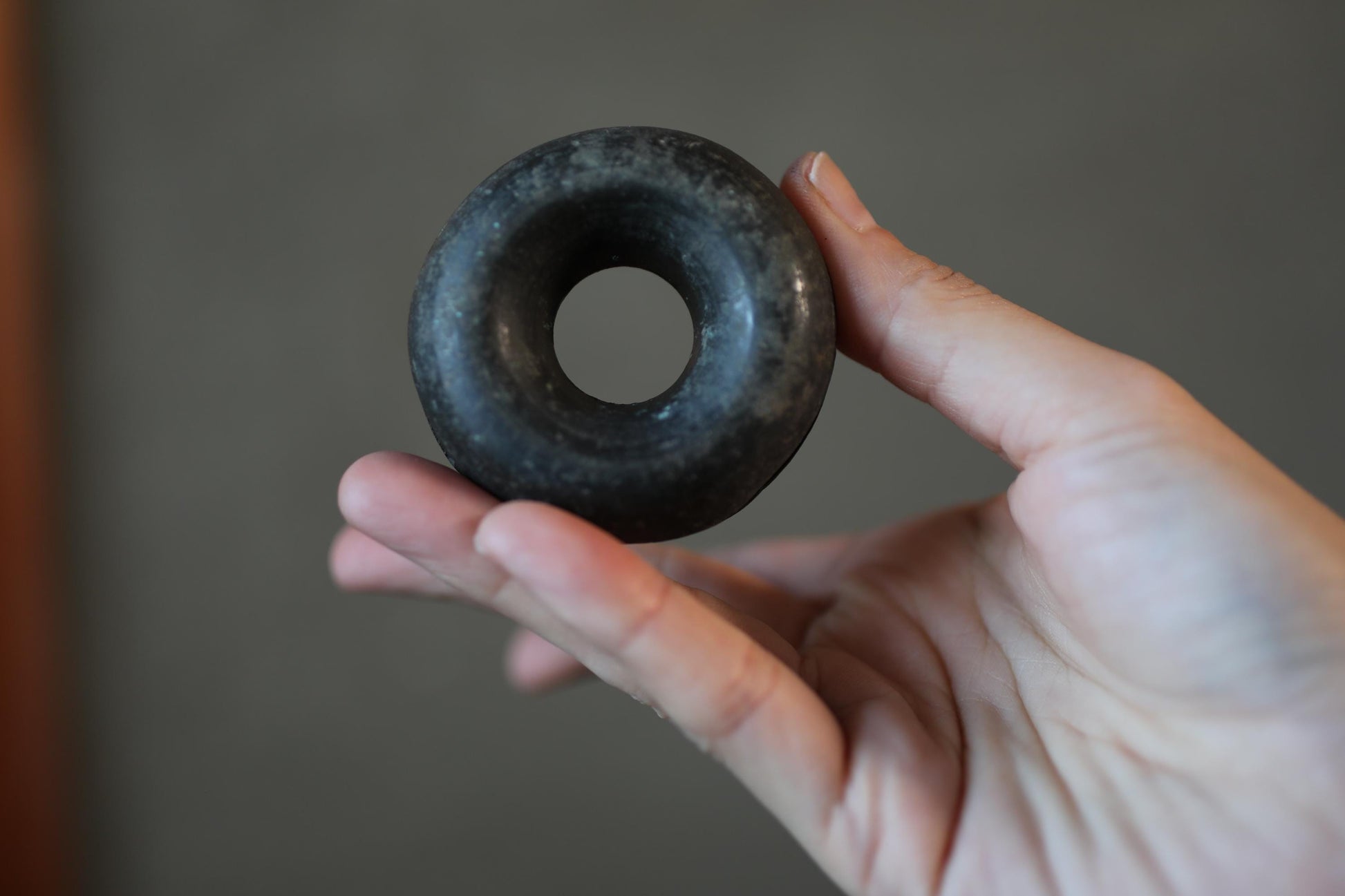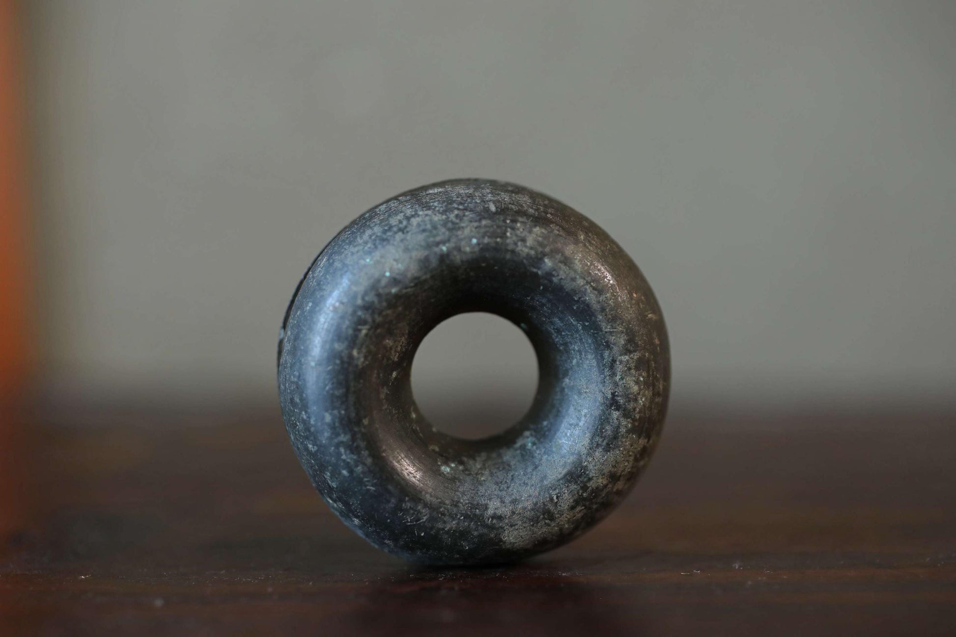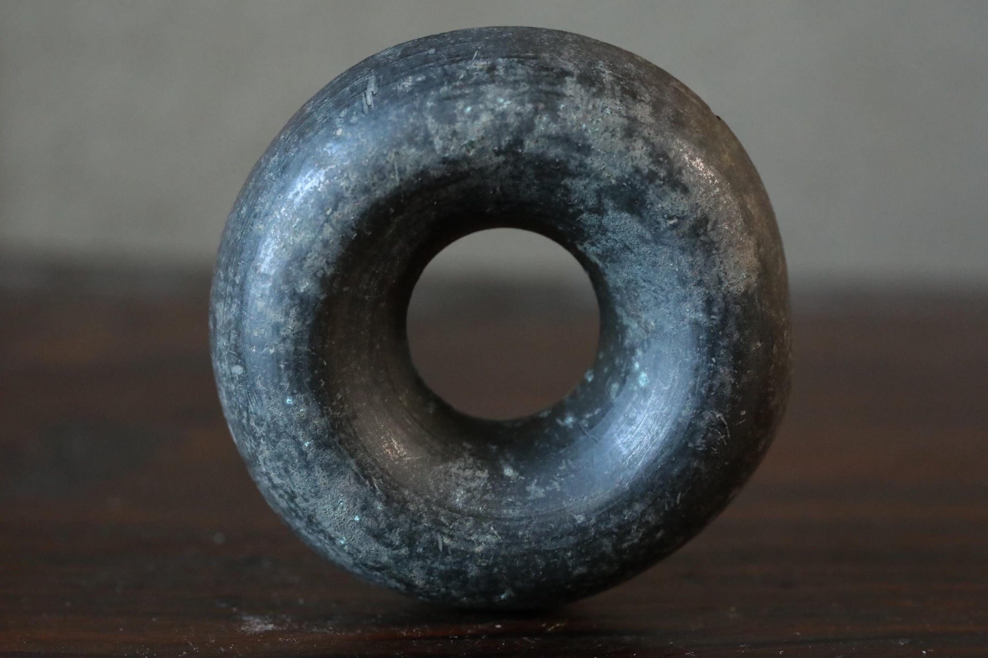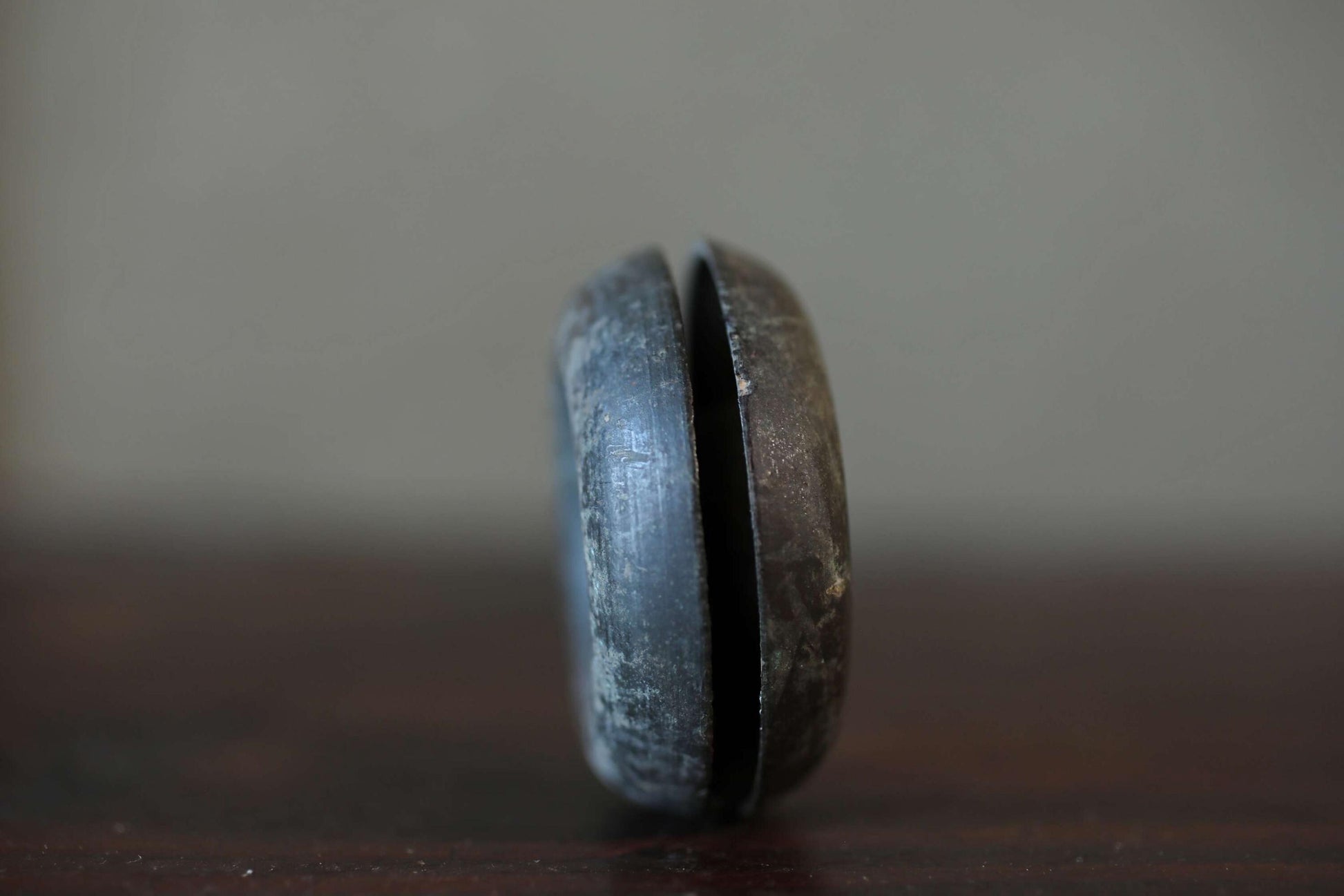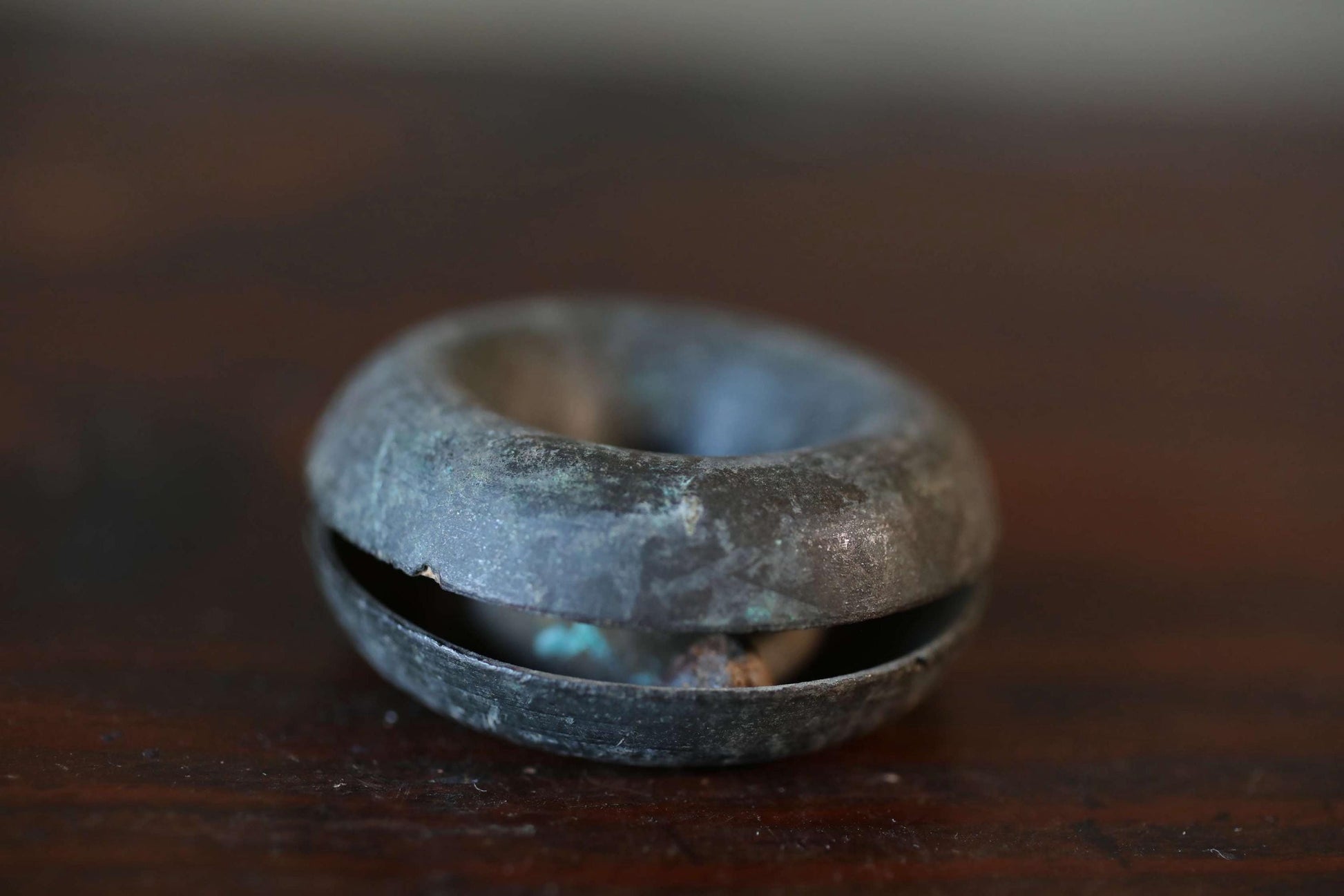 These have been used as horse bells since ancient times and are called 馬鈴 balei. The distinctive doughnut-shaped bell has a “ball” inside the horse bell, which rolls and hits somewhere inside the ring.