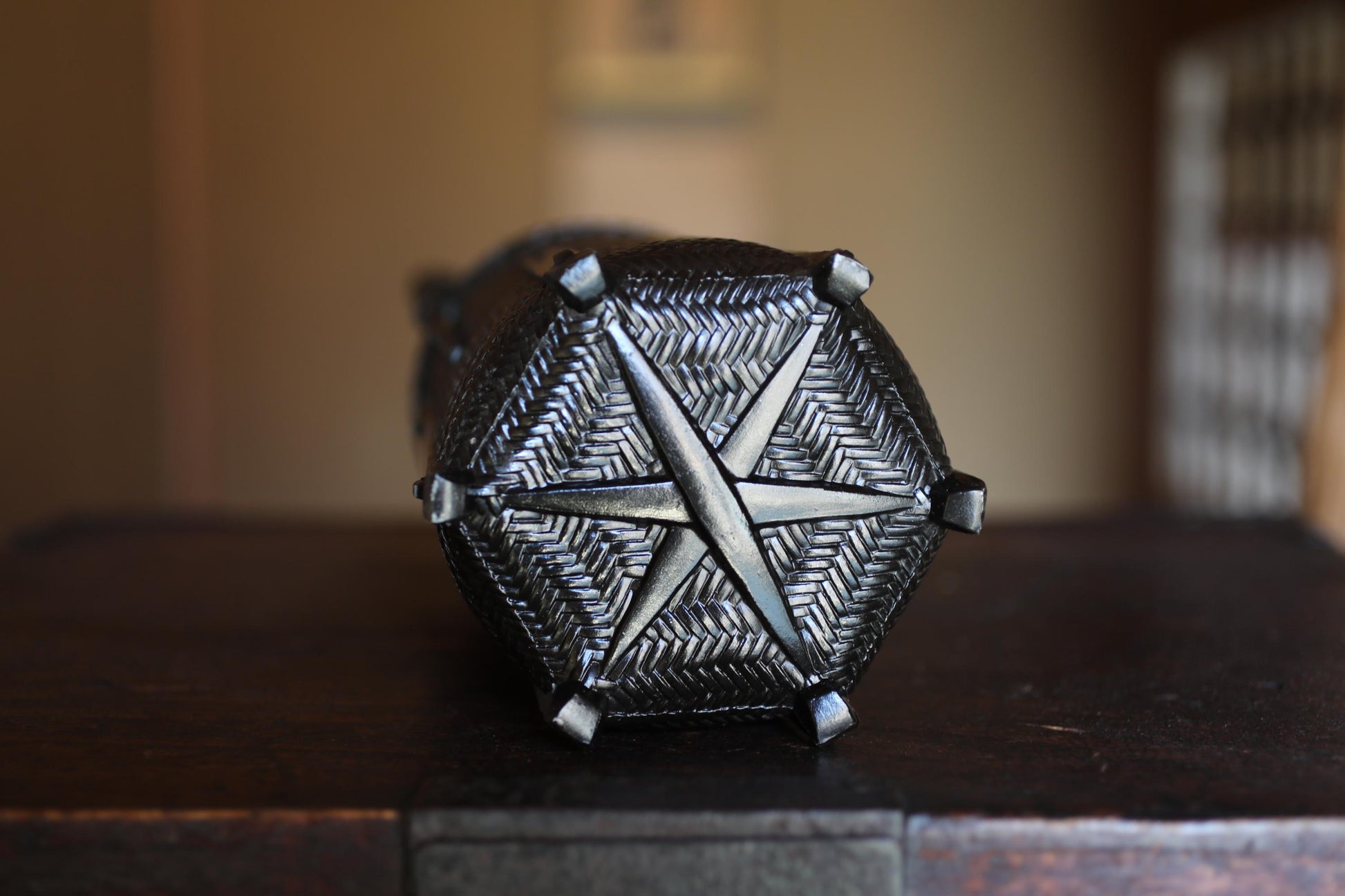 This one is made of copper in the shape of a woven bamboo basket. At first glance, it looks like a basket, but it is heavy and has a stable and strong presence, making it easy to display flowers.