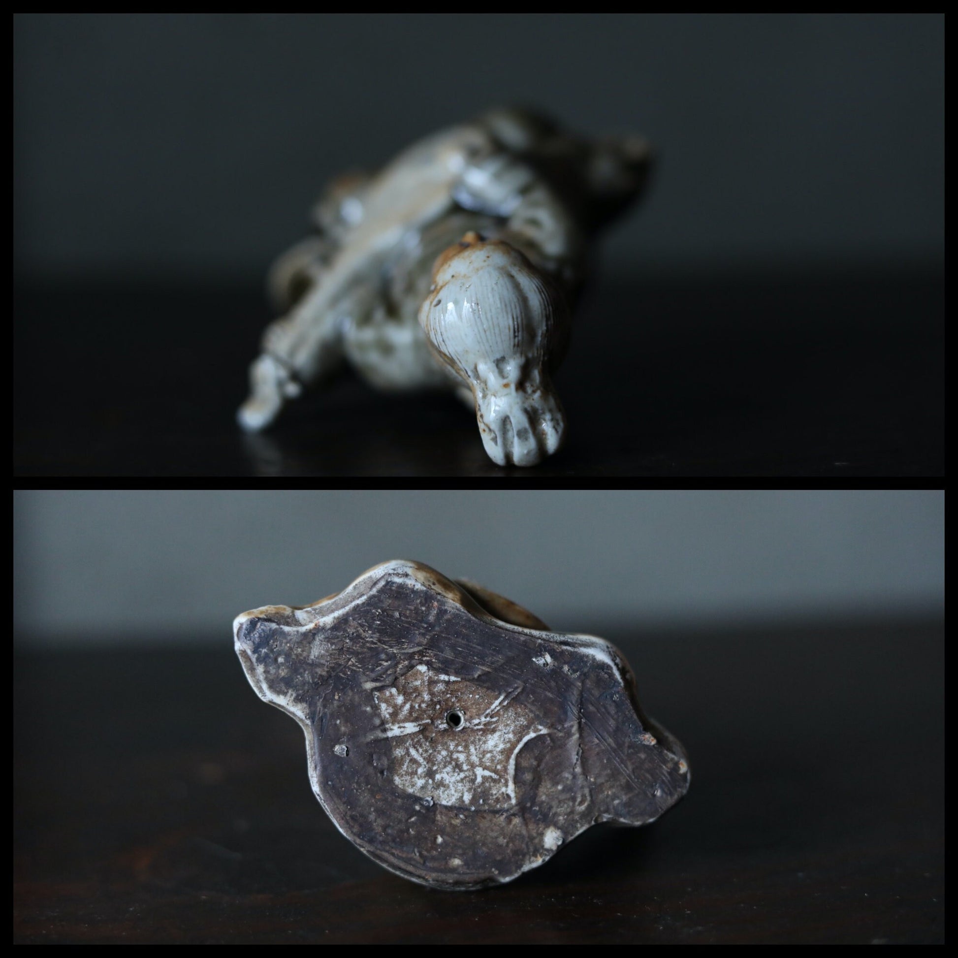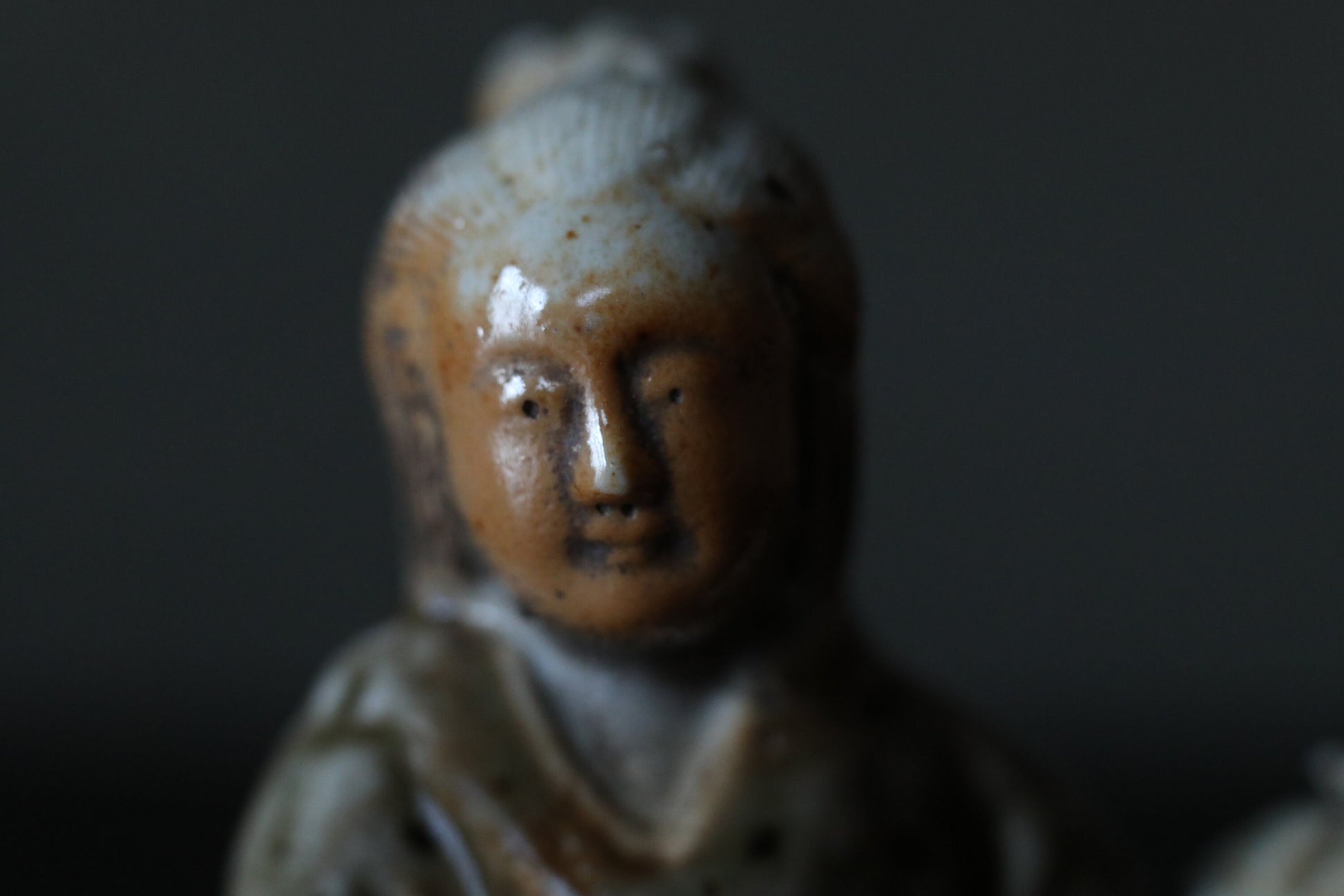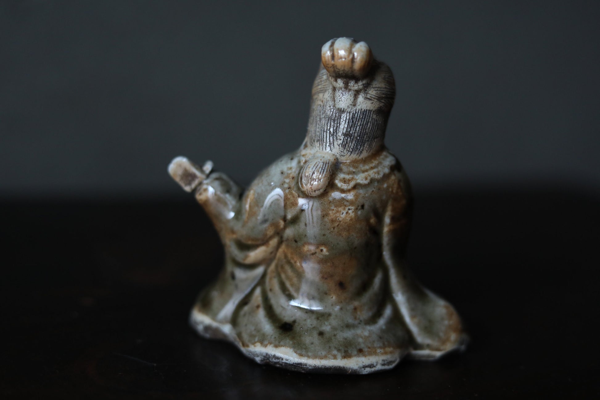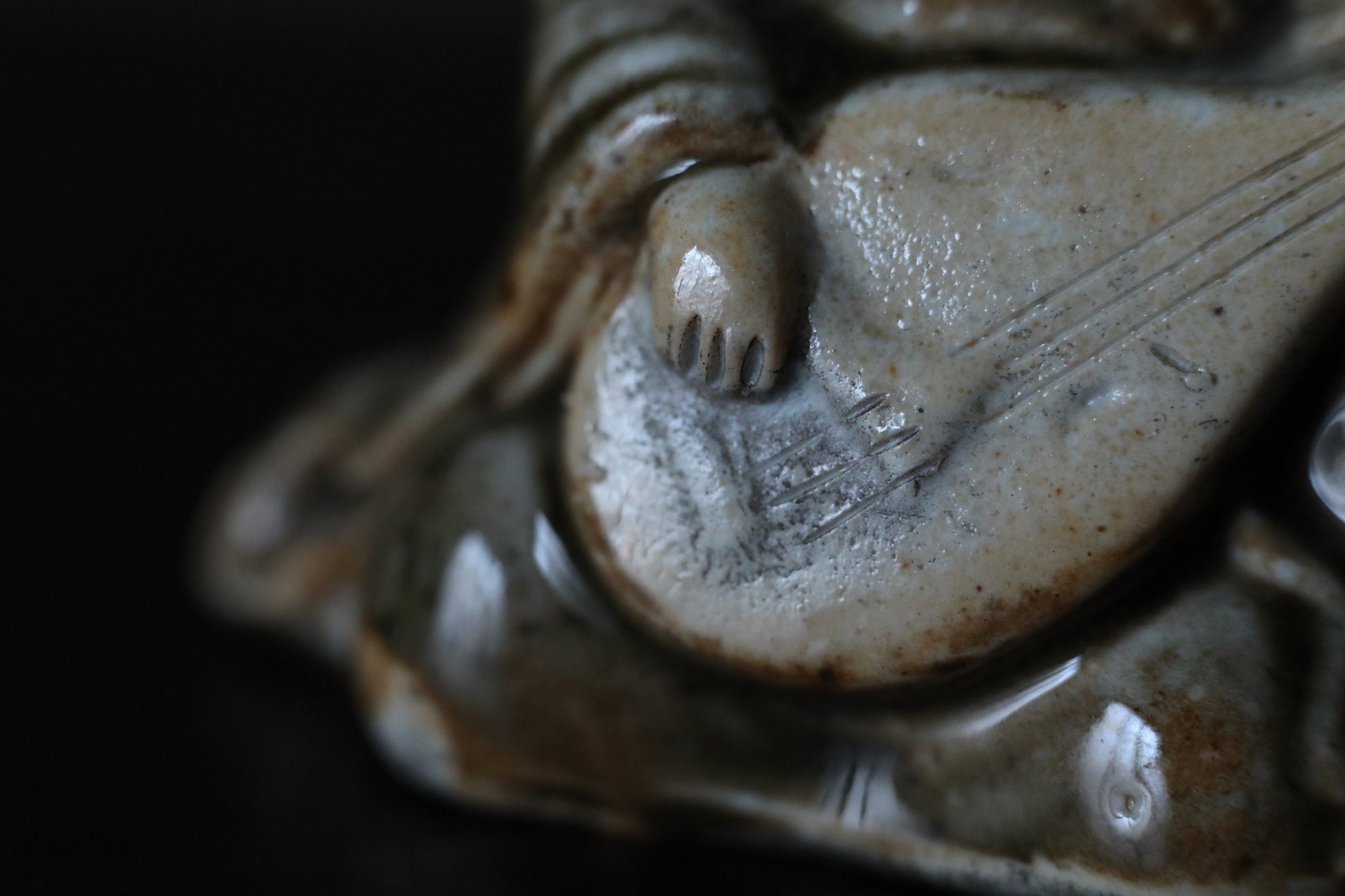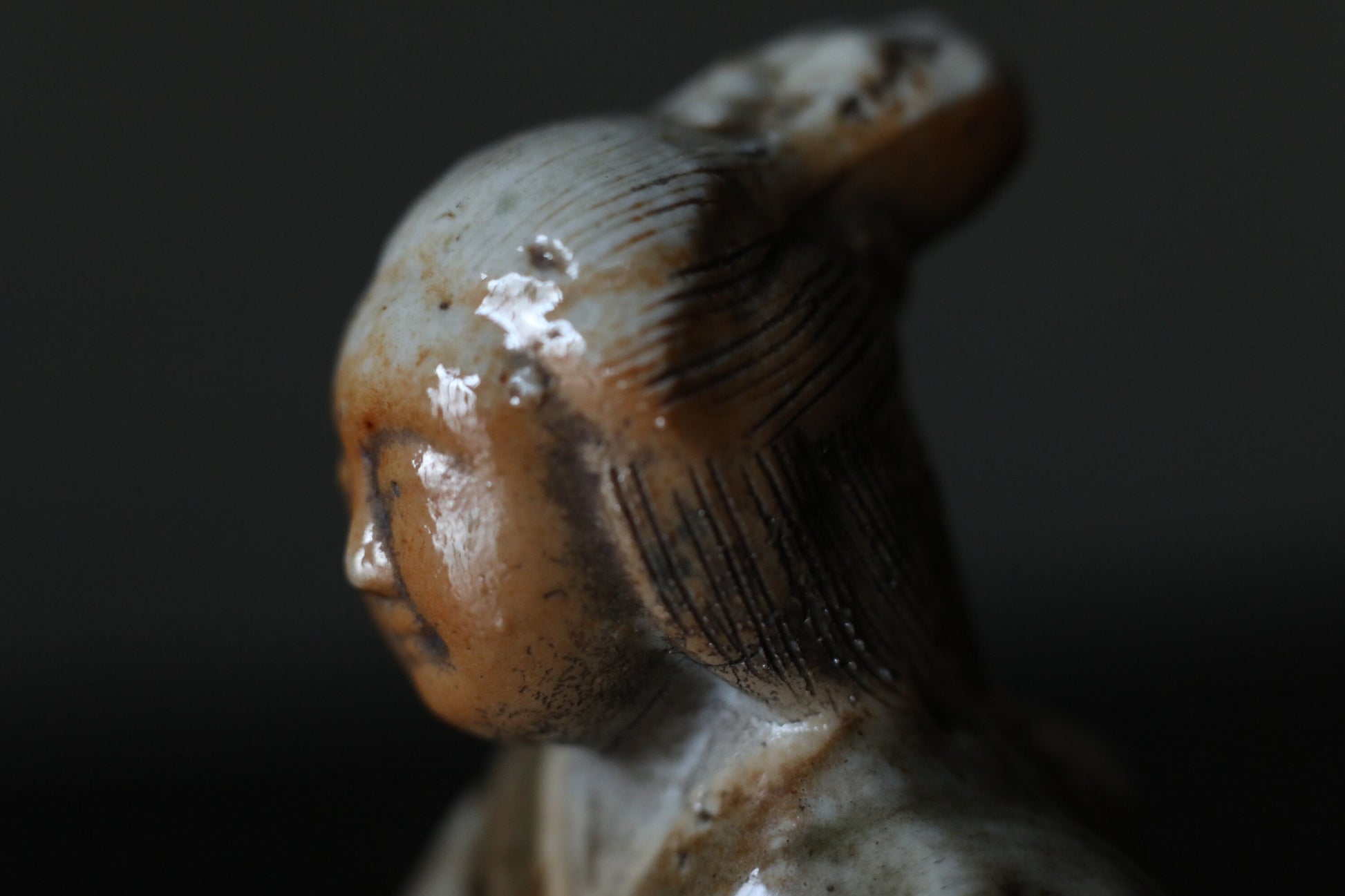 Japanese Antique ceramic doll small Figurine of Japanese lucky god 弁天benten ,Kimono Woman playing the biwa lute 1880s H4.1×3.7in/10.5×9.5cm
