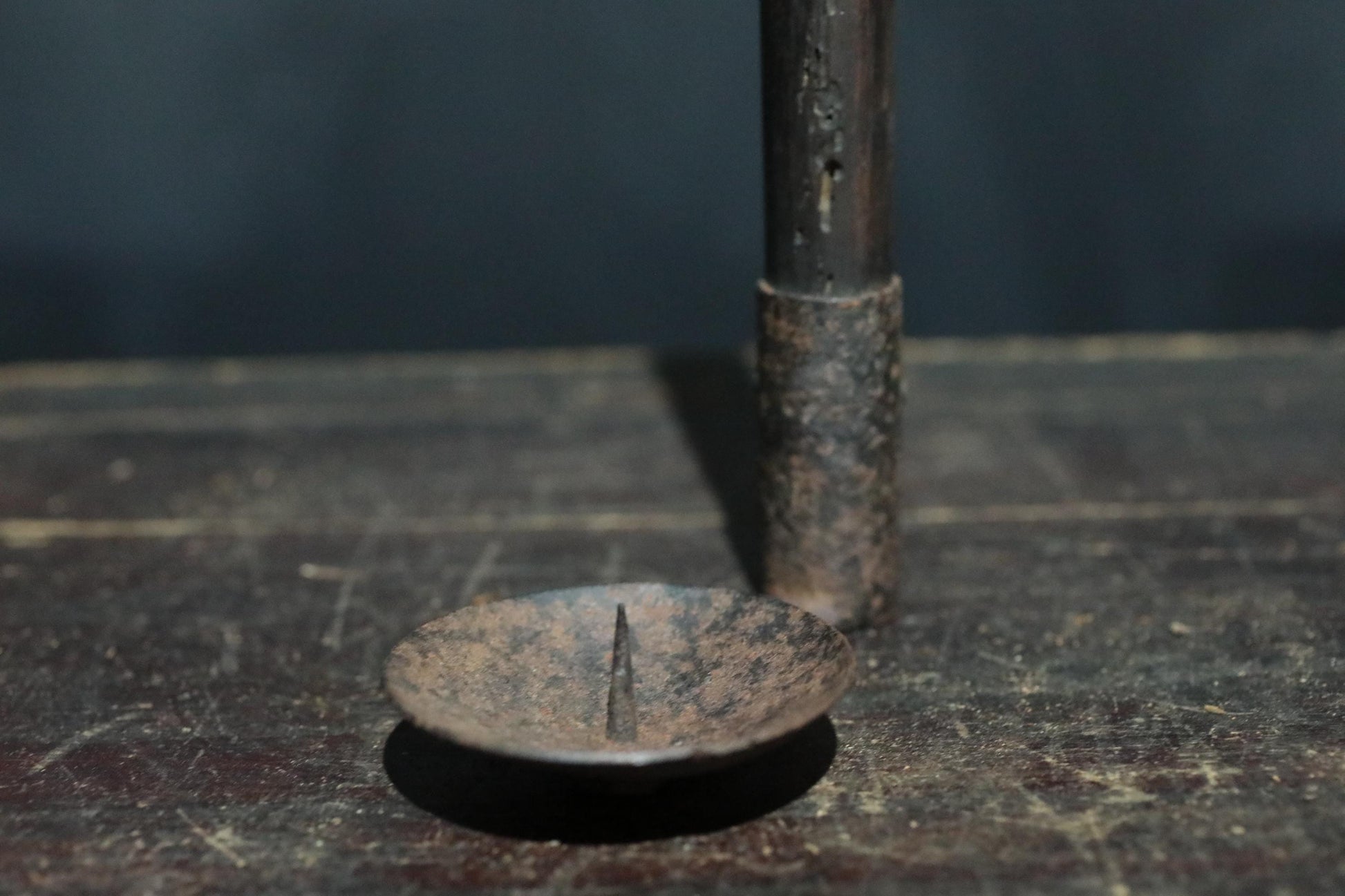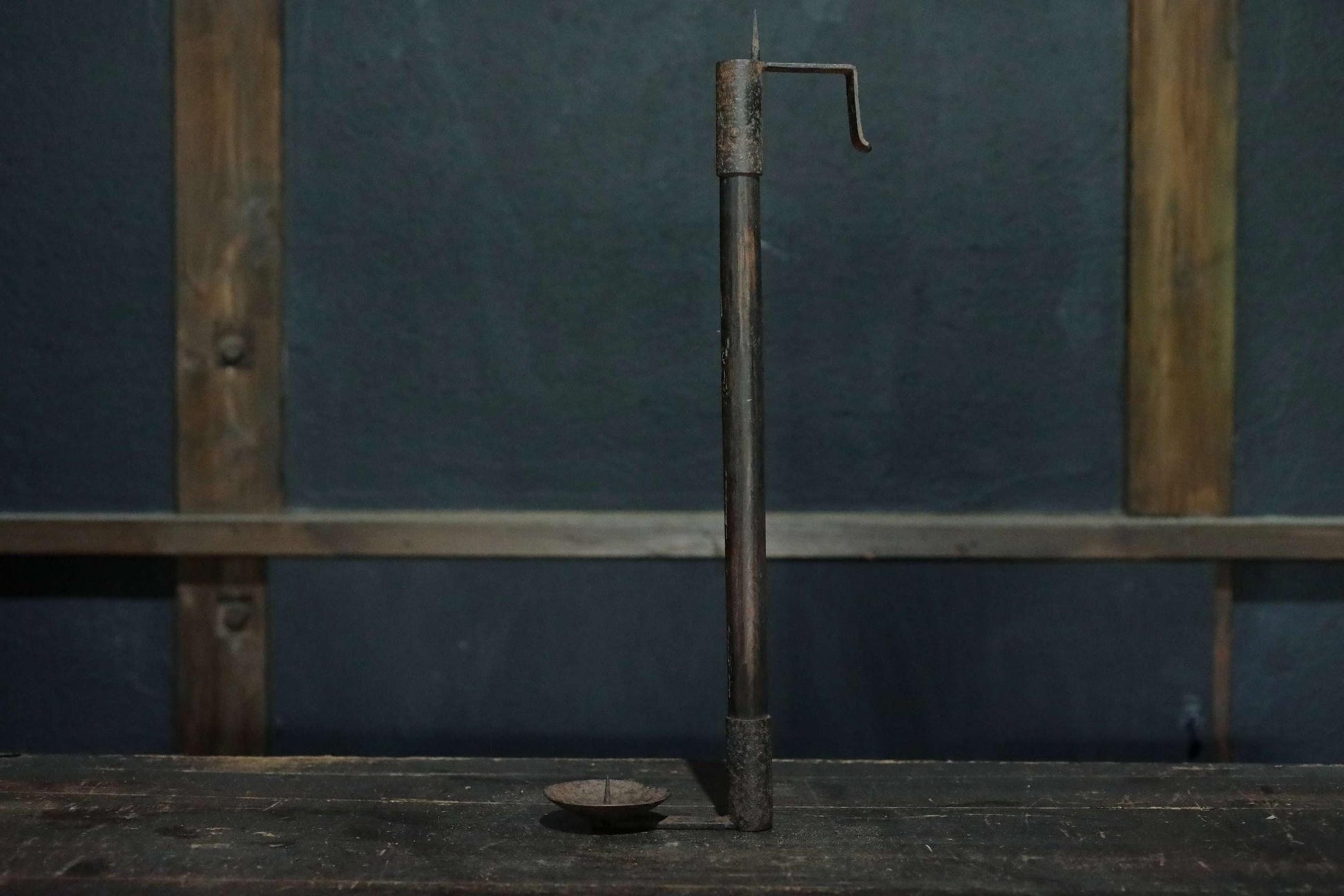 Japanese antique EDO 1800s furniture candle stand Hanging or carrying candle holder made of wood and iron H17.9in/H45.5cm.