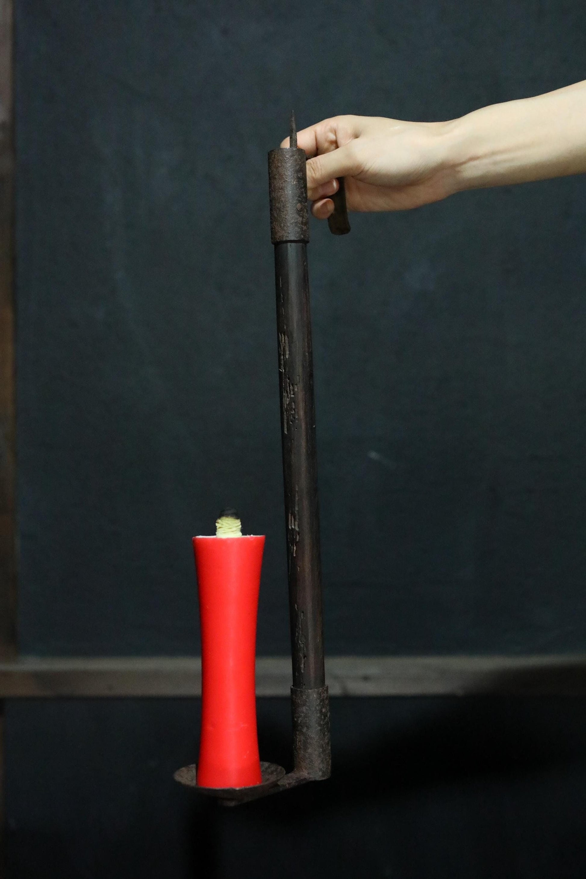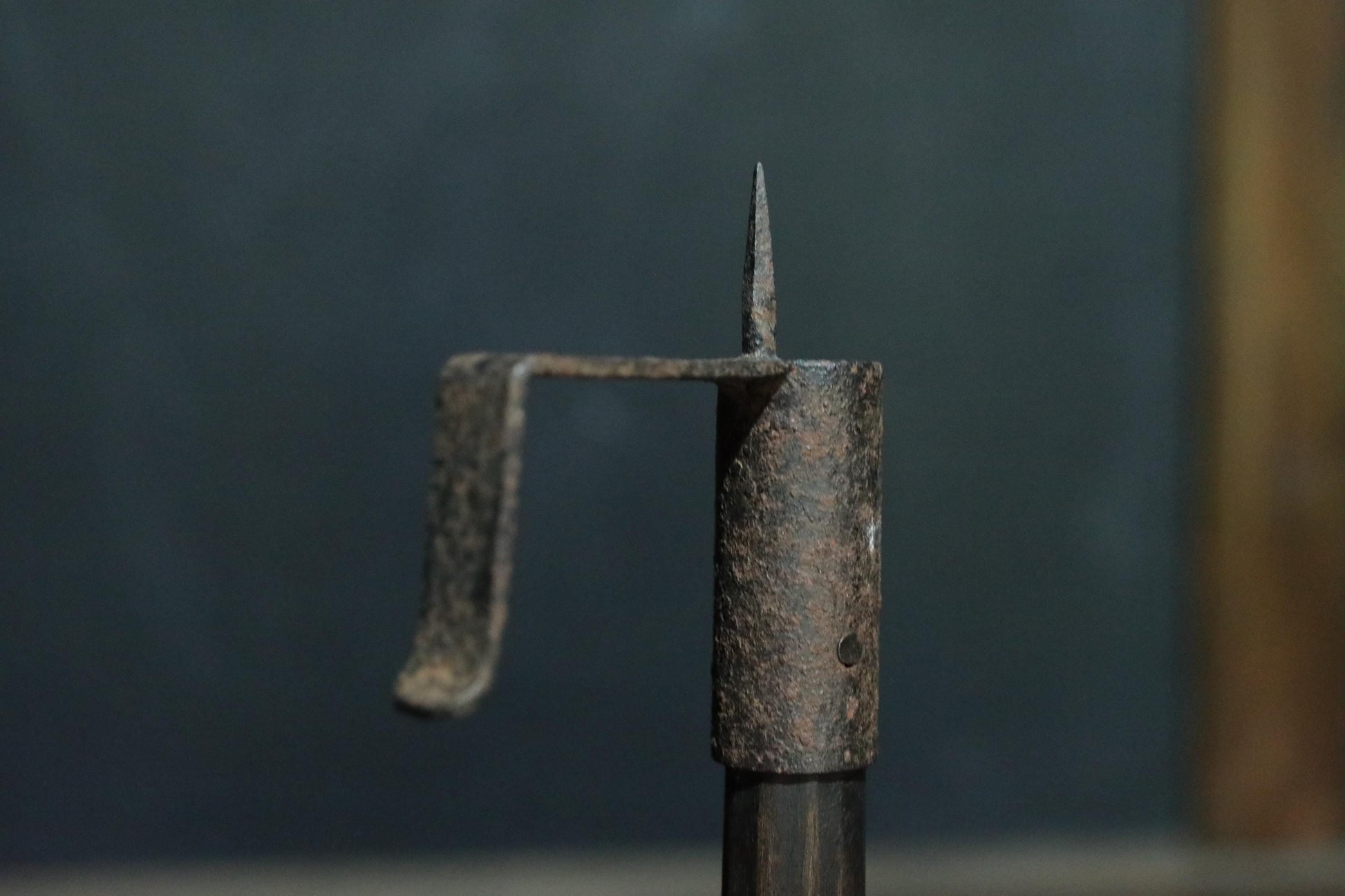 It is made of iron and wood, and the atmosphere of aging is very cool. Basically, it was used for hanging. It is also portable and has a sharp point at the top so that it can be used to fight against enemies in case of emergency.