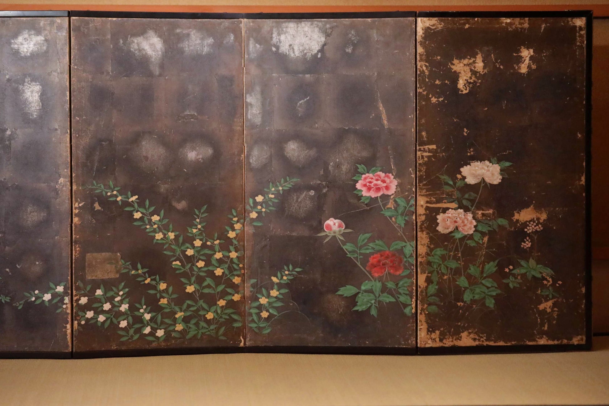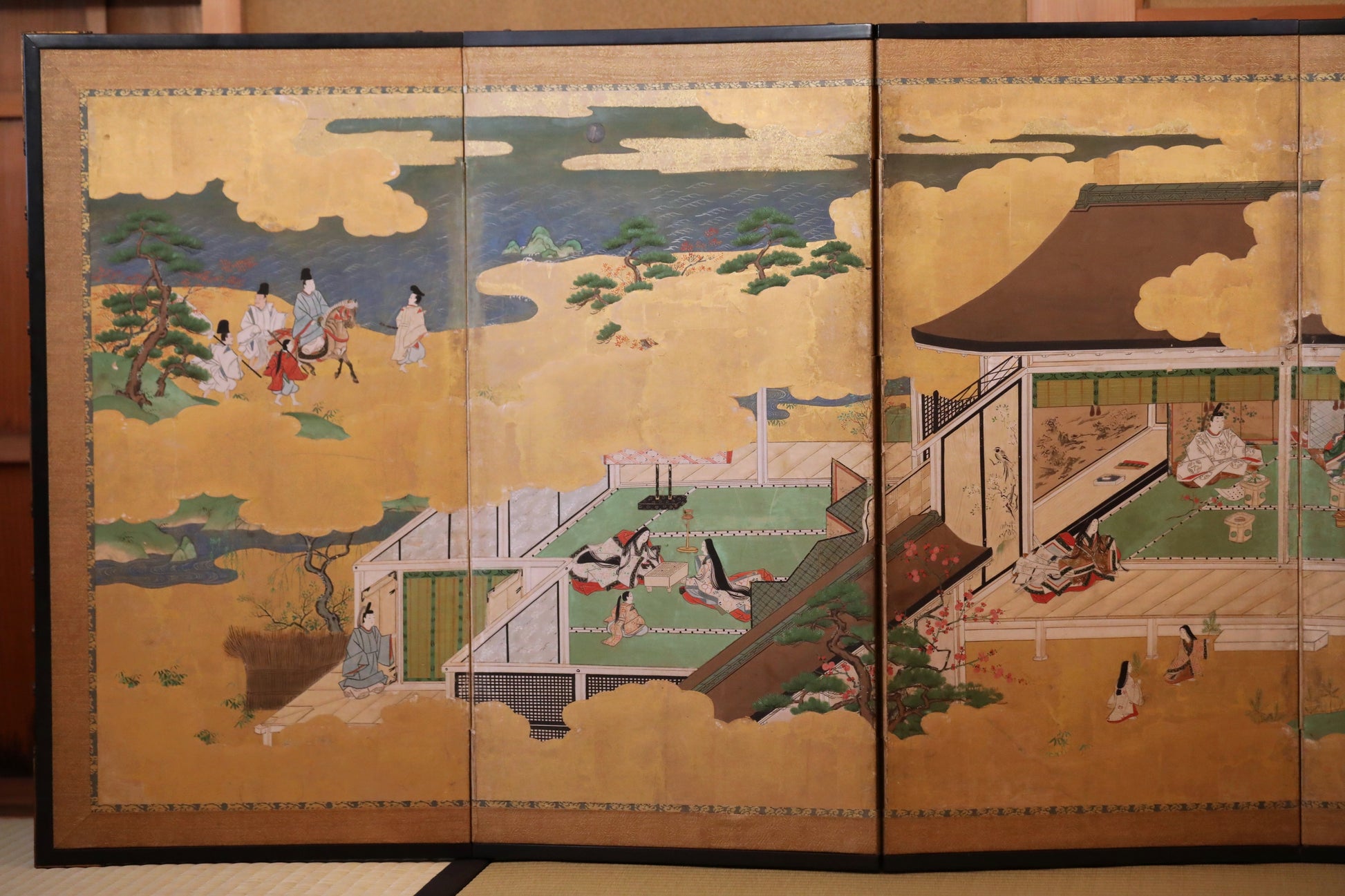 Believed to have been introduced from China, the folding screen has a long history and was already in existence as a tool to protect against the wind during the Han Dynasty (206 BC - 220 AD) in China.In Japan, by the Muromachi period (1336-1573 B.C.), many ink paintings and extremely colored screens were produced.