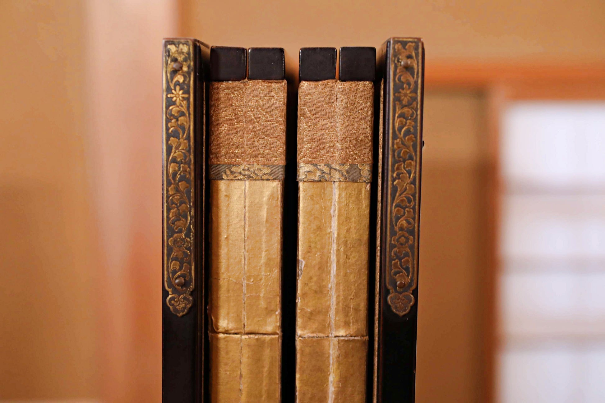 The front is gorgeous and based on a passage from the Tale of Genji. The Tale of Genji, written by Murasaki Shikibu in the 11th century, is considered one of the world's first novels.