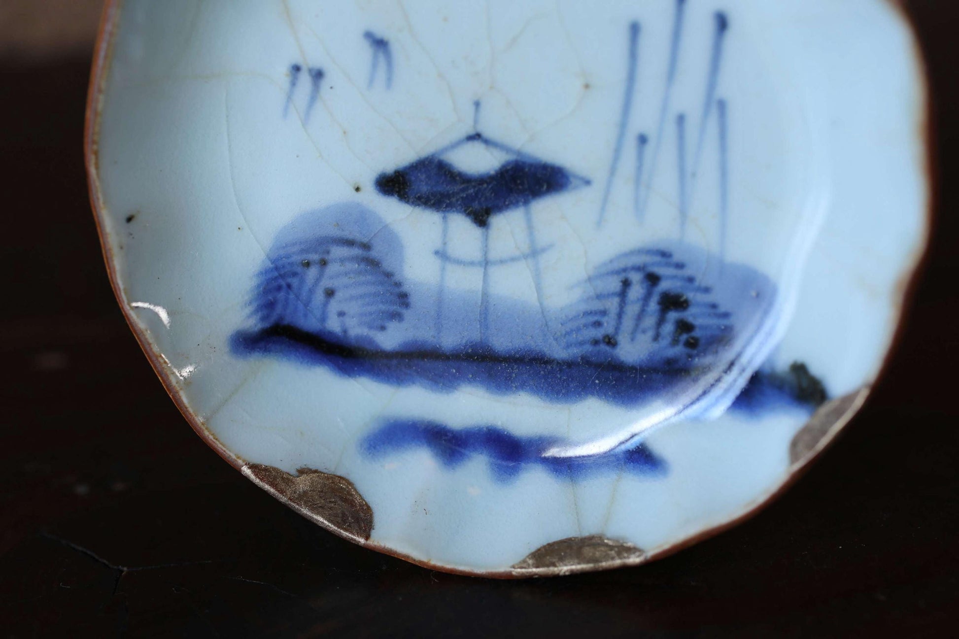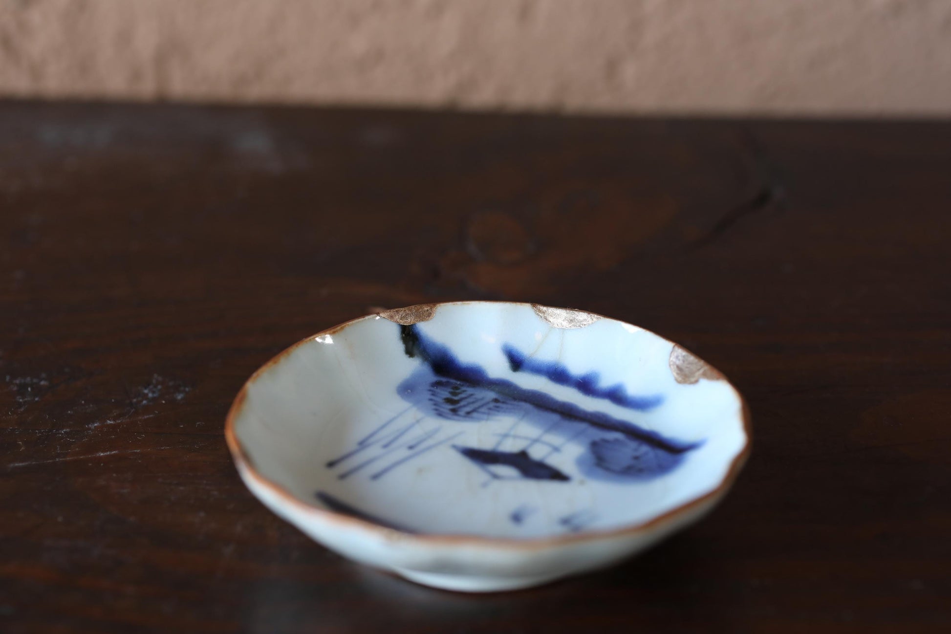 Japanese antique handcraft small plate, KINTUSGI porcelain ceramic dish Blue White SOMETSUKE 3.9in/10cm