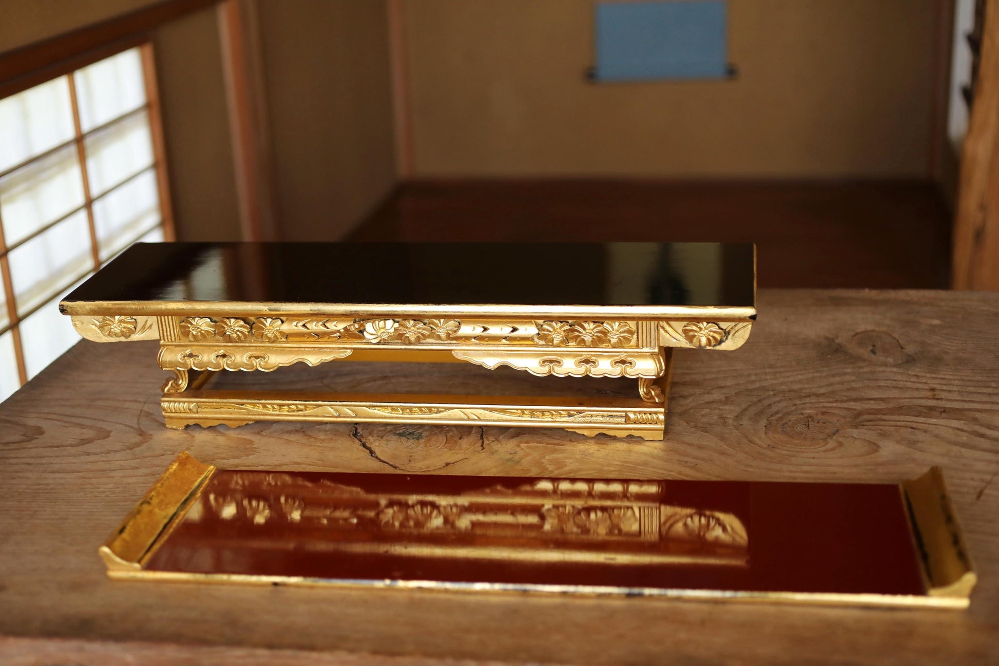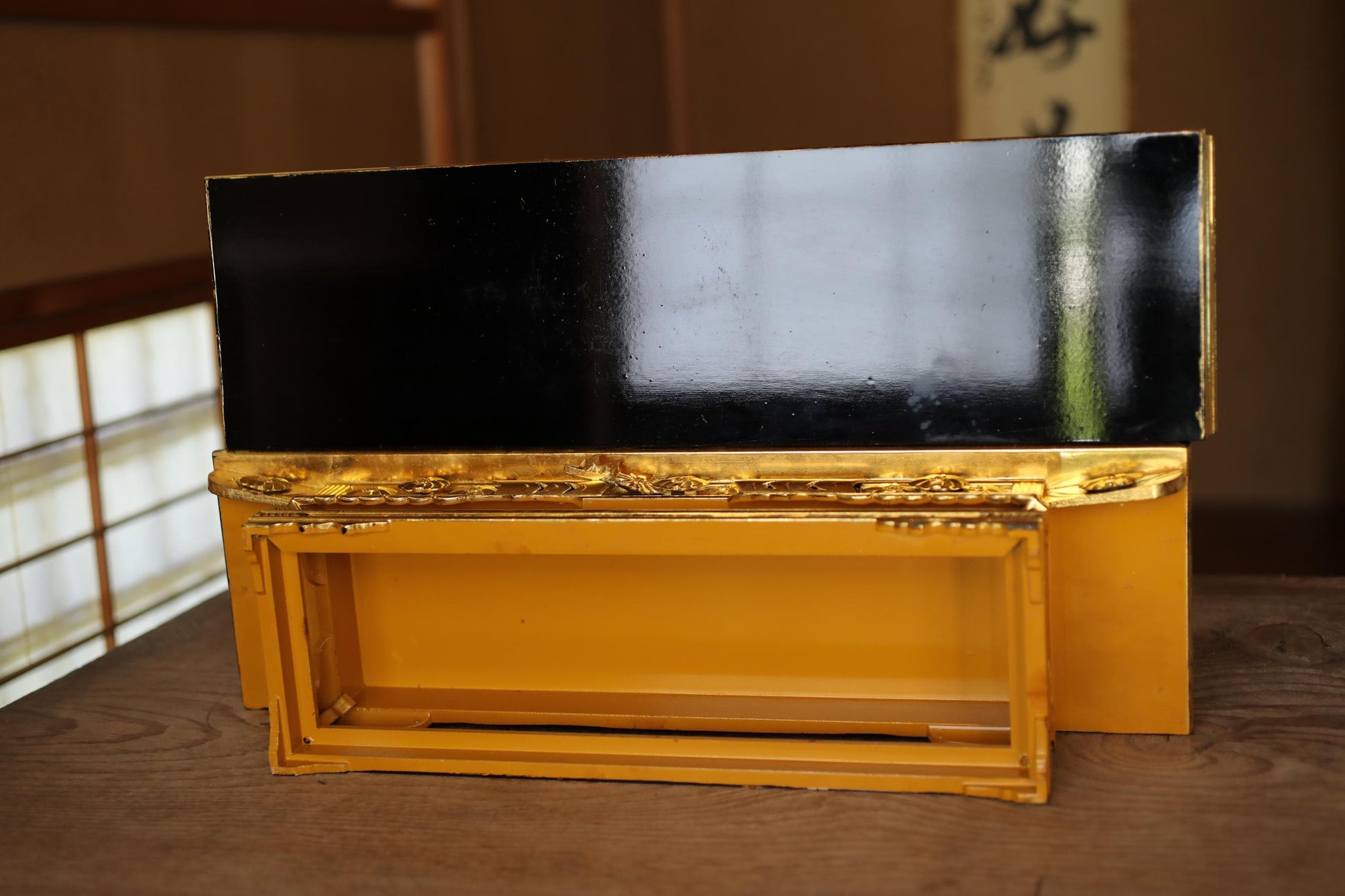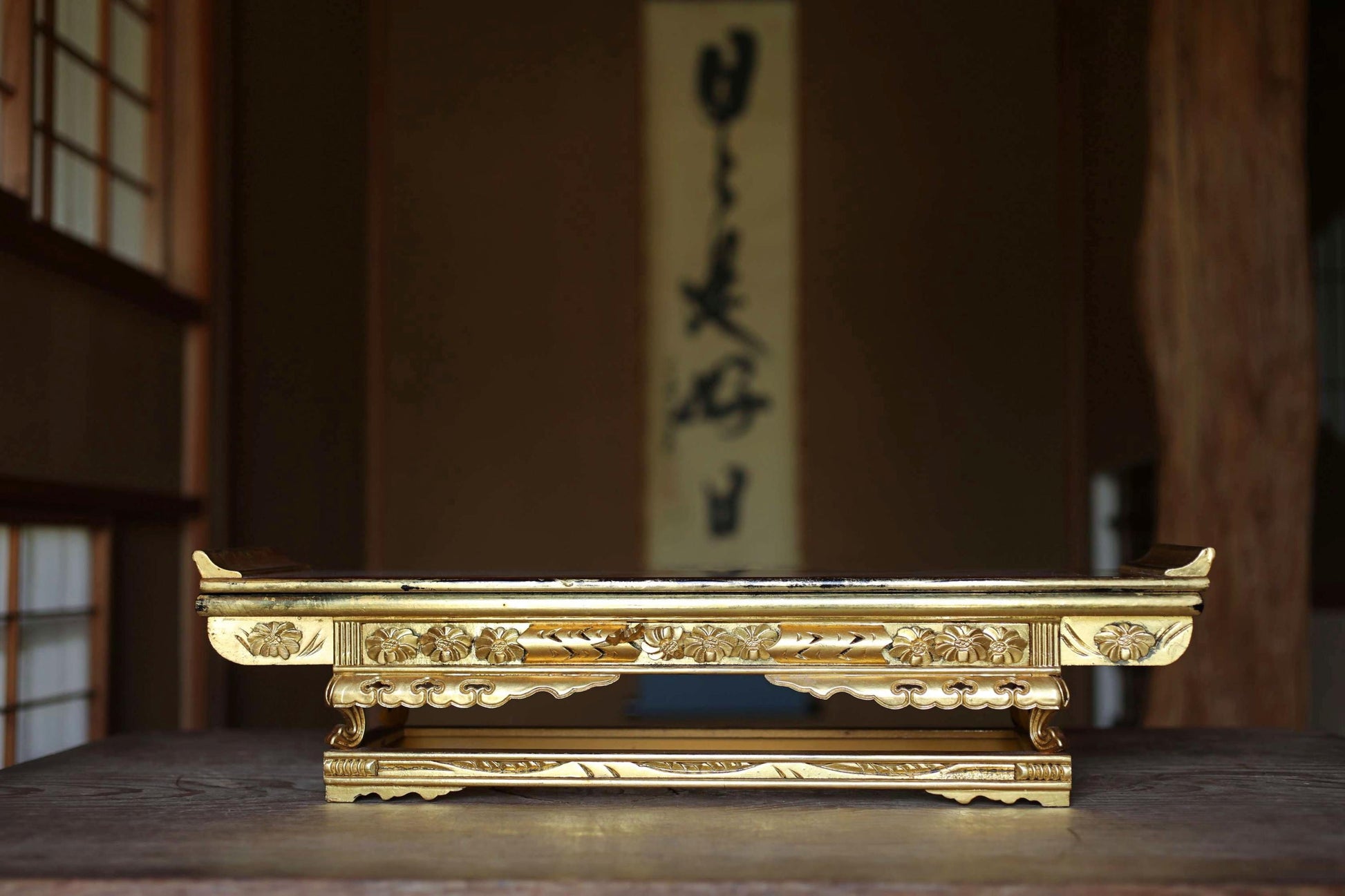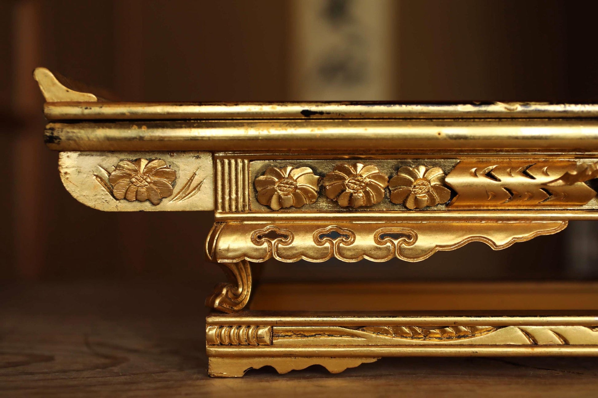 This wooden desk has been used in Japanese Buddhist temples as a desk. It is a pedestal for placing important items such as Buddhist statues and offerings.