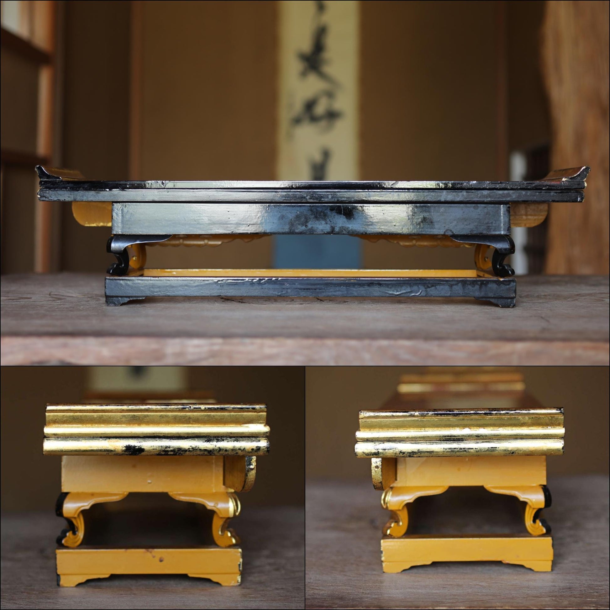 Japanese antique lacquer table pedestal From Buddhist temple, Wood Stand Japanese furniture, red black gold Sutra desk W21.3in/W54cm.