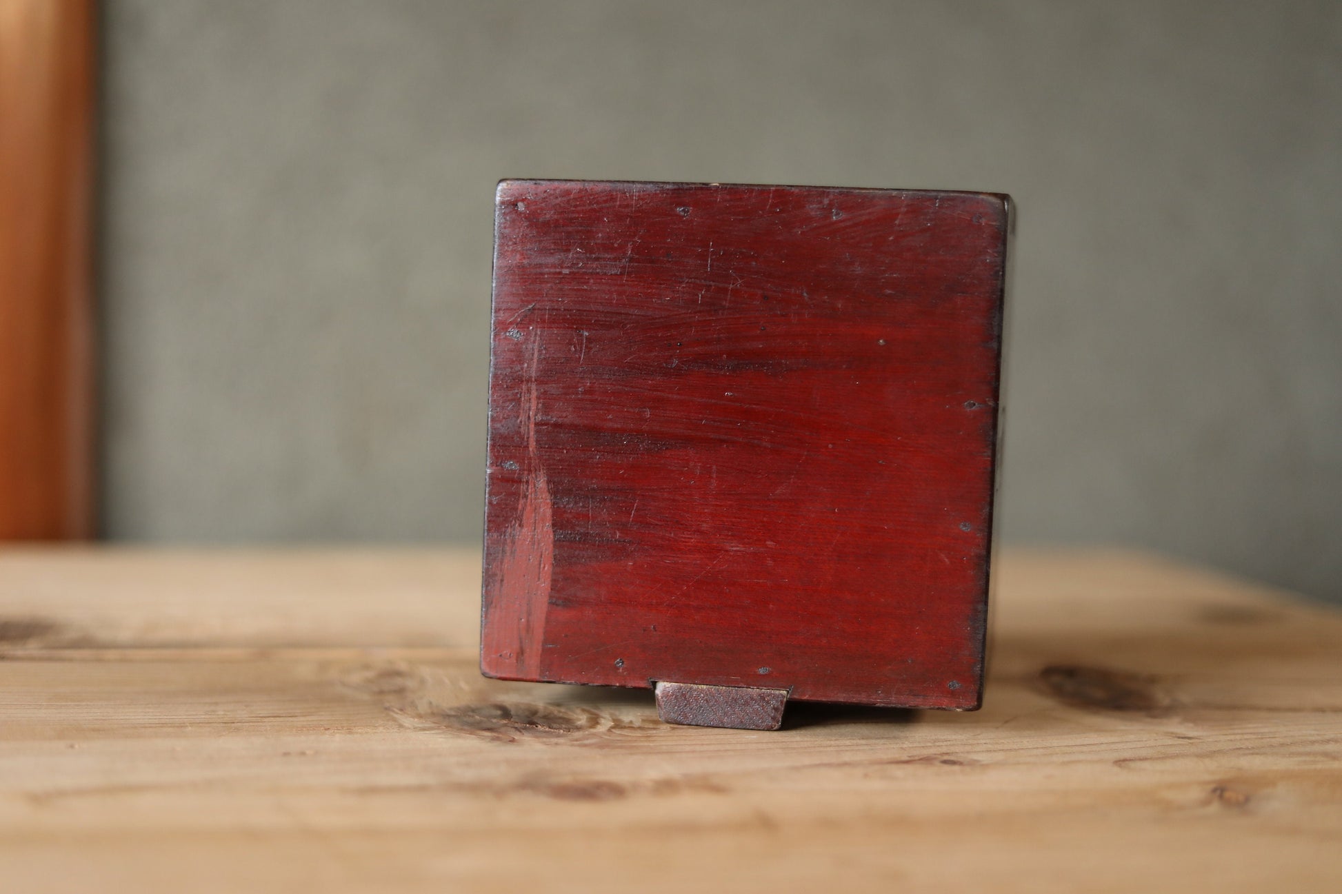 It is in good condition, but there are peeling lacquer, small scratches and dirt due to aging.