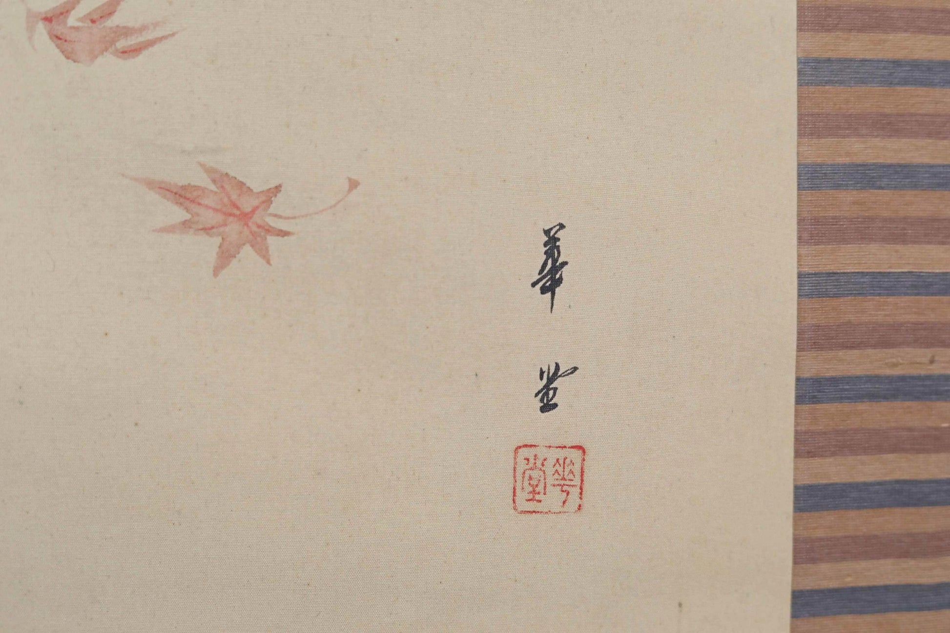 The signature is written in Kanji characters as "華堂 Kado" . Kado was born in 1802 and studied painting in Kyoto. He was hired as an official painter by the daimyo of the Owari Domain due to his exceptional skill.