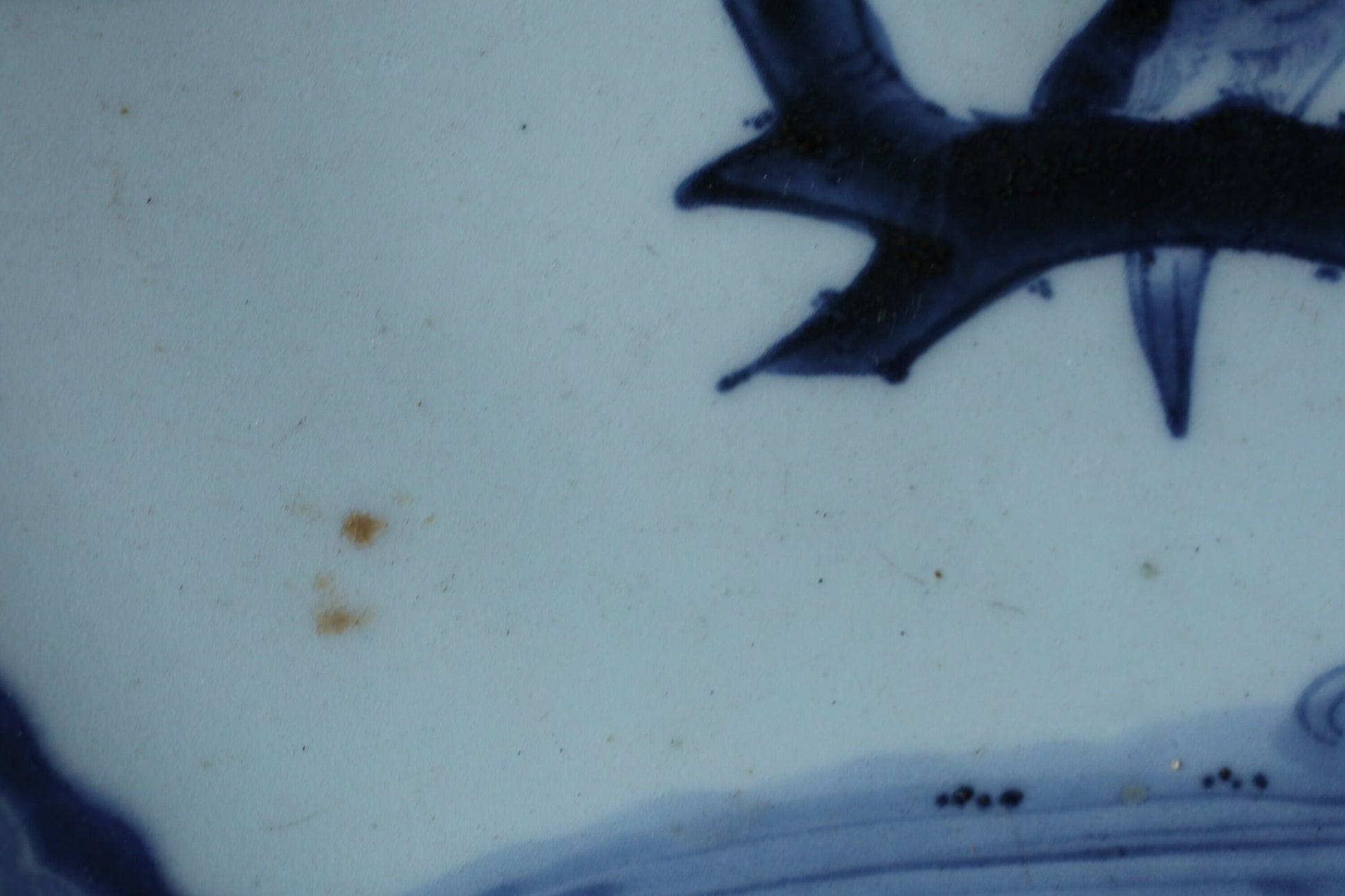 FINE! Japanese antique porcelain plate indigo Blue hand painting of Mt.Fuji and birds Authentic platter big dish Sometsuke 古伊万里 Old IMARI KOIMARI edo 1800s 11.4in/29cm.