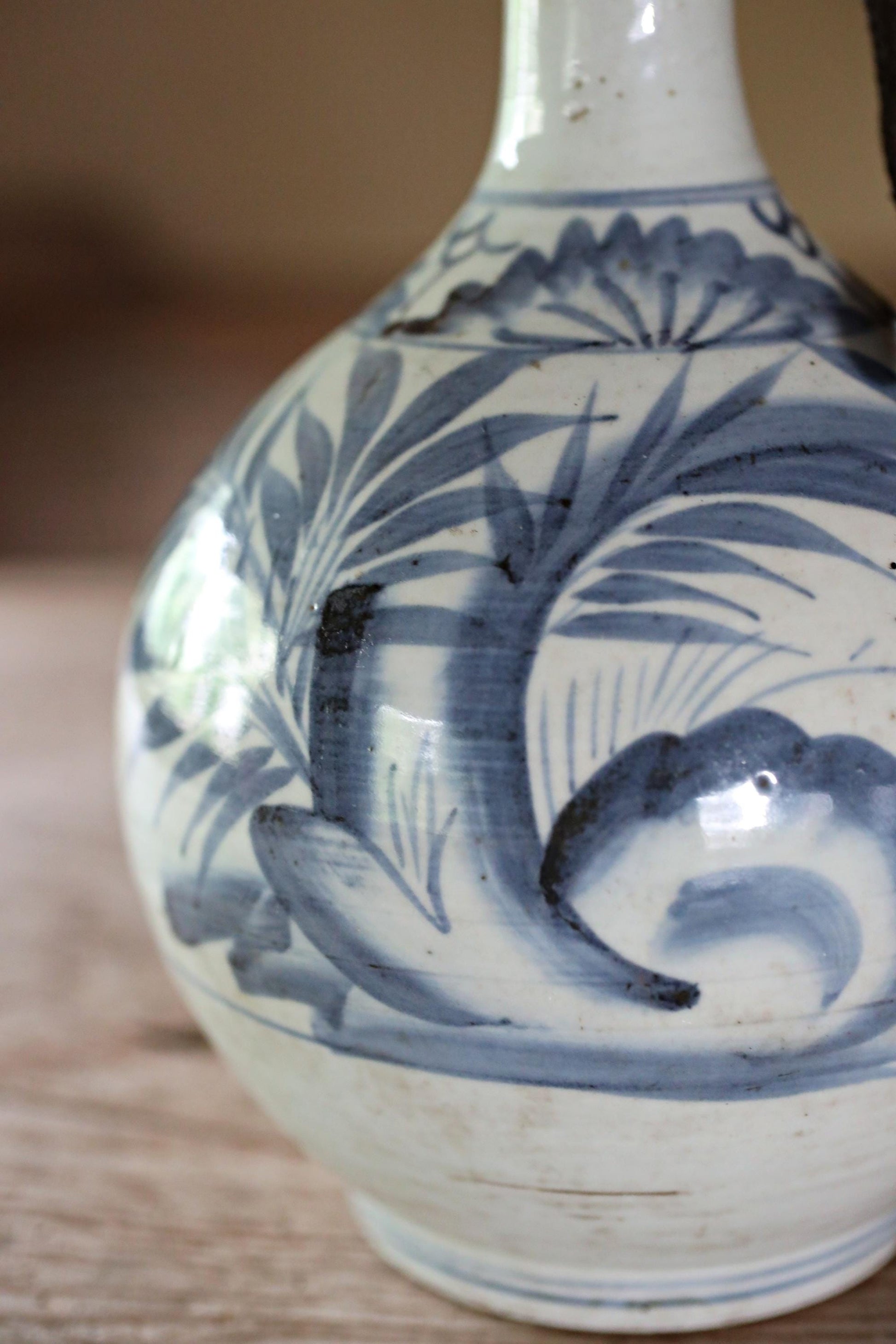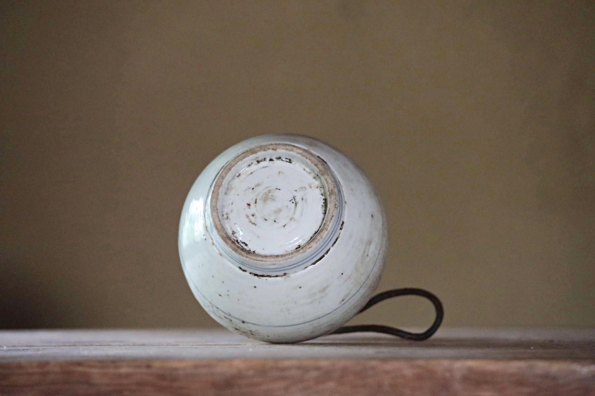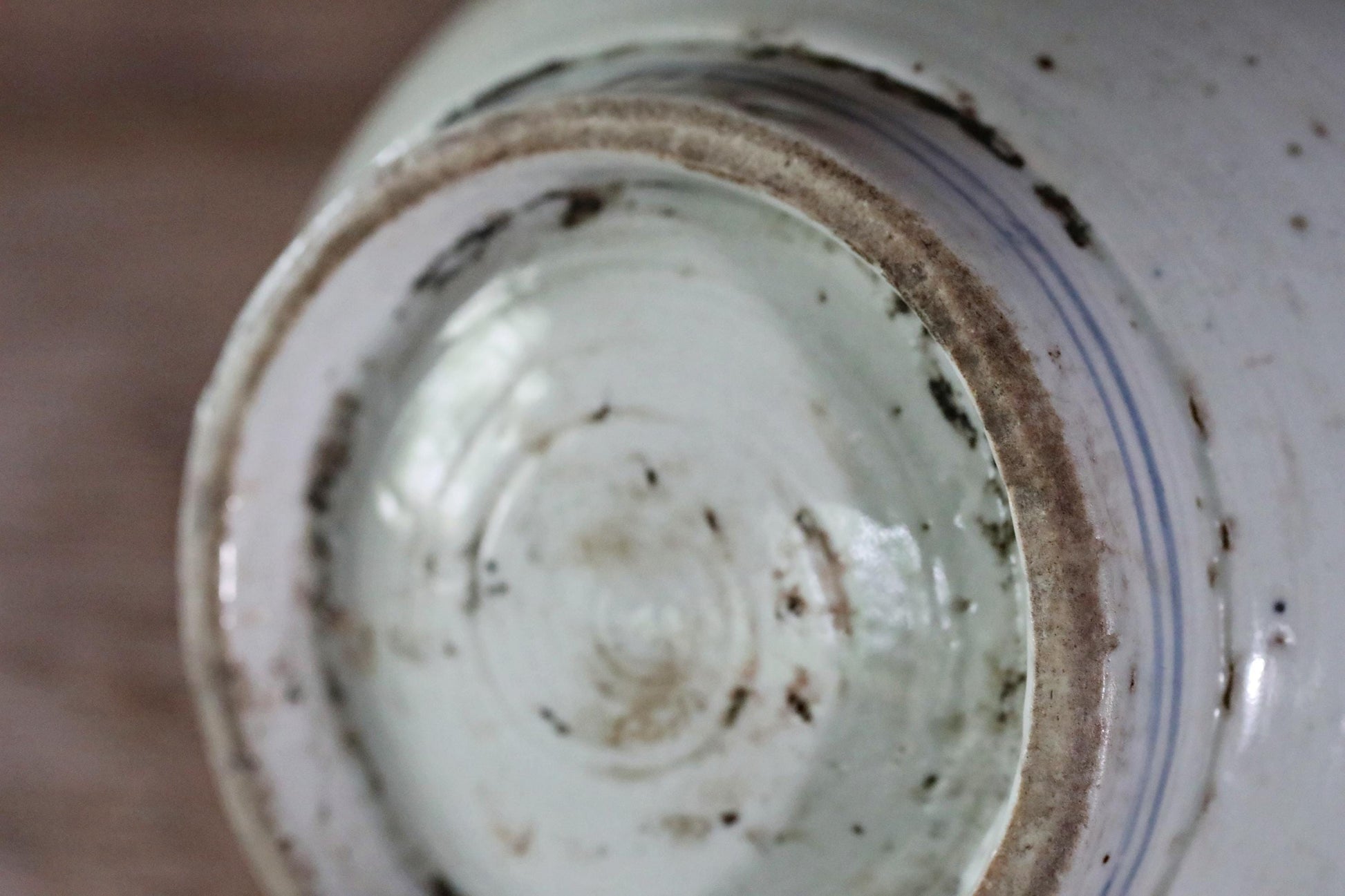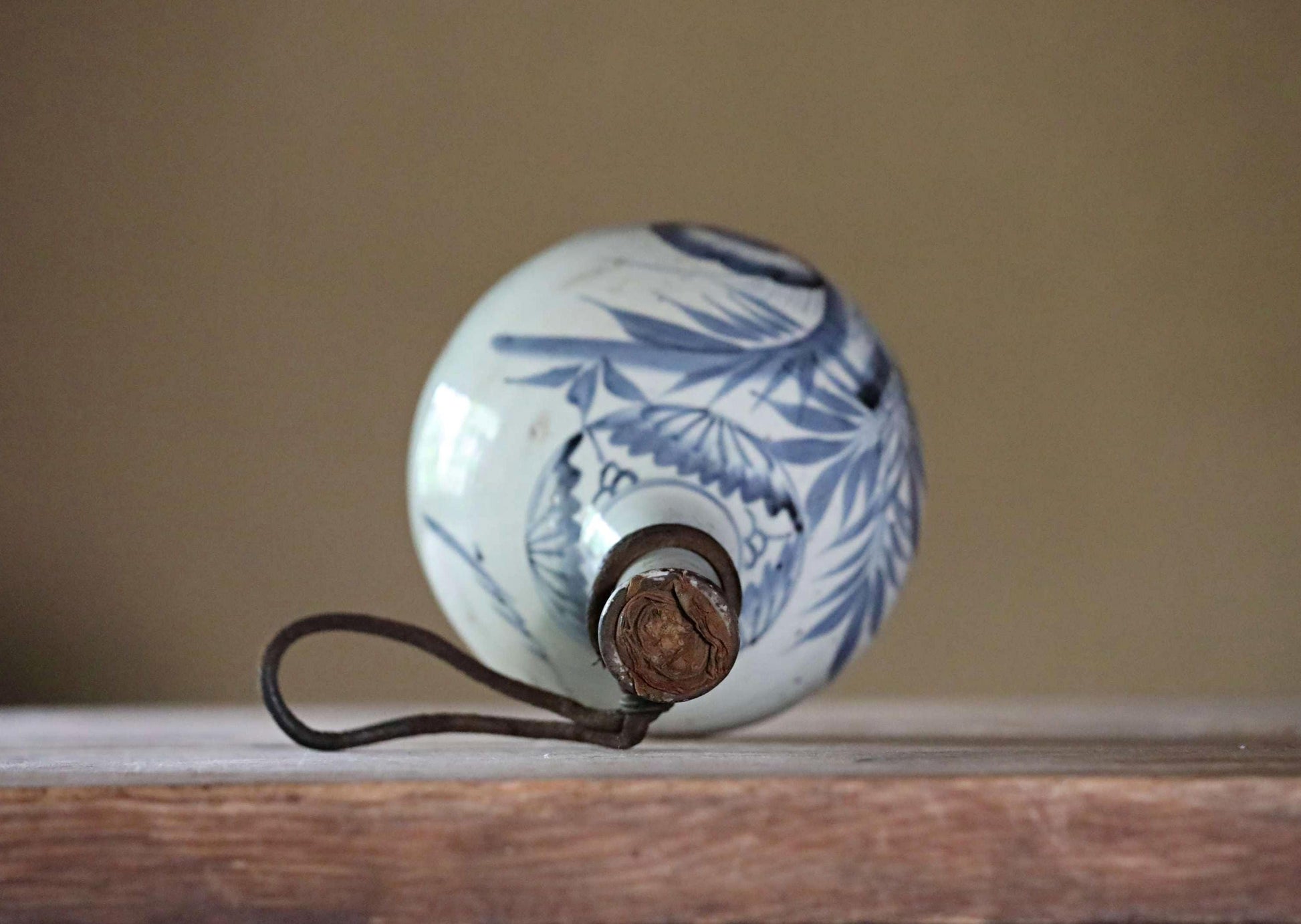 Many similar pieces were made until around the Taisho period (1912-1926), but the pale indigo color, overall glaze hue, and shape of this piece indicate that it is from the Edo period. The darker indigo seen in this tokuri is from a relatively newer period.