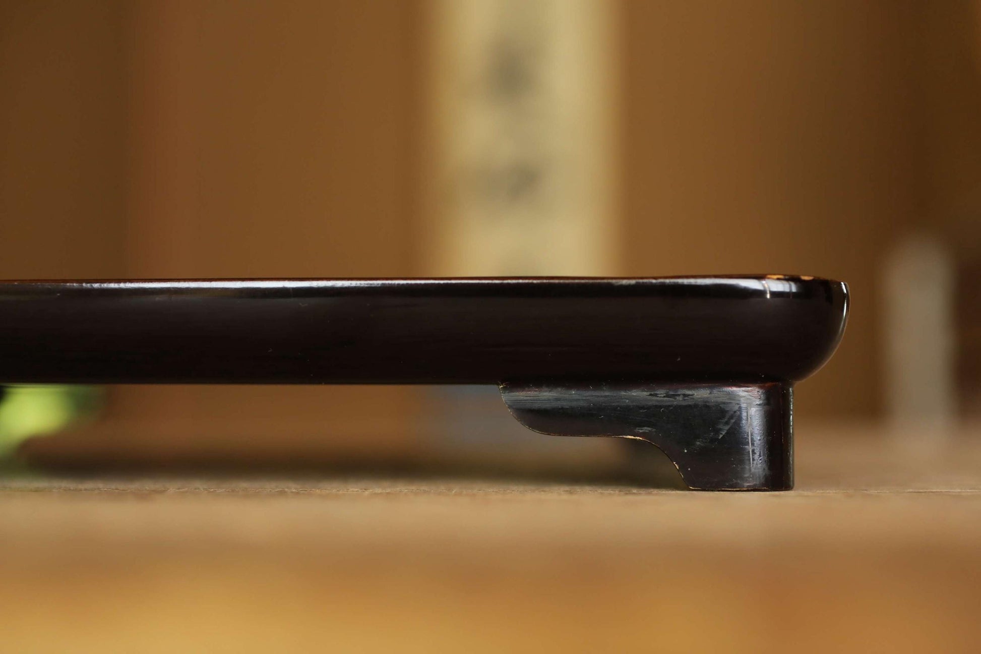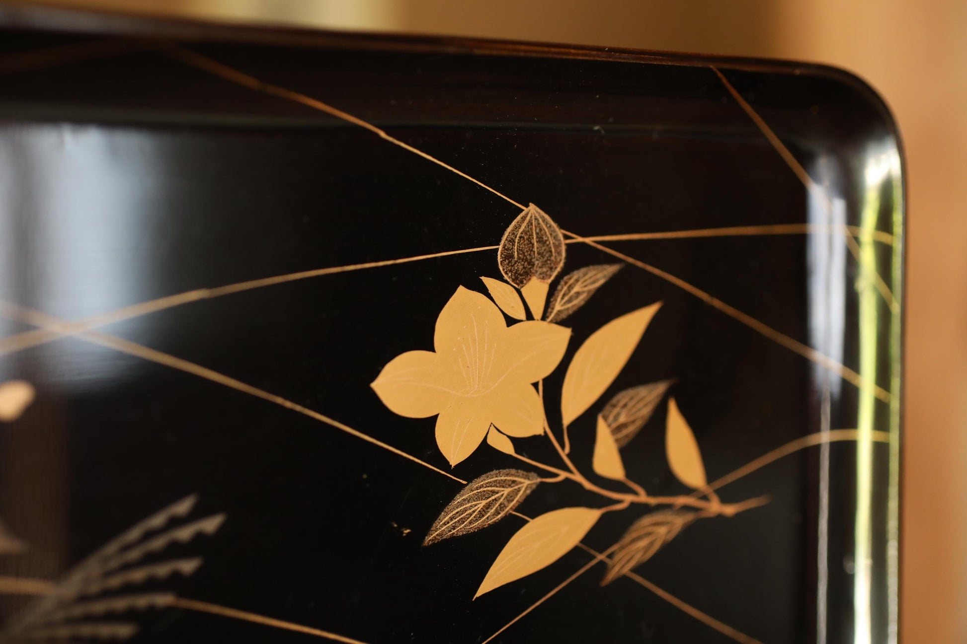 Japanese antique Urushi Lacquer wood tray with MAKIE beautiful gold flower leaves, Ozen/Obon/ with low legs Japanese furniture 10.6in/26.8cm