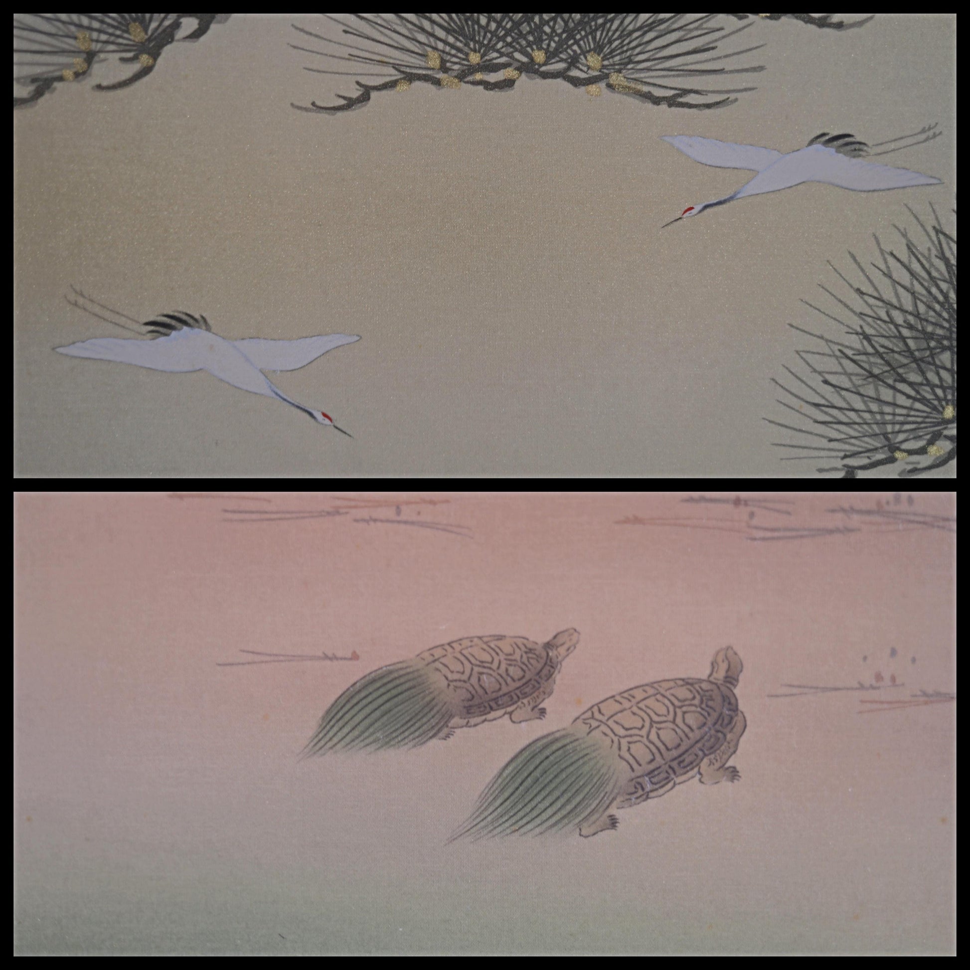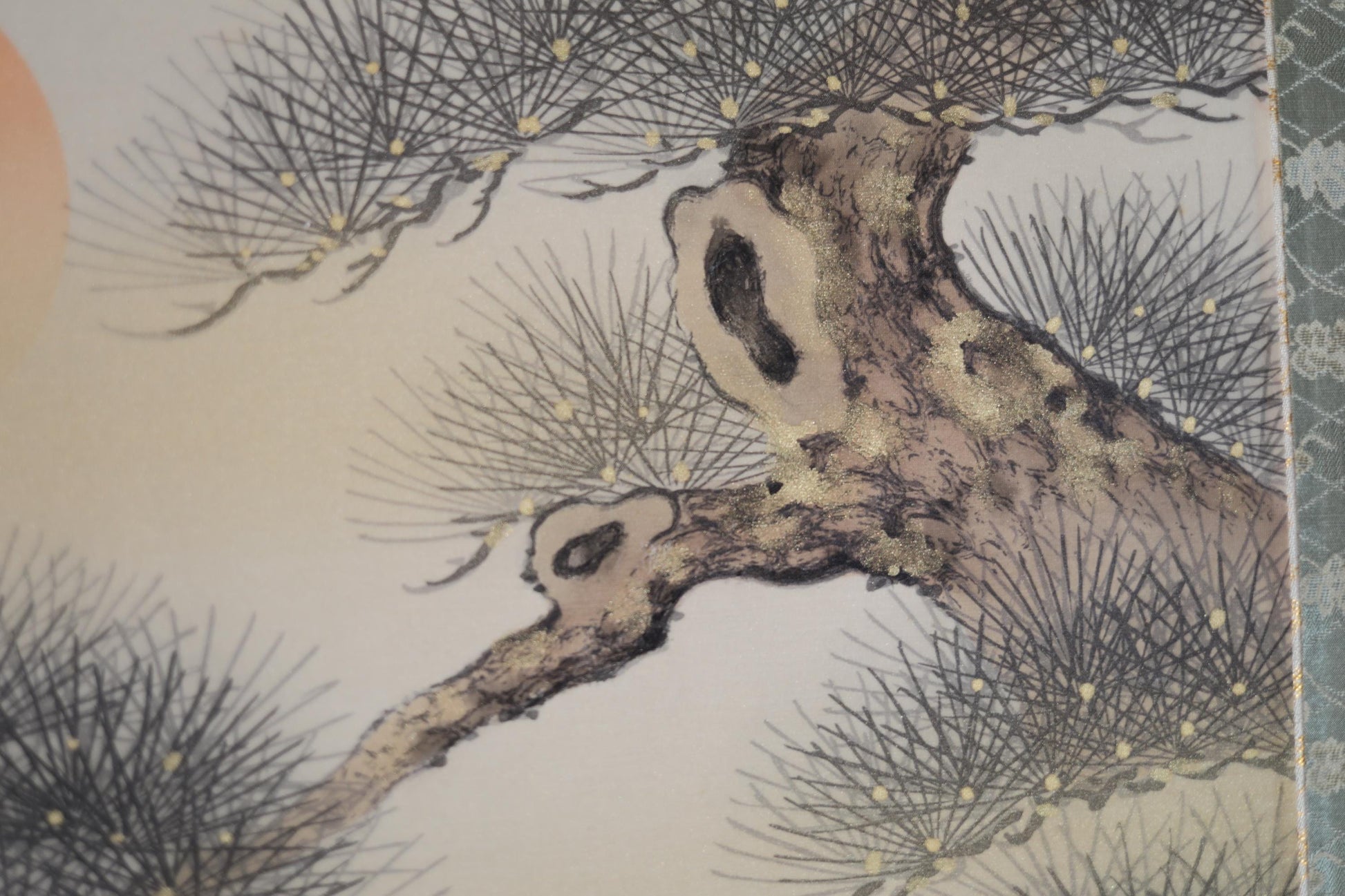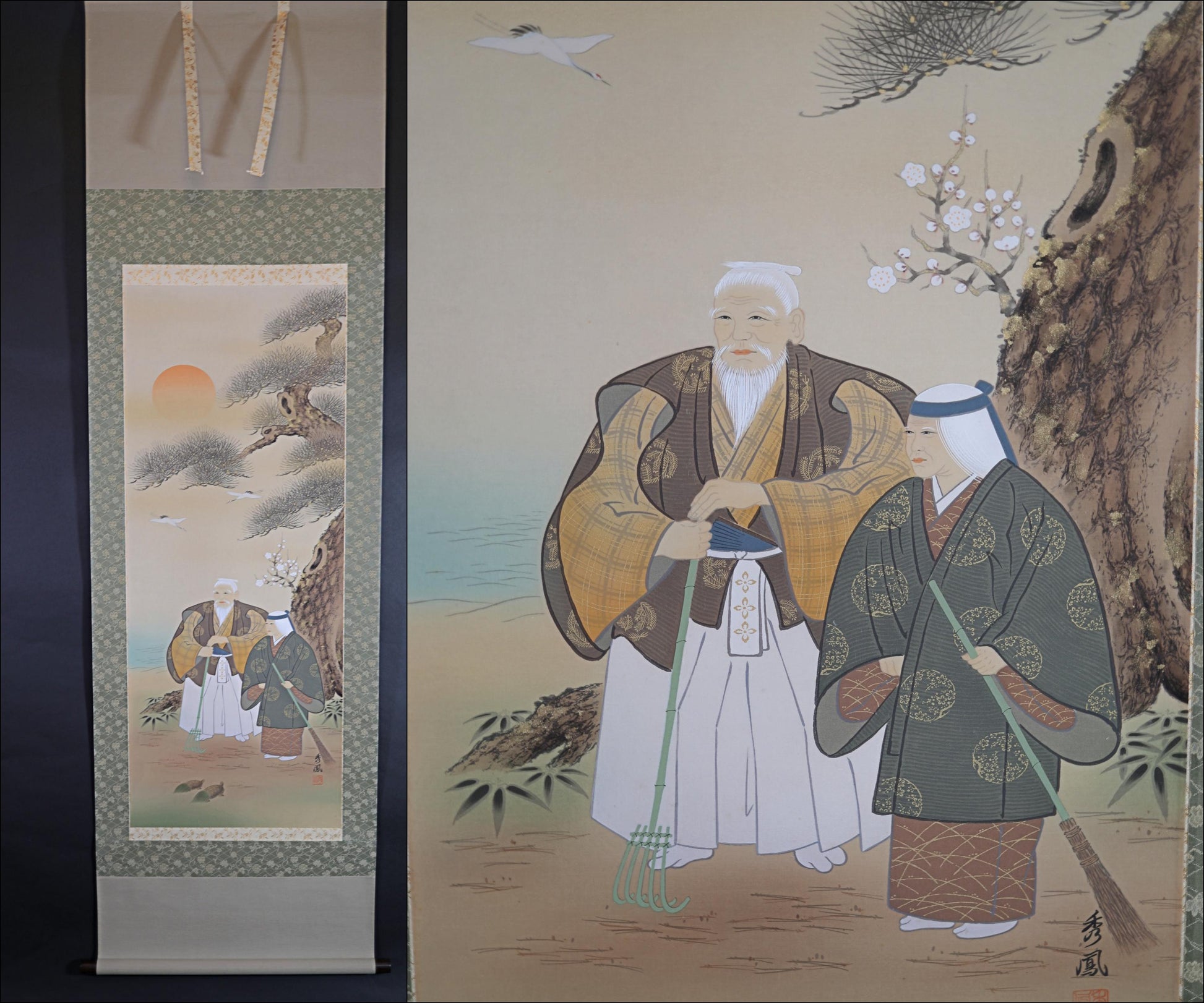 The motif of this painting is "高砂 Takasago", one of the Noh plays. It is a very festive Noh story of love between a husband and wife, longevity, and celebration of human life.