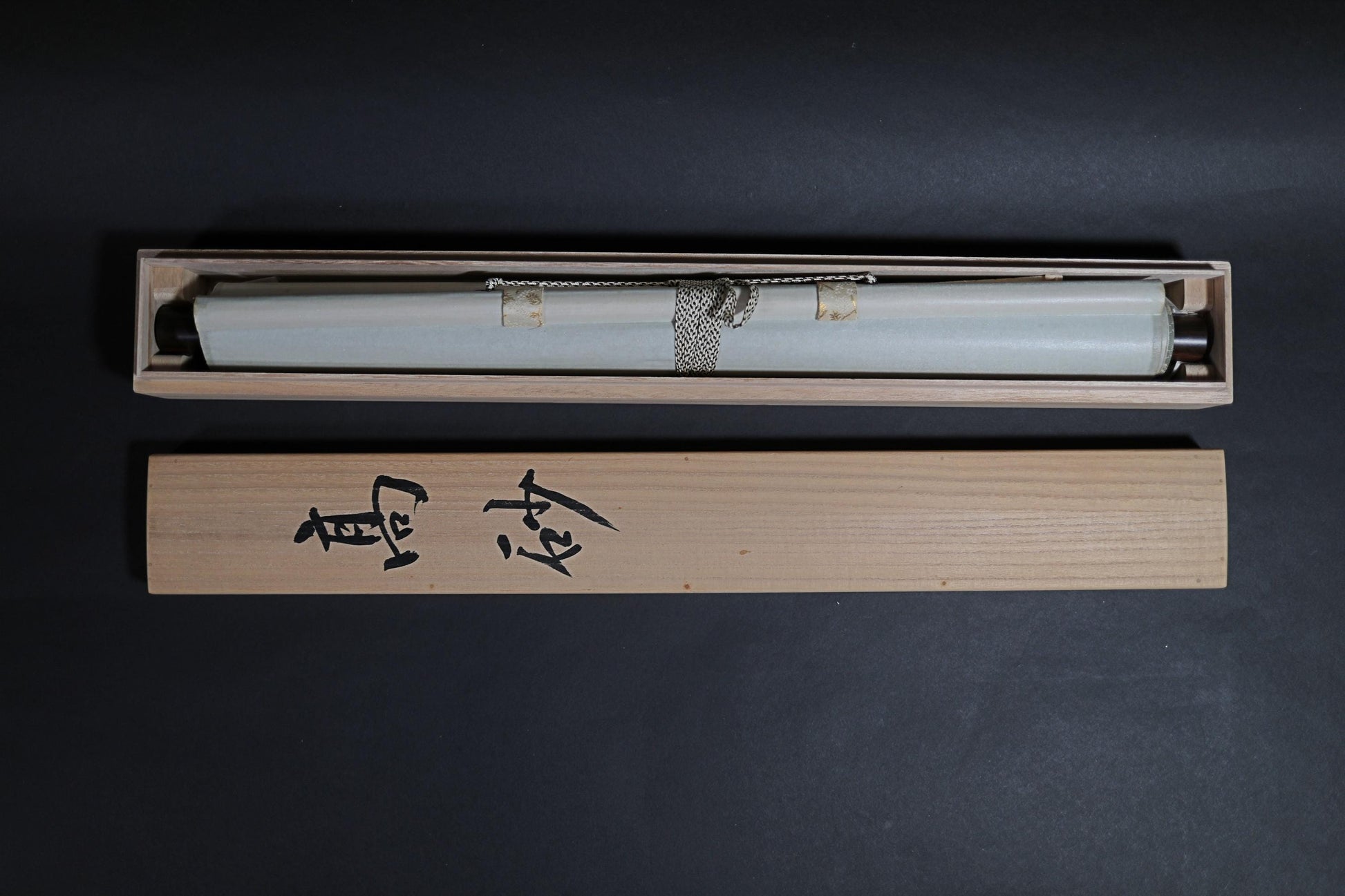 Japanese antique watercolor painting scroll for landscape wih Four Gods in feng shui, KAKEJIKU with BOX 1970s Kanji signature47.6×21.7in