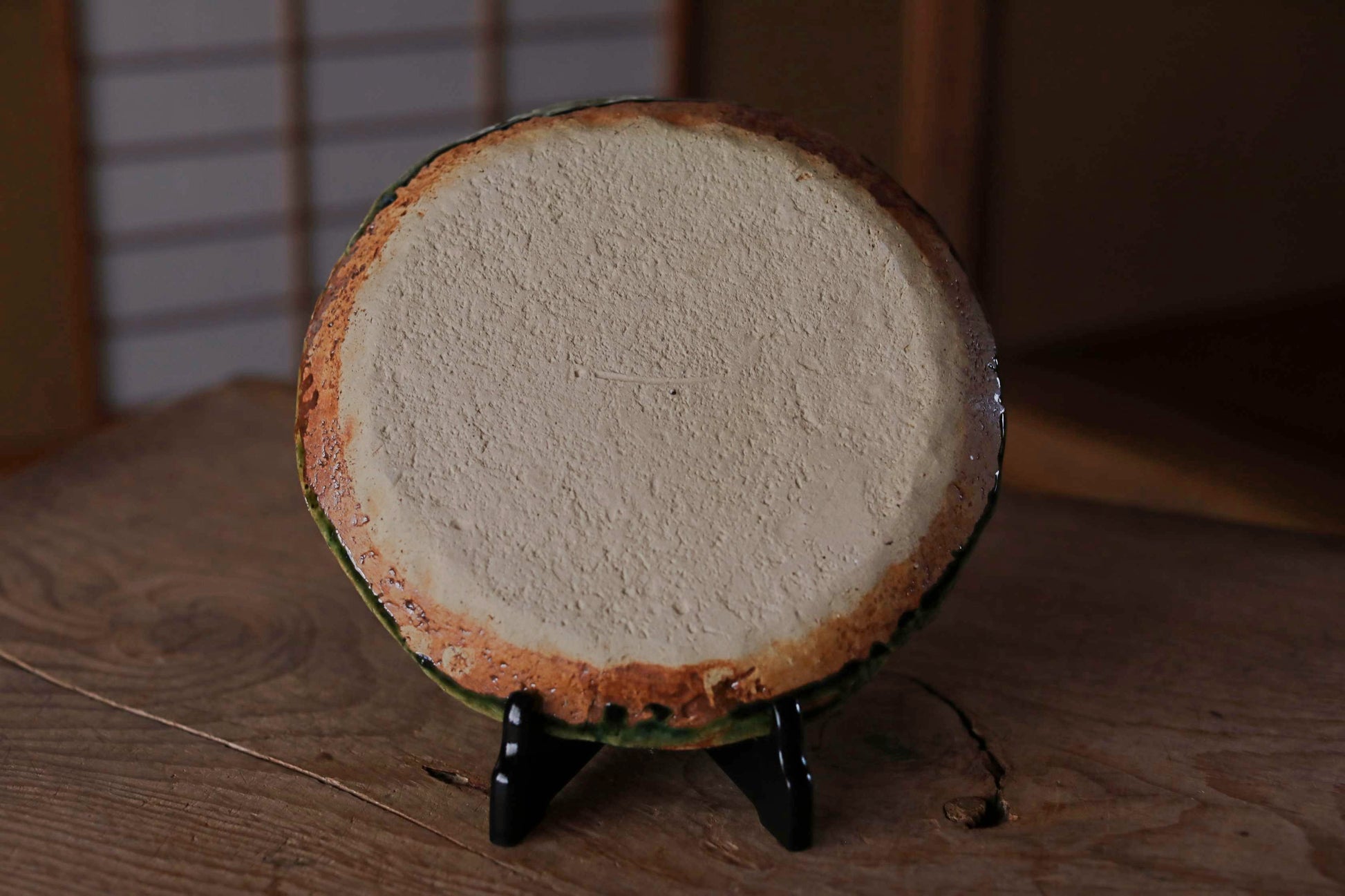 Oribe ware is a tea bowl made by Furuta Oribe, a Momoyama-era warlord and disciple of Rikyu, the founder of the tea ceremony.