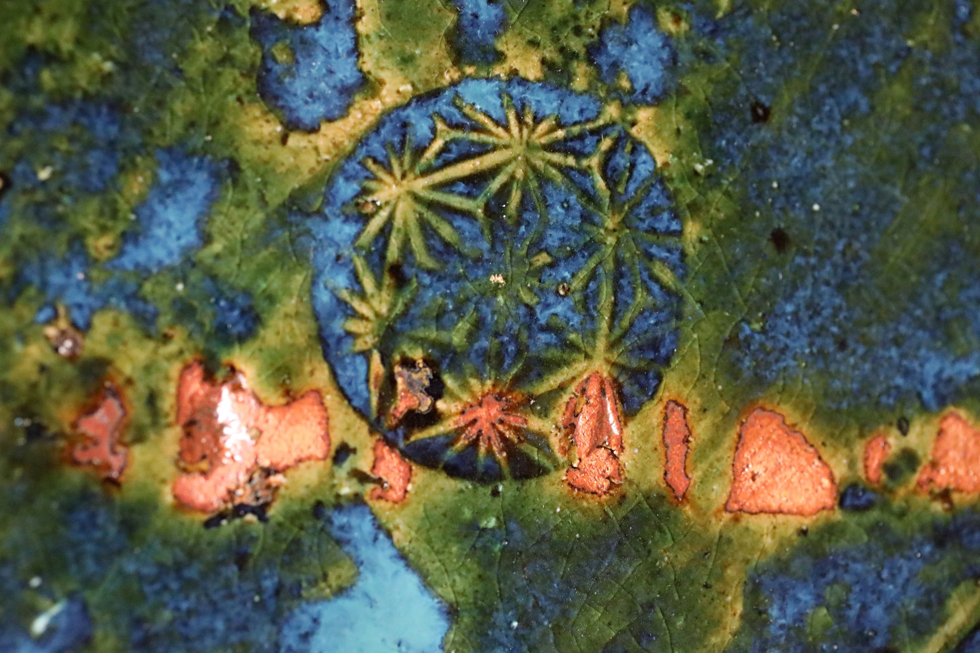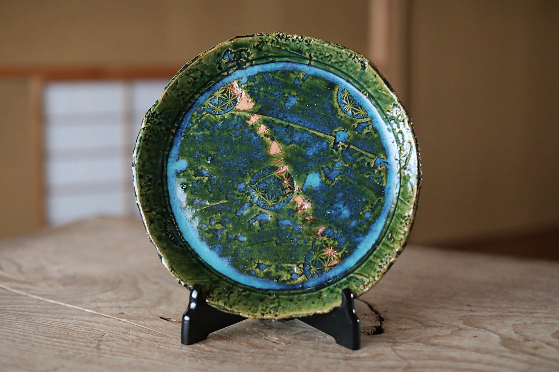 The interesting shape of the rough clay and the unevenness of the glaze are also made as a daring playful touch. The motif of hemp leaves is used as a small pattern in some places. Hemp leaves are believed to ward off evil. The name "hemp leaf" comes from its resemblance to the leaves of the hemp plant, a classic pattern of neatly arranged hexagons.