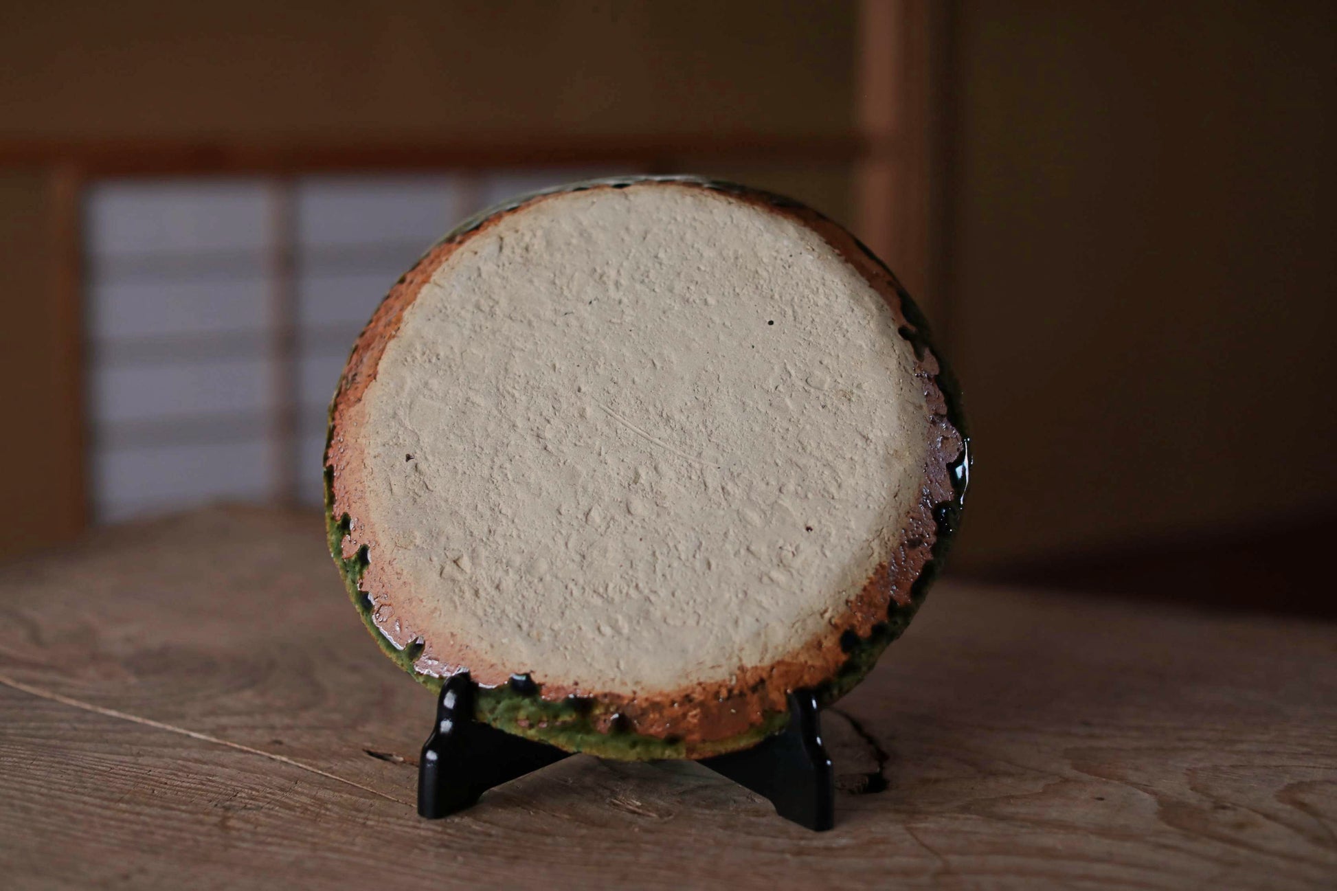 Oribe ware is a tea bowl made by Furuta Oribe, a Momoyama-era warlord and disciple of Rikyu, the founder of the tea ceremony.