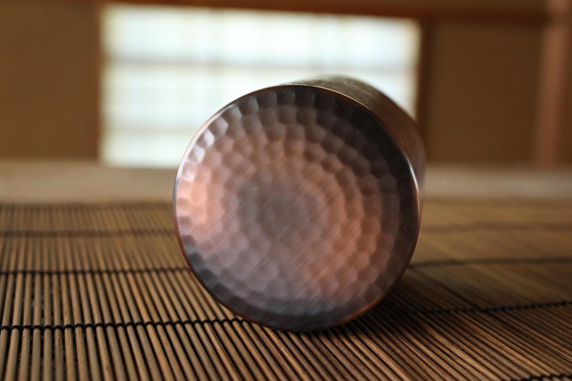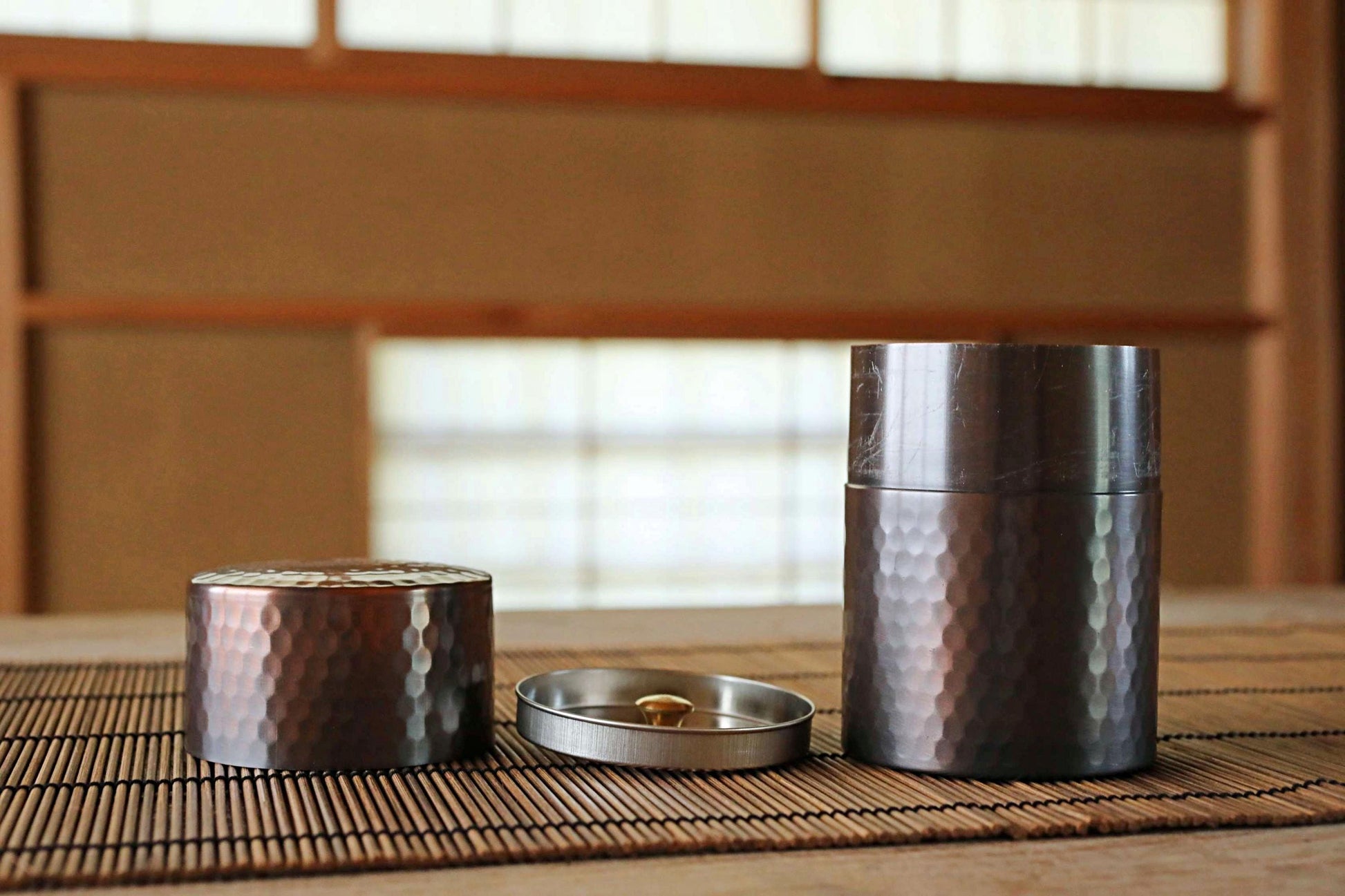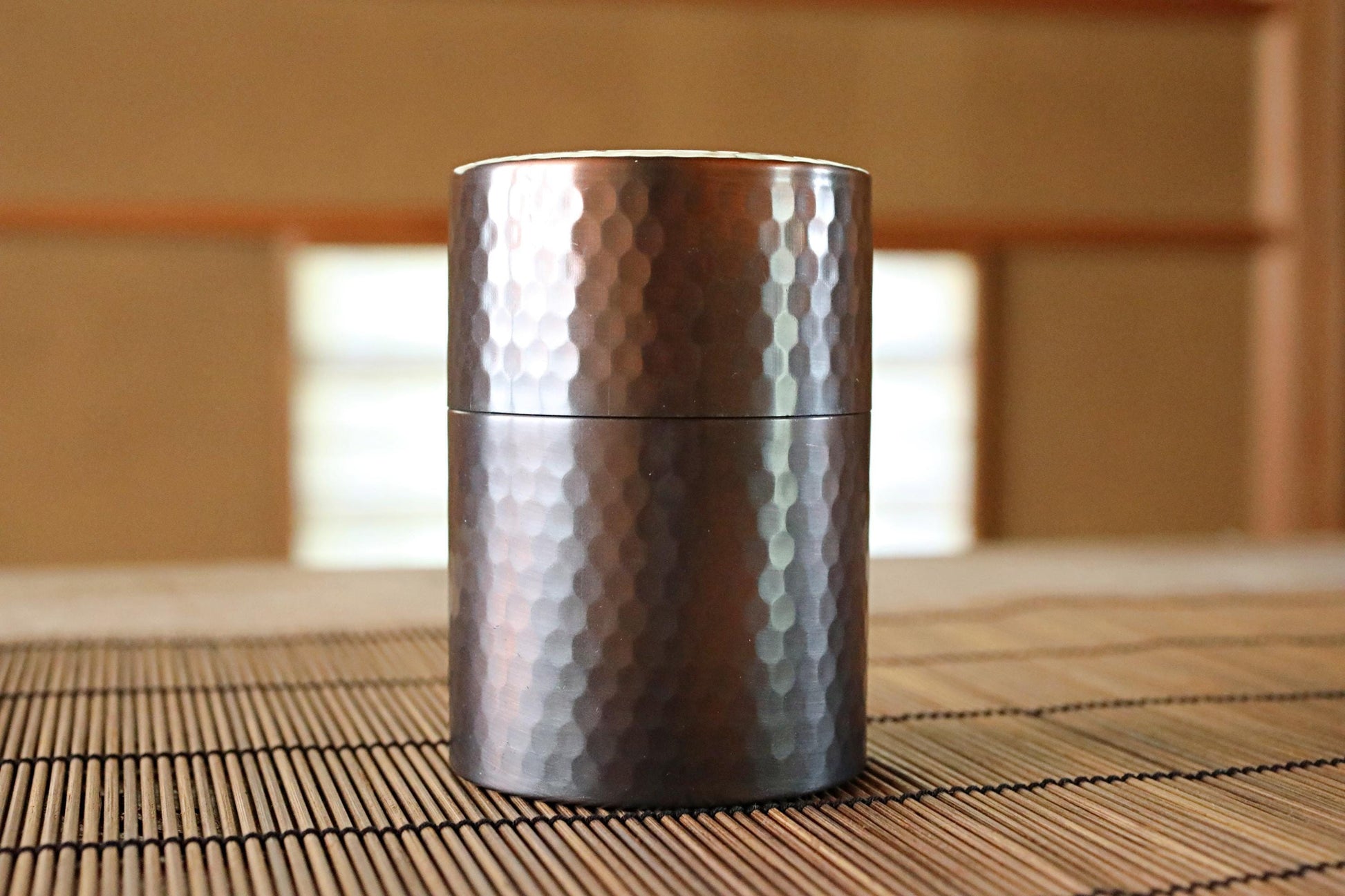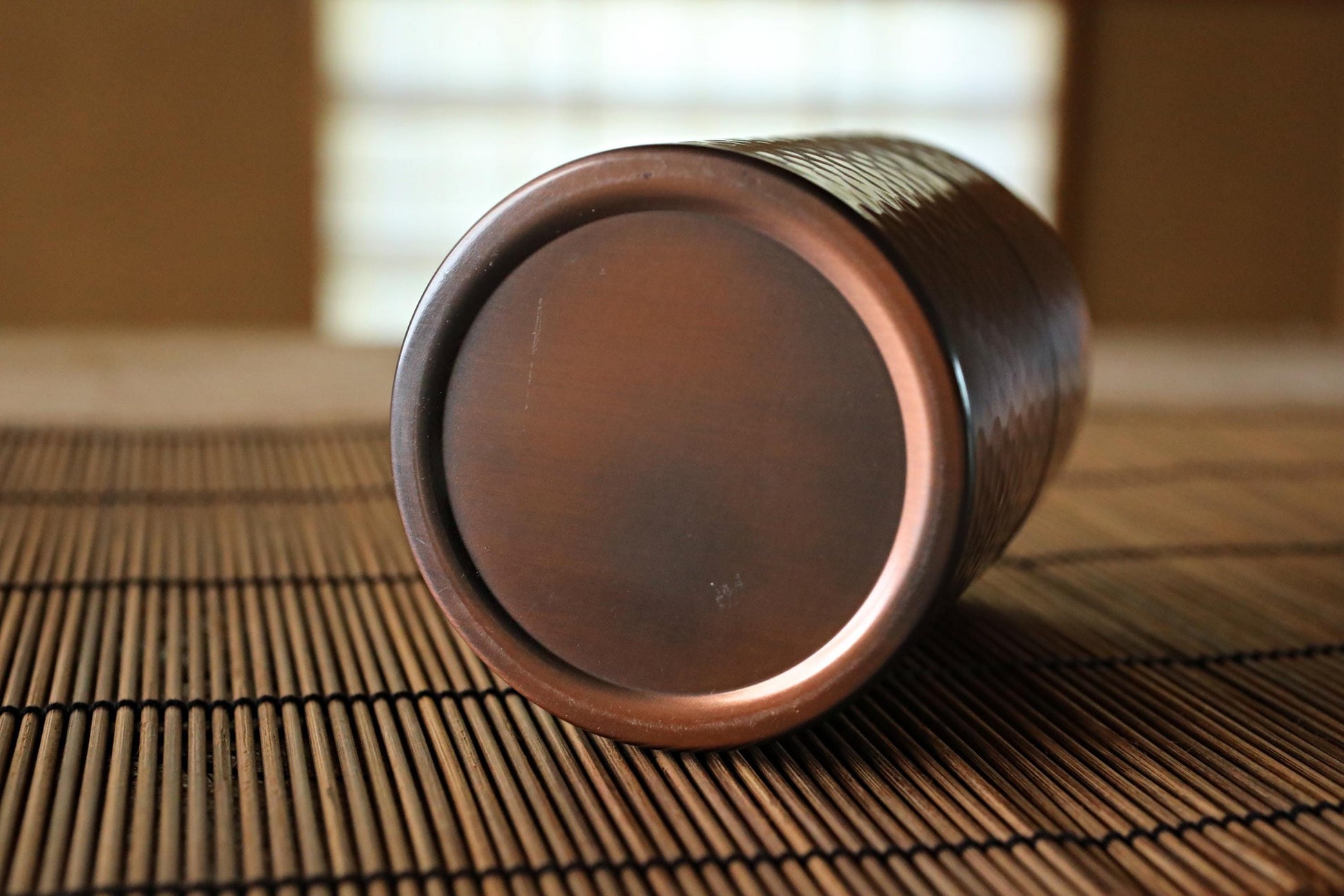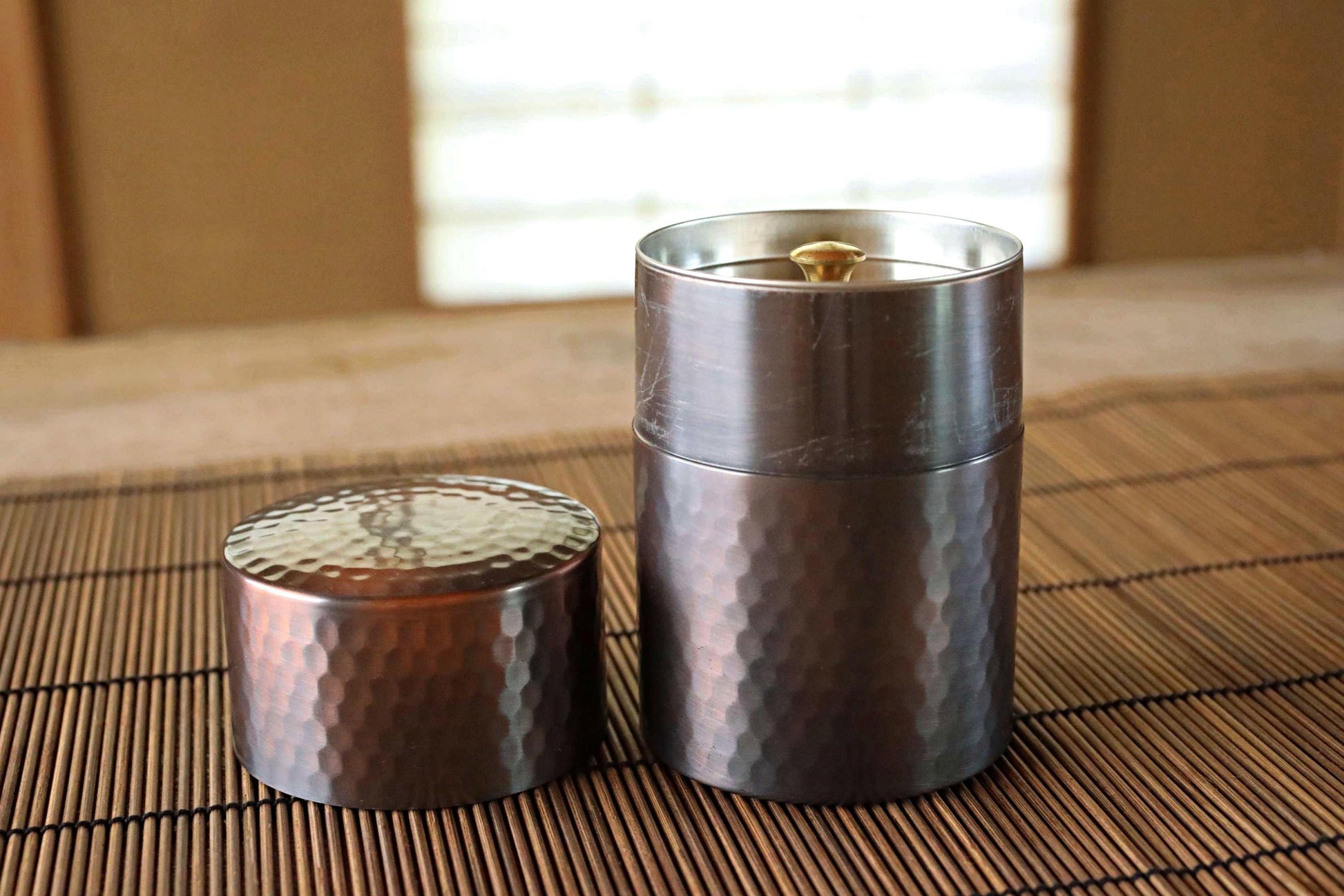 Japanese copperr tea caddy, leaf canister with double lids, hand hammered , metal handcraft H4.1×2.8in/H10.4×7.1cm