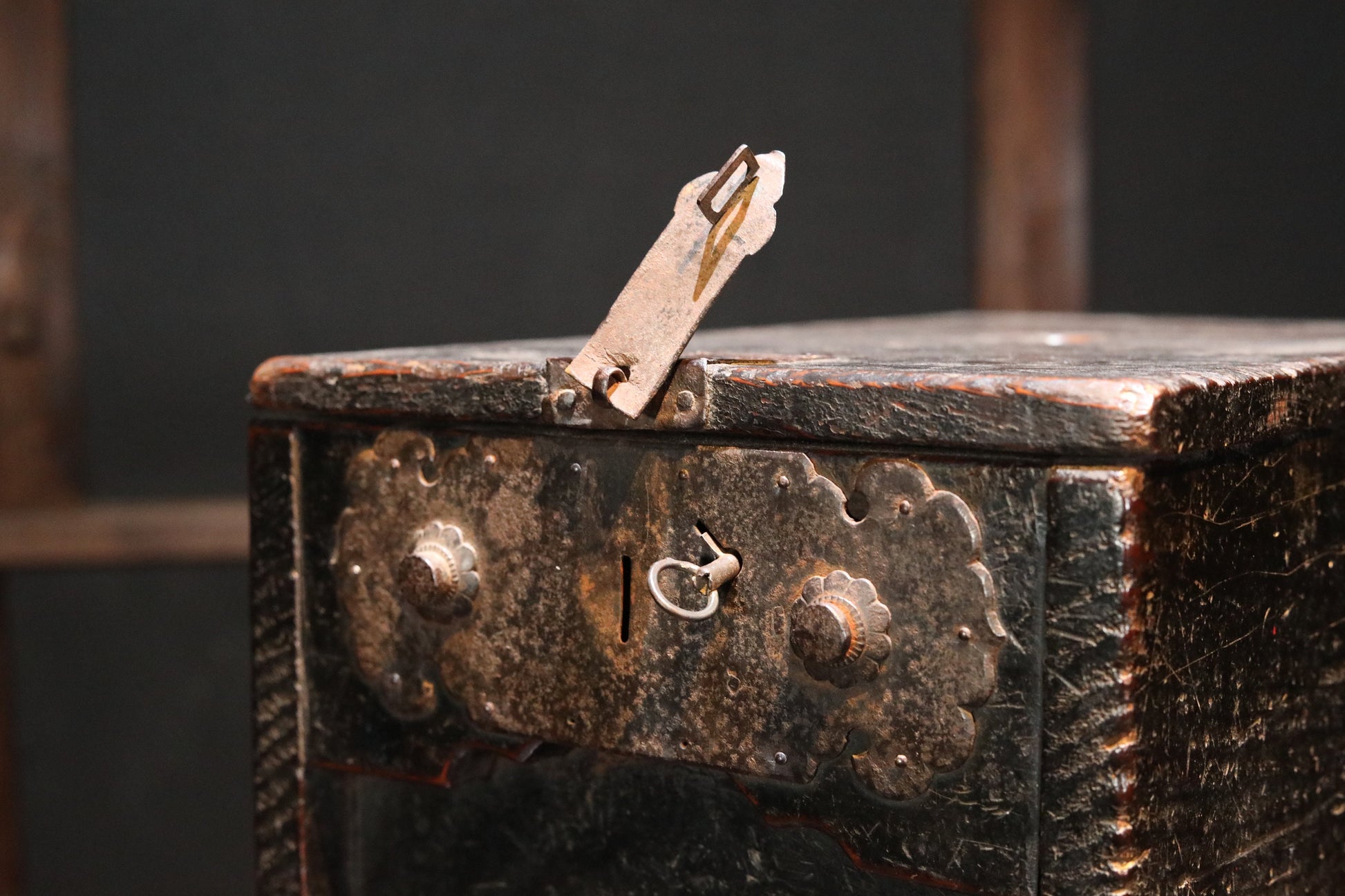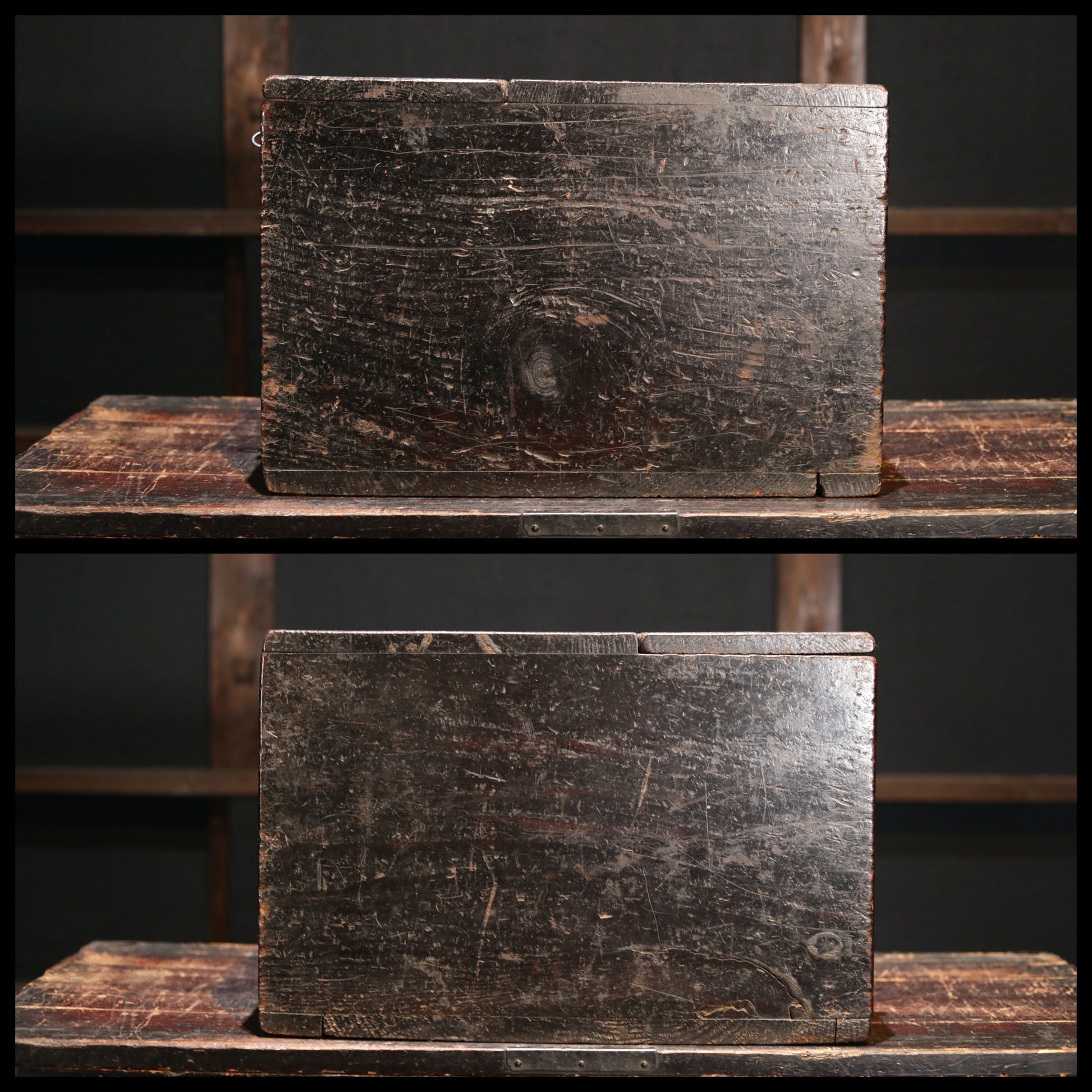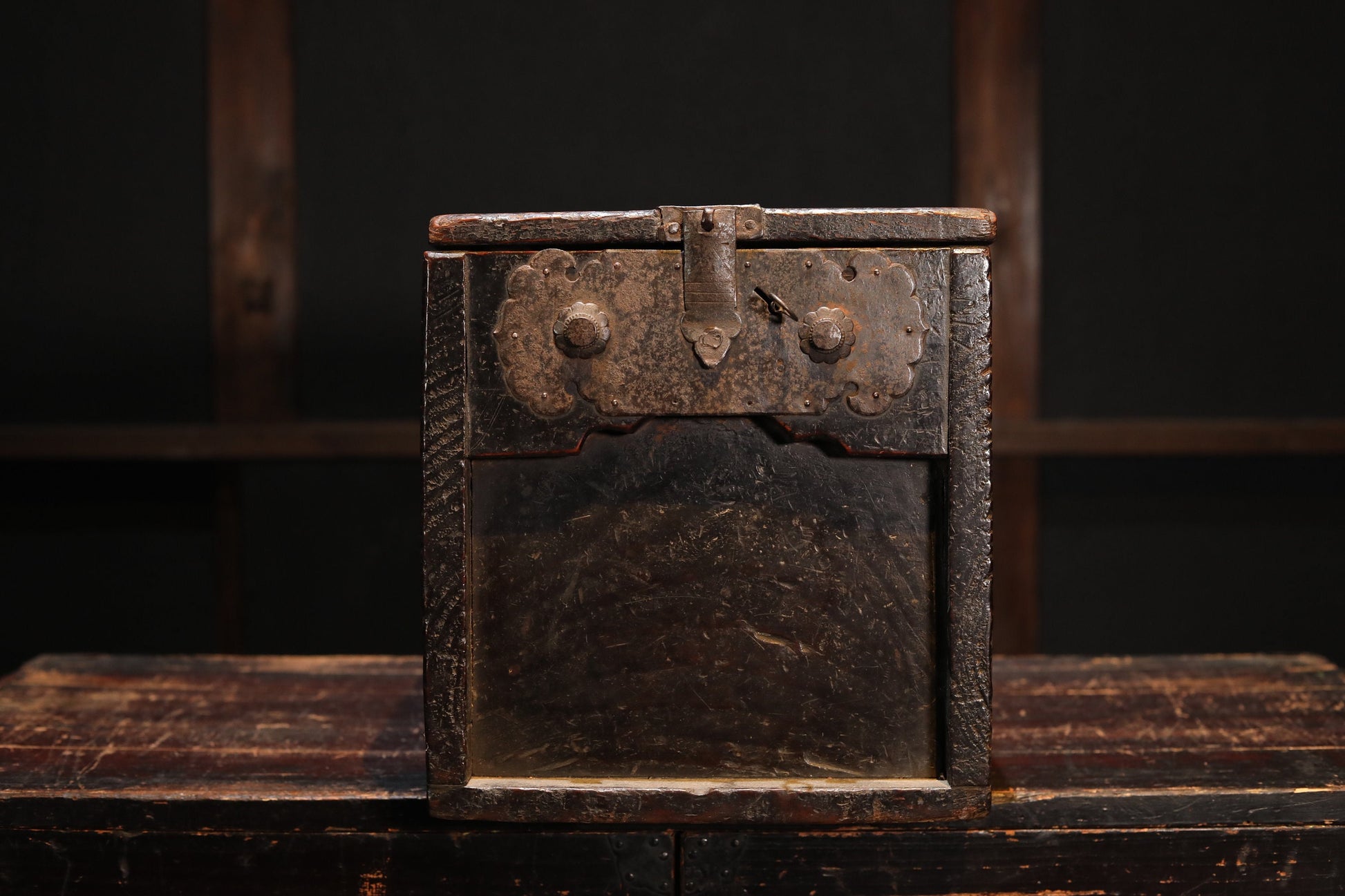 It is possible to open it with a key to open part of the upper part. Both the wood and the metal fittings are very old and atmospheric.