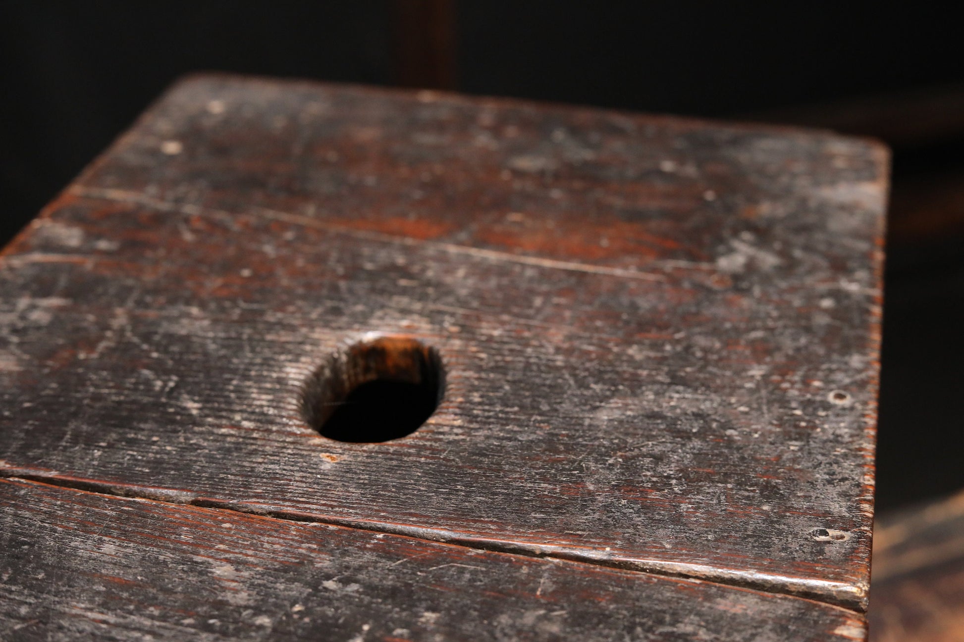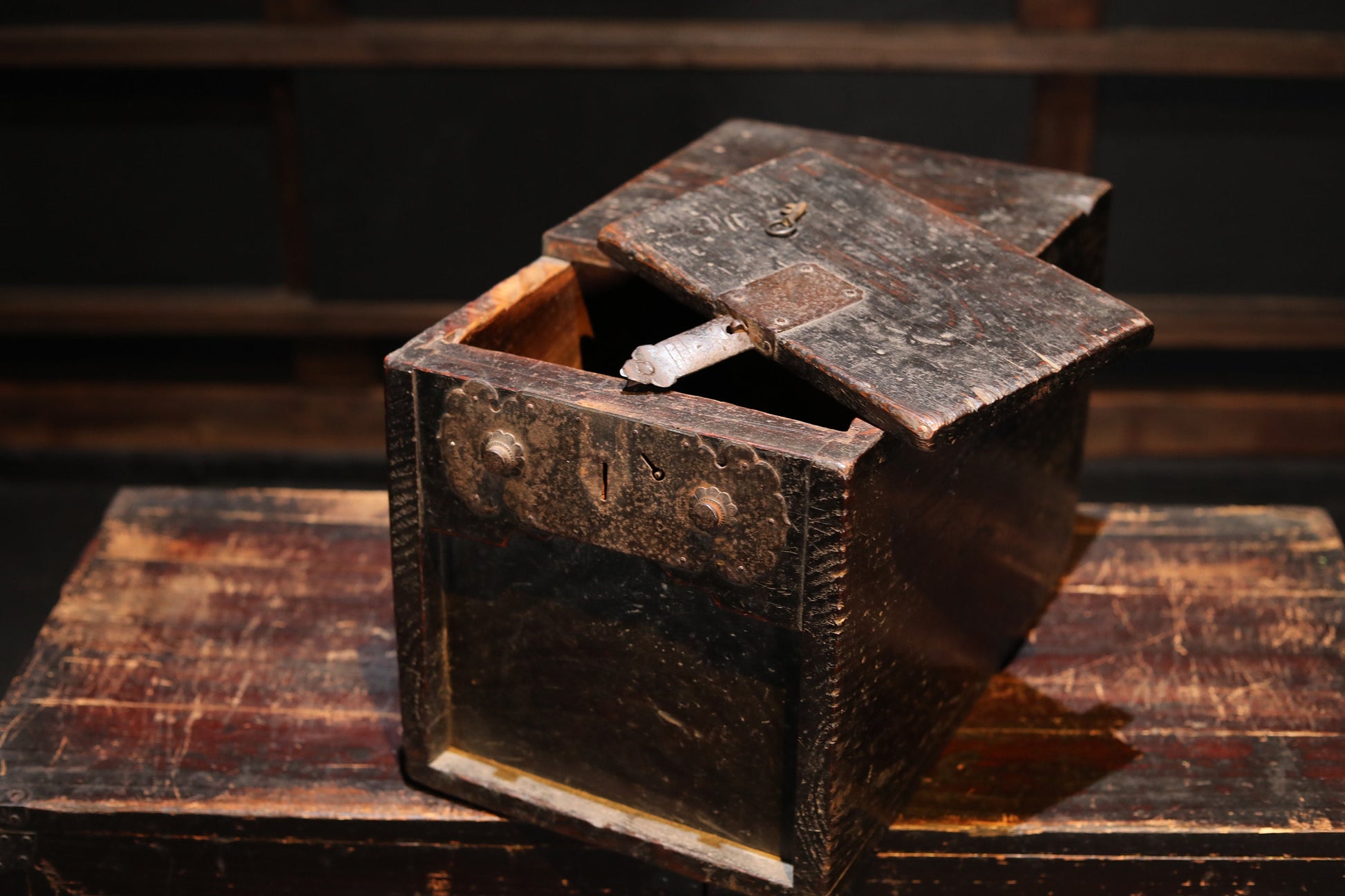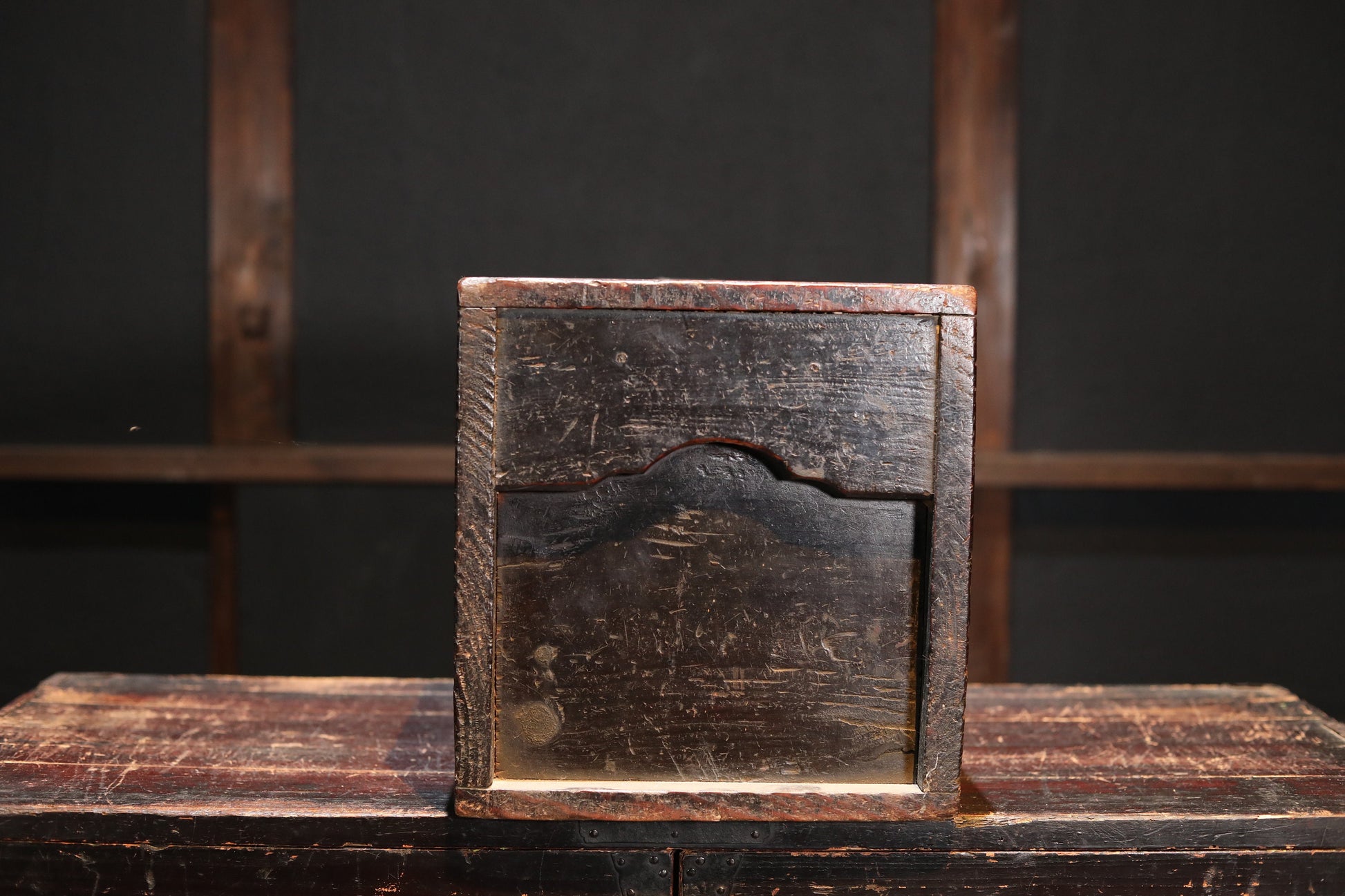 It is possible to open it with a key to open part of the upper part. Both the wood and the metal fittings are very old and atmospheric.