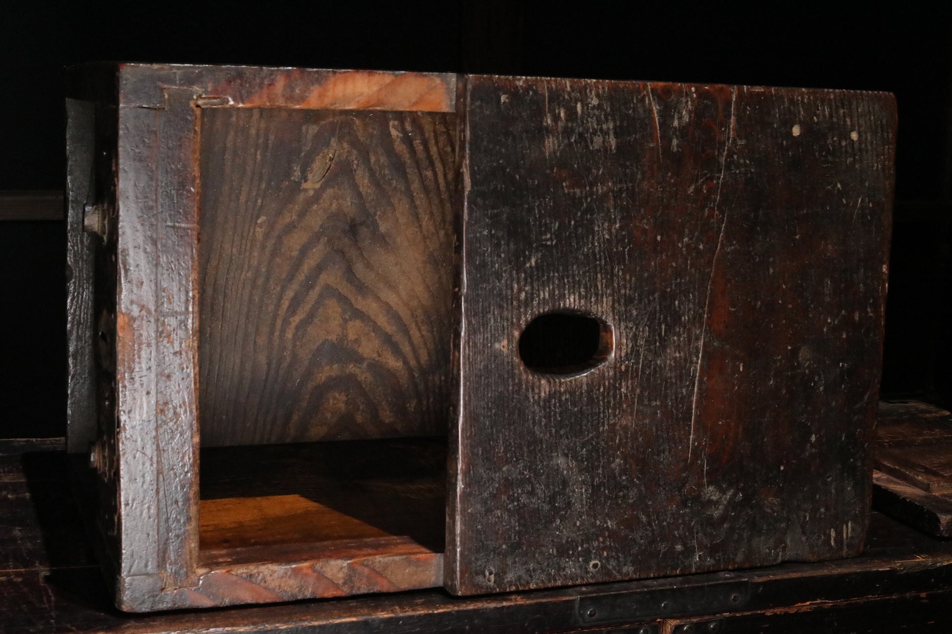 This is a box used in temples since the early Edo period to receive monetary offerings, and is called a銭箱 Zeni-bako.
