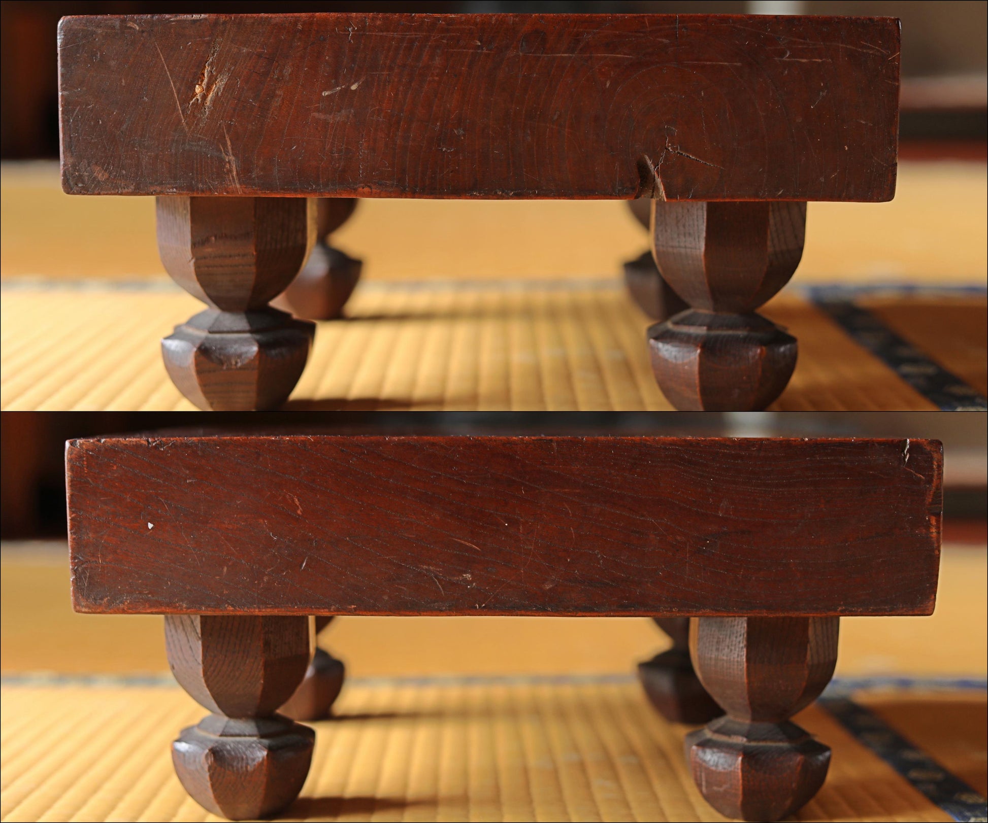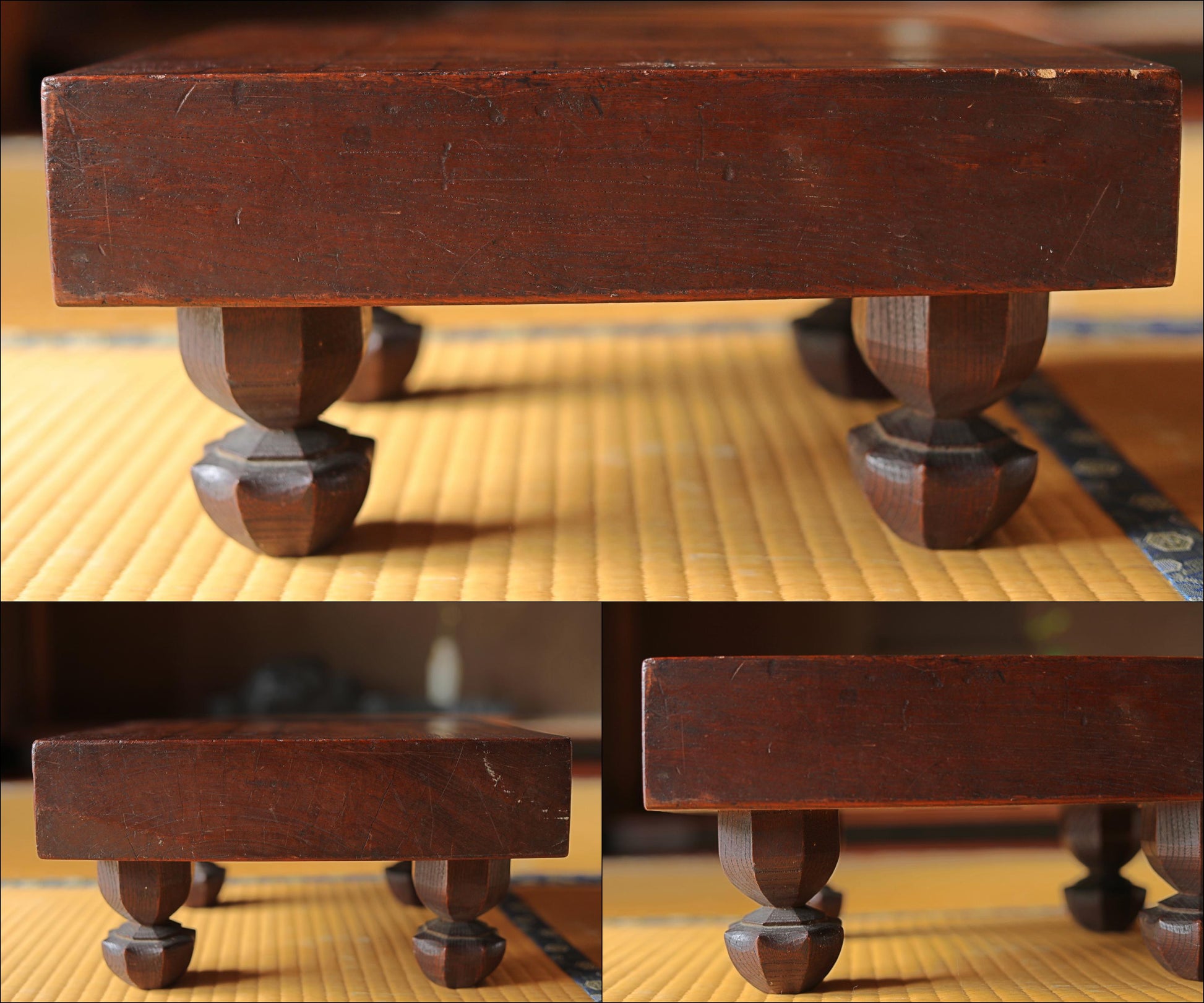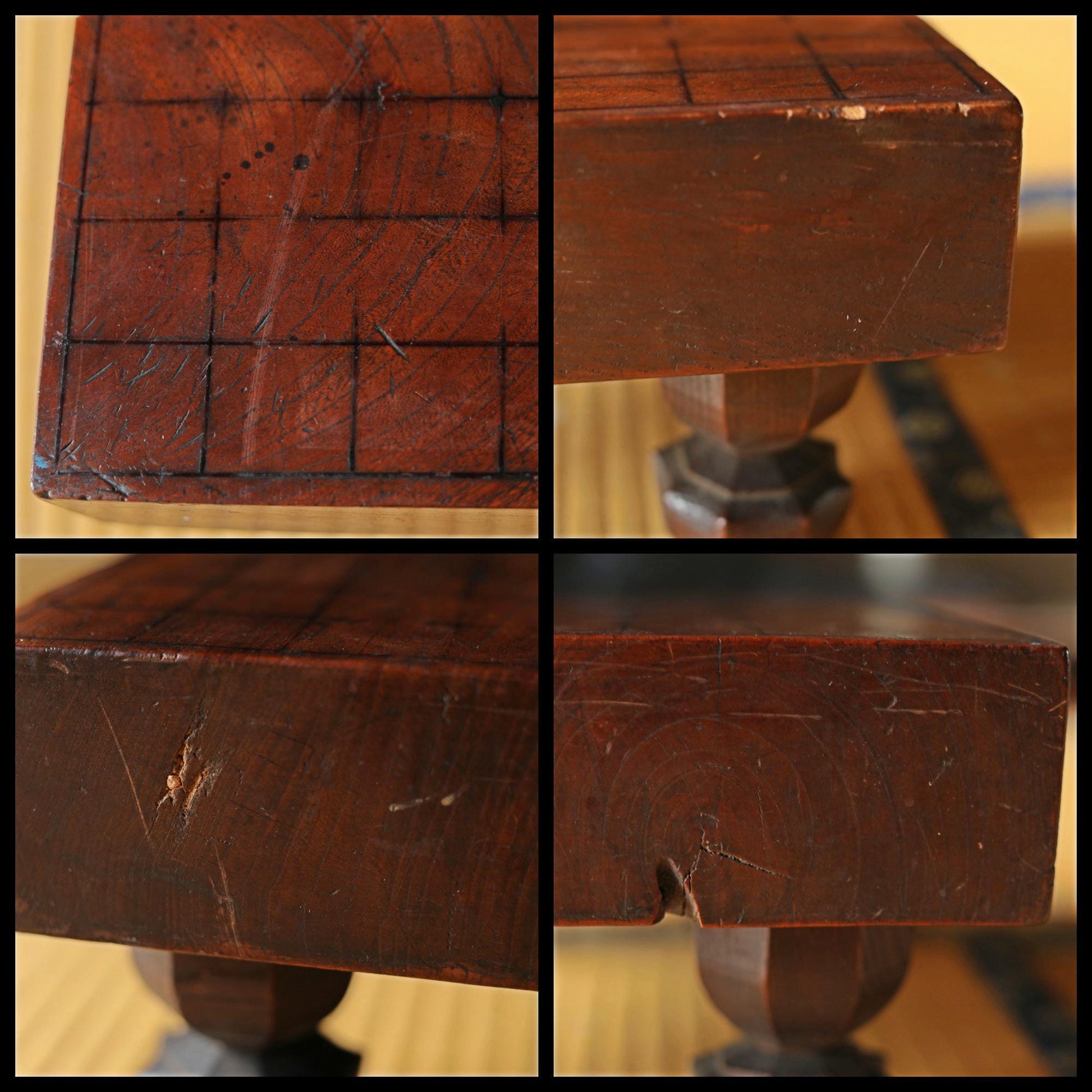 Japanese furniture antique full of set SHOGI board game playing table curved out of one wood with pieces and stand ready to play 1890s