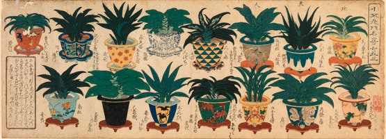 The most popular and expensive of all flower pots was the "Raku ware pot. Raku ware is widely known as tea bowls, and Raku-yaki pots are made from the same clay. The great advantage of this clay is that it is extremely lightweight and durable. Moreover, as long as it is not covered with a glaze, it has good air permeability, allowing plants to keep their roots in good condition.
