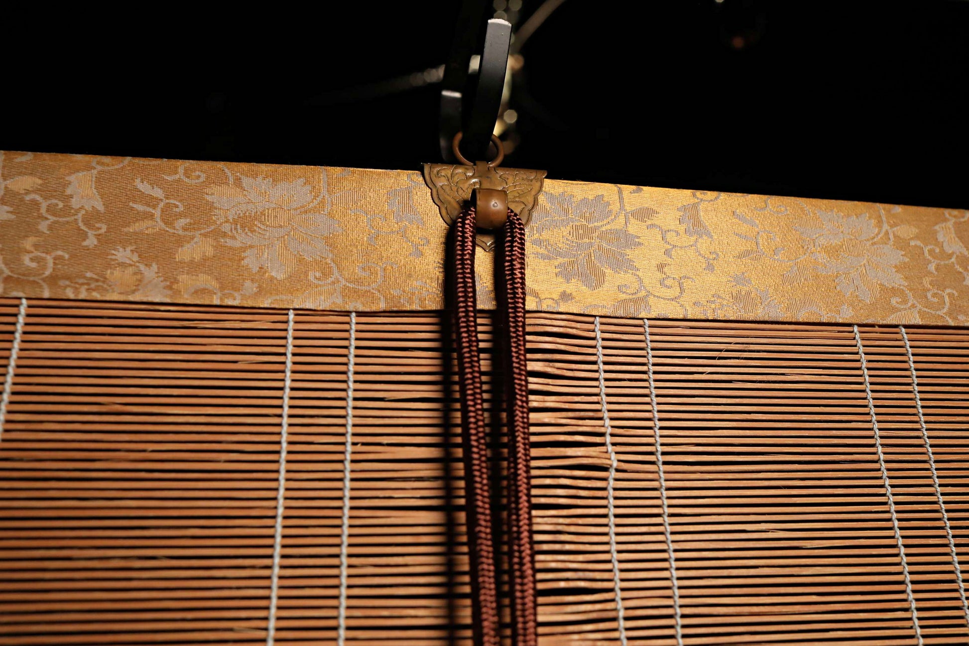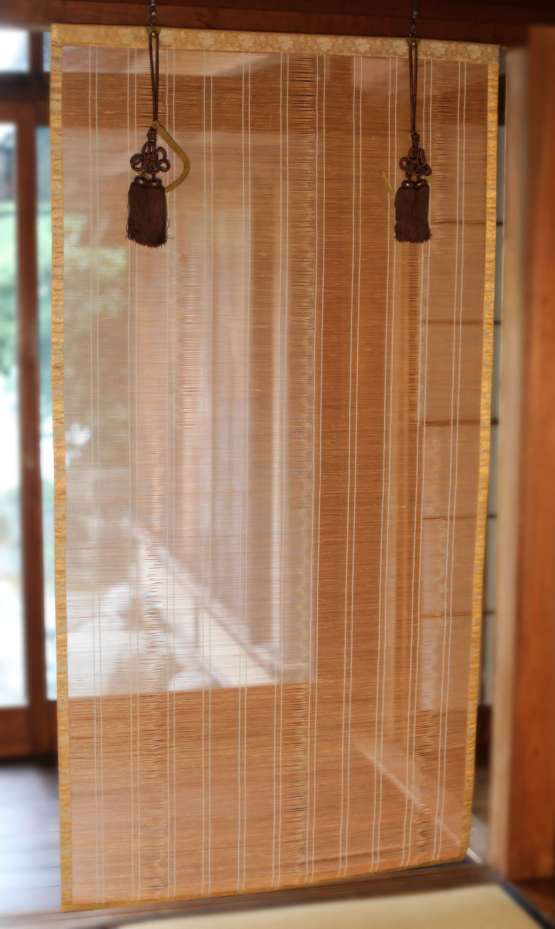 The screen is made of thinly split bamboo and other materials woven side by side with thread, and are used to divide a room or block out the sun.