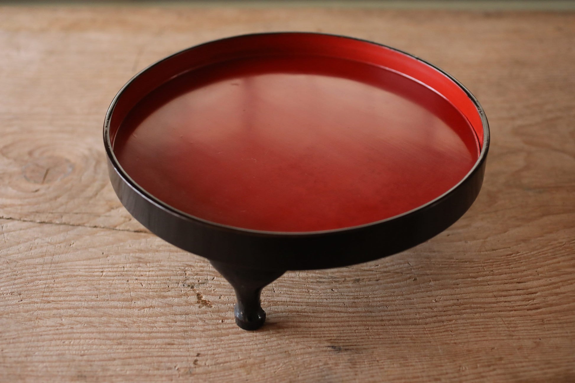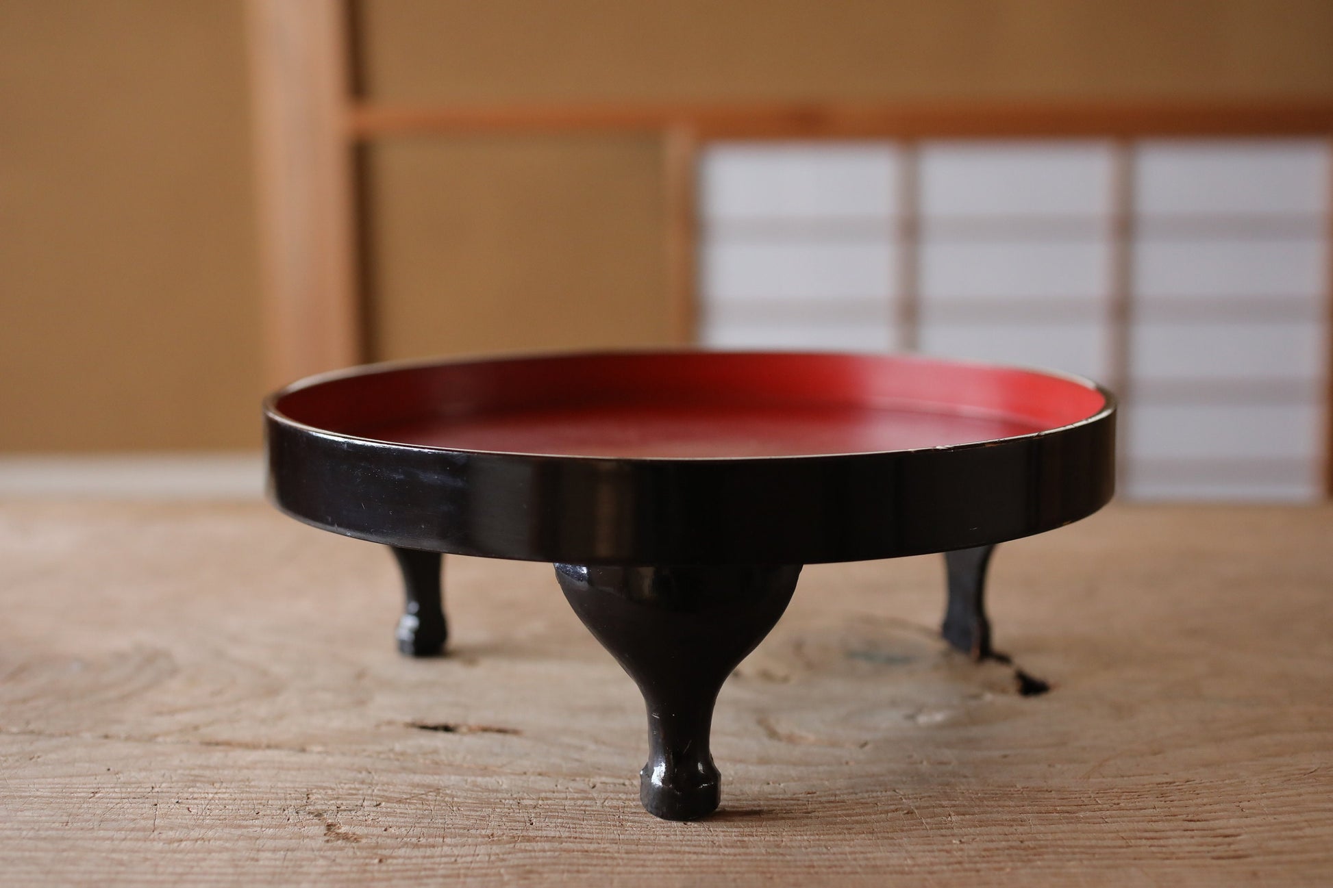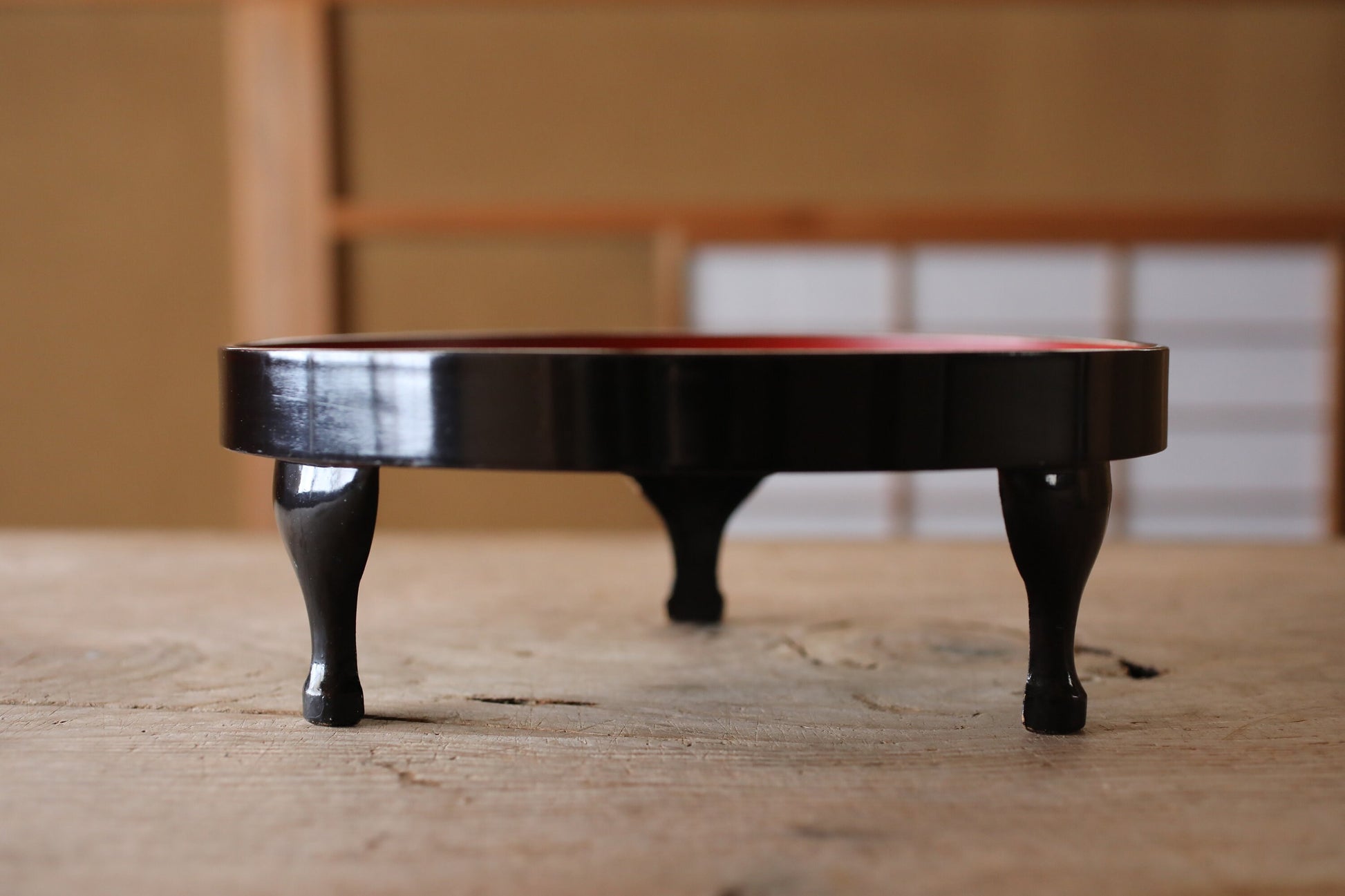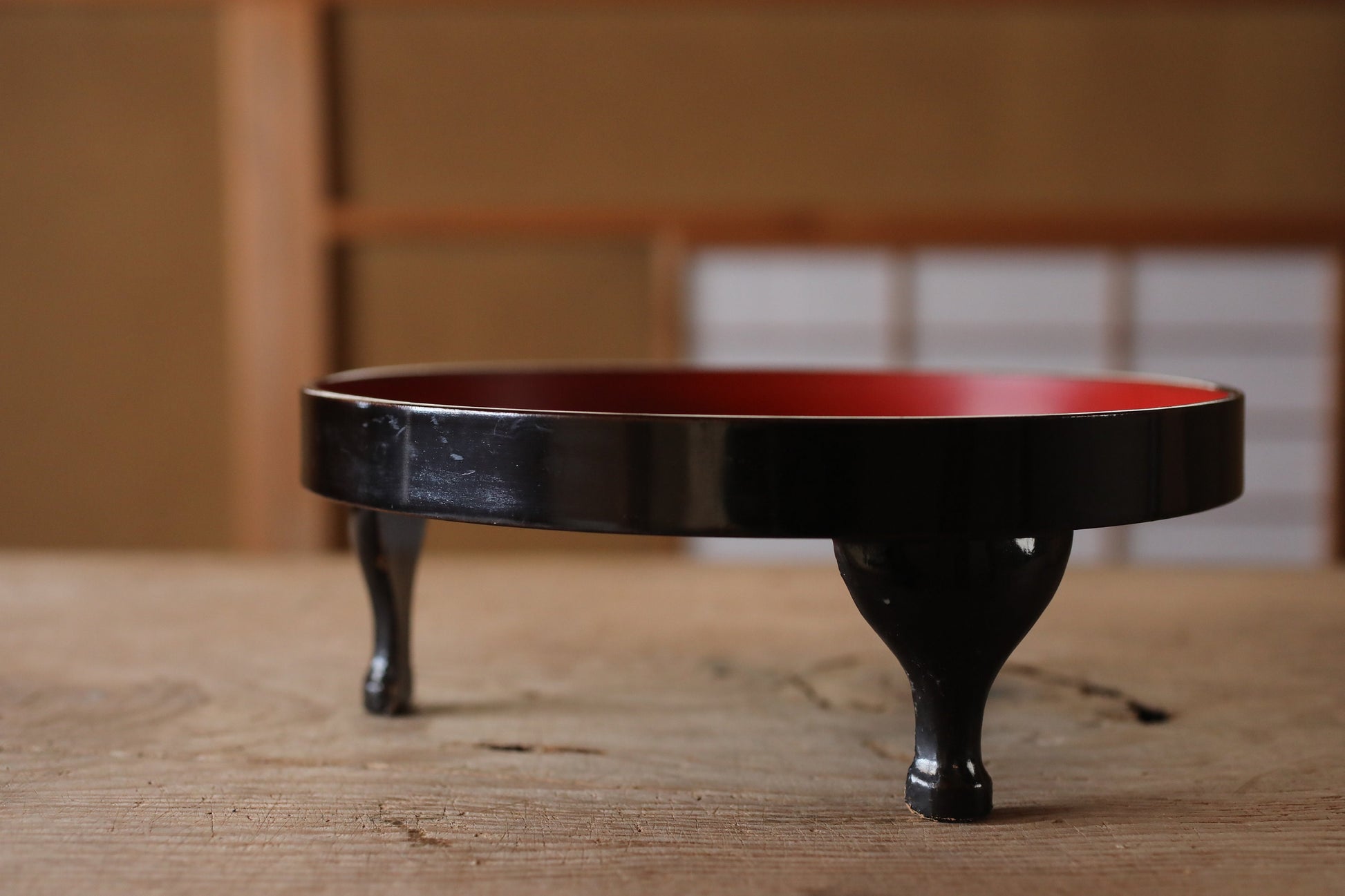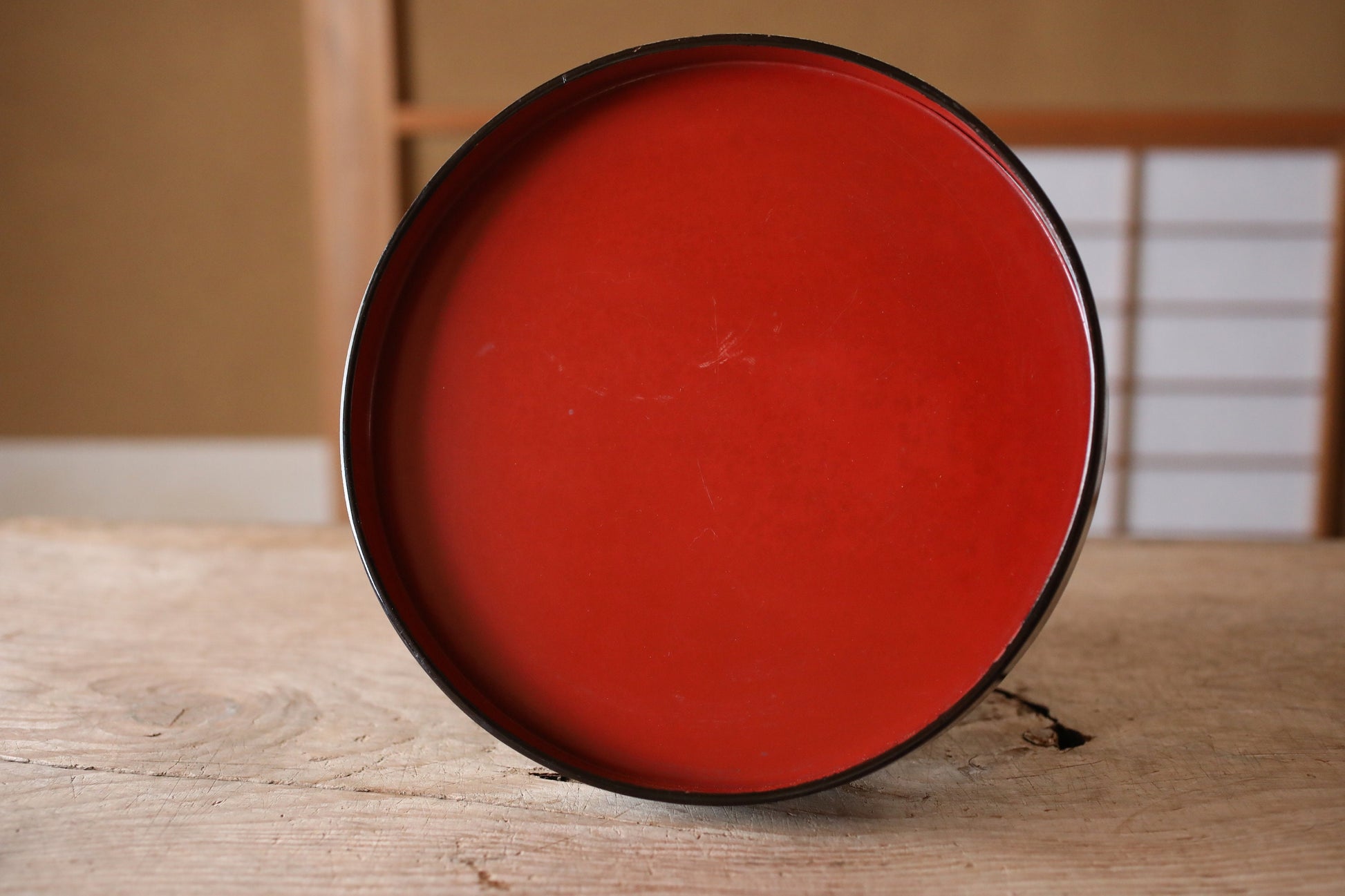 Japanese furniture URUSHI lacquer tray OBON, round shaped row table, red and black, wooden tableware Tea ceremony 3.9×10.8in/10×27.5cm