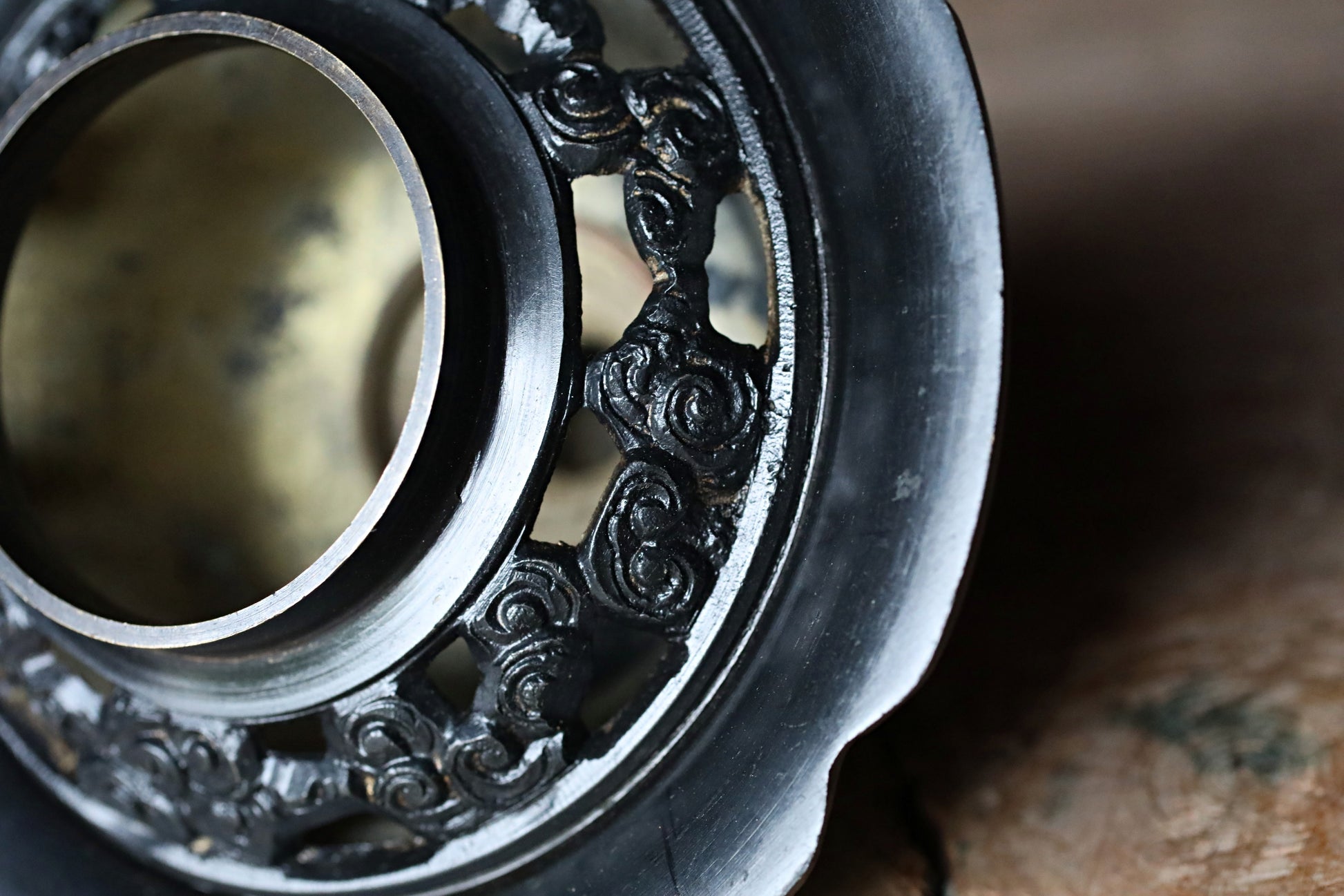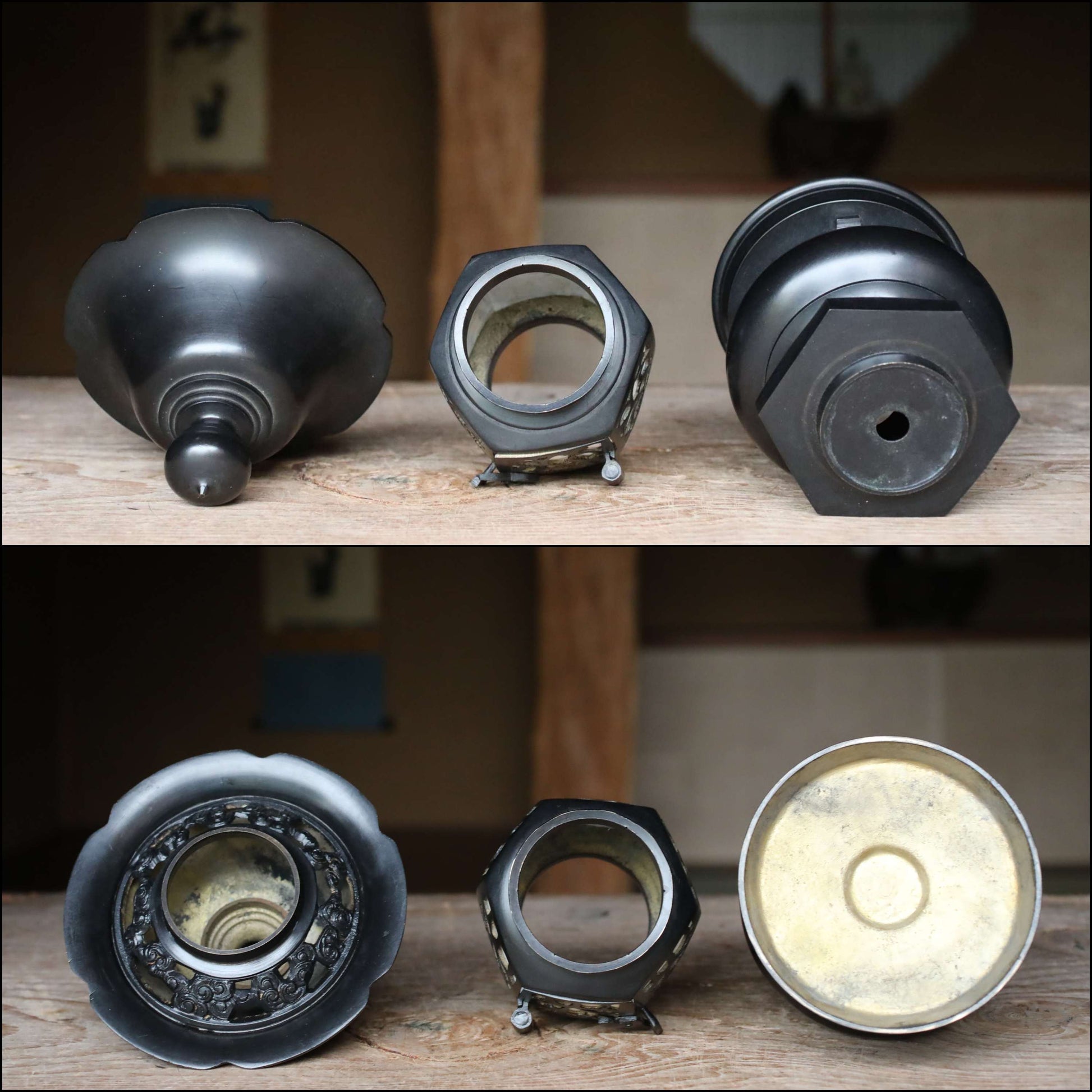 Japanese furniture vintage buddhist lantern made of bronze, metal hand craft openwork indirect lighting H15.4×W6.3in/H39×16cm