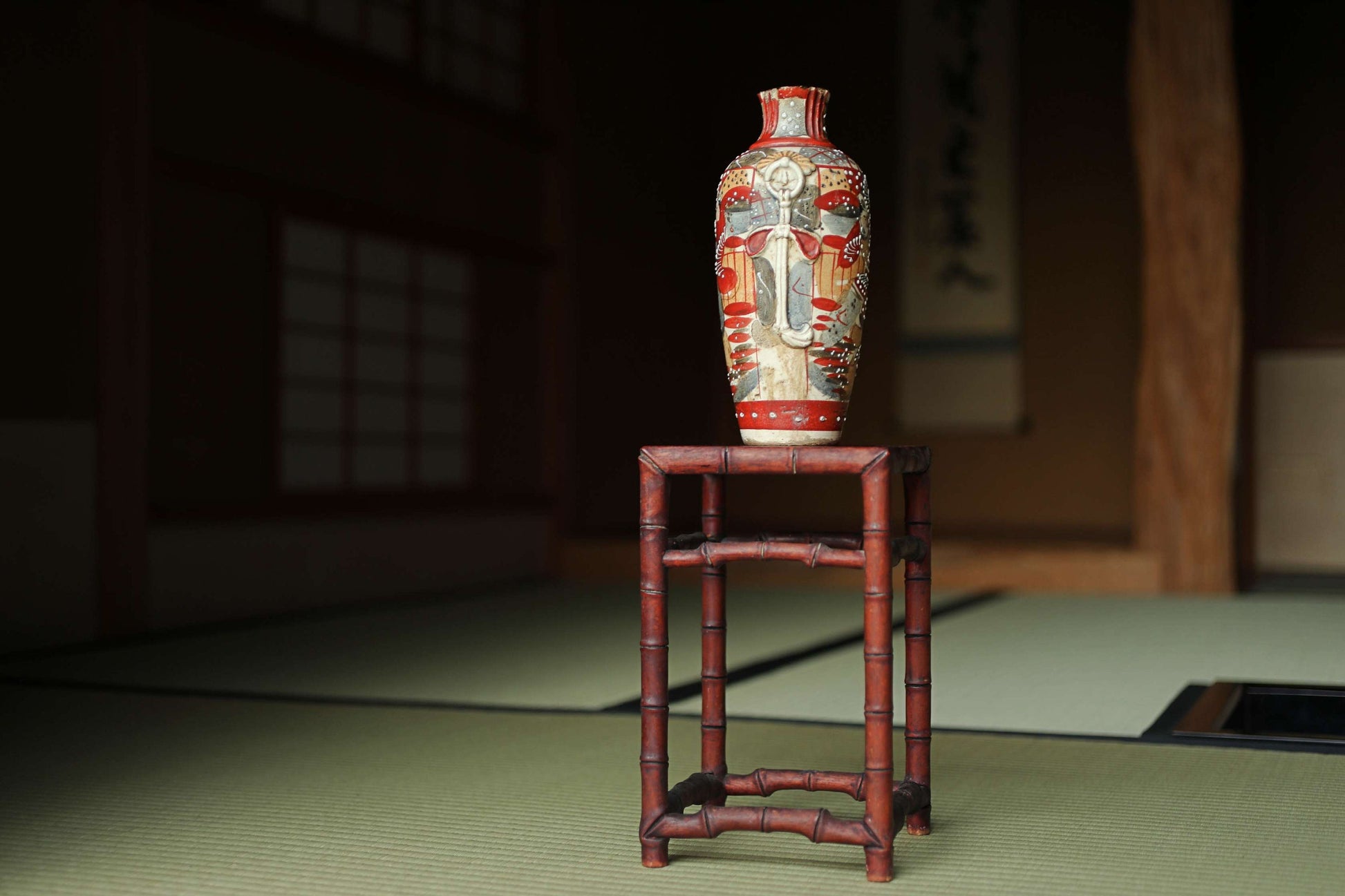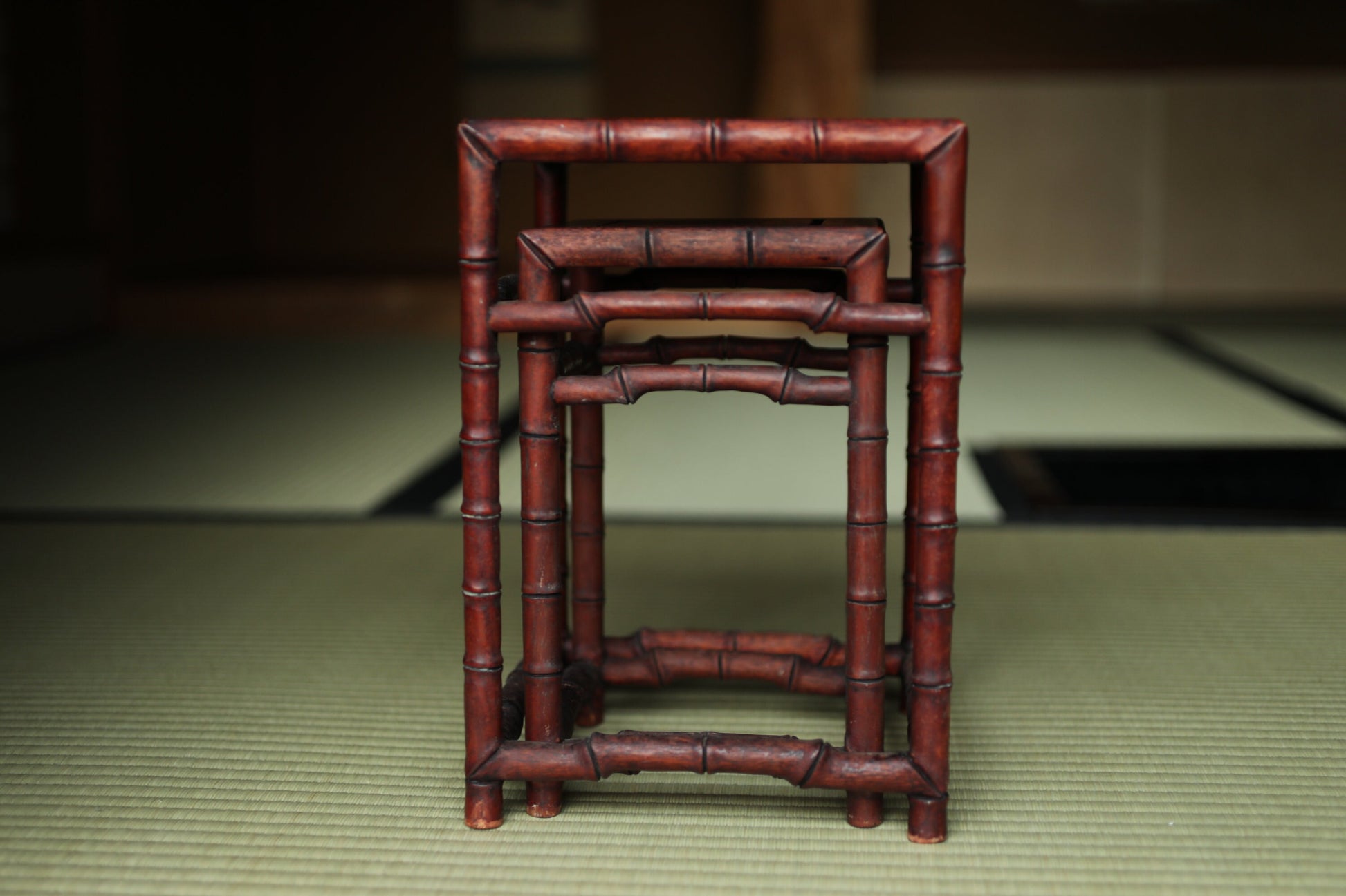 Japanese furniture Wooden Decoration Stand KARAKI bamboo designed pedestal for bonsai, vase, censer, suiseki H10.2in/26cm