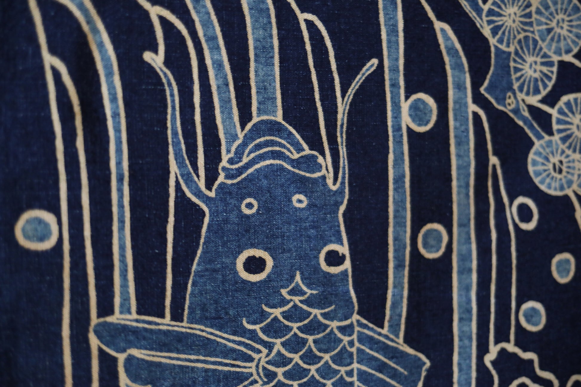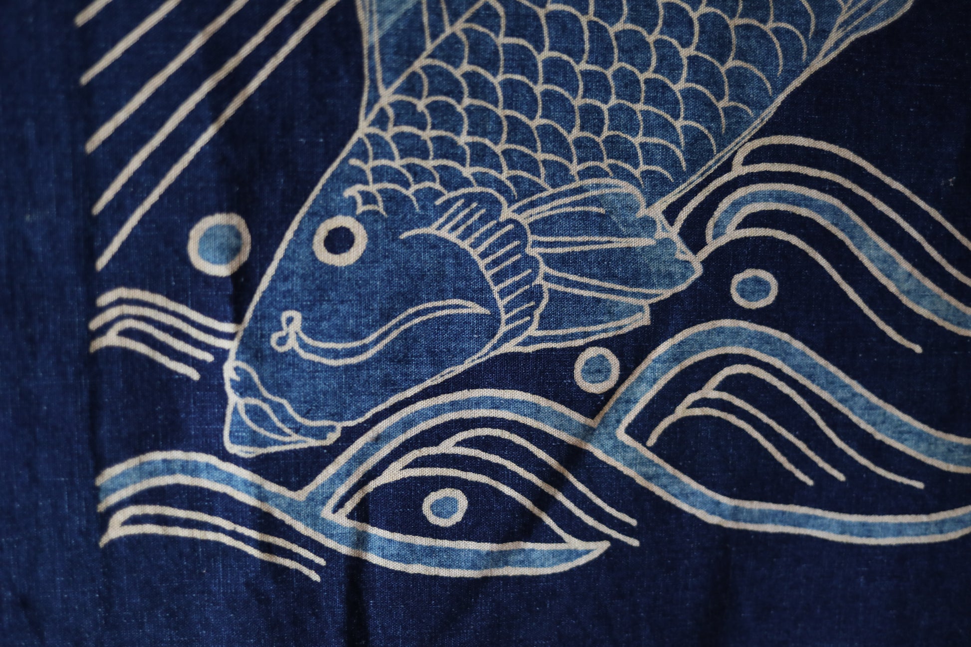 Japanese large wall drapery with Hannya carp KOI fish, dyed cloth 100% cotton, interior, wall decoration, NOREN H46.9×31.9in/H119×81cm