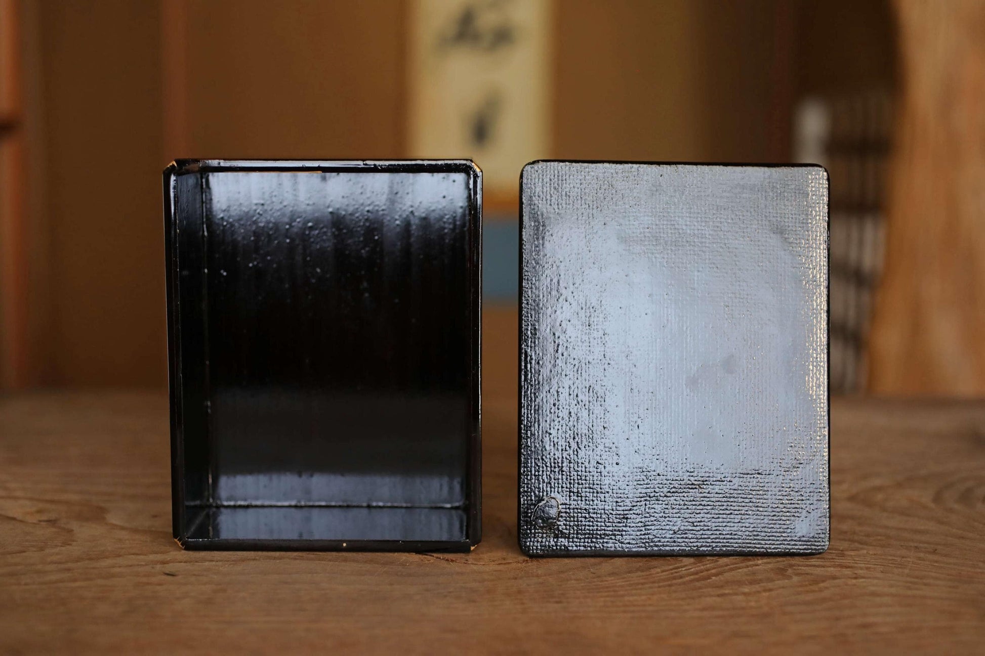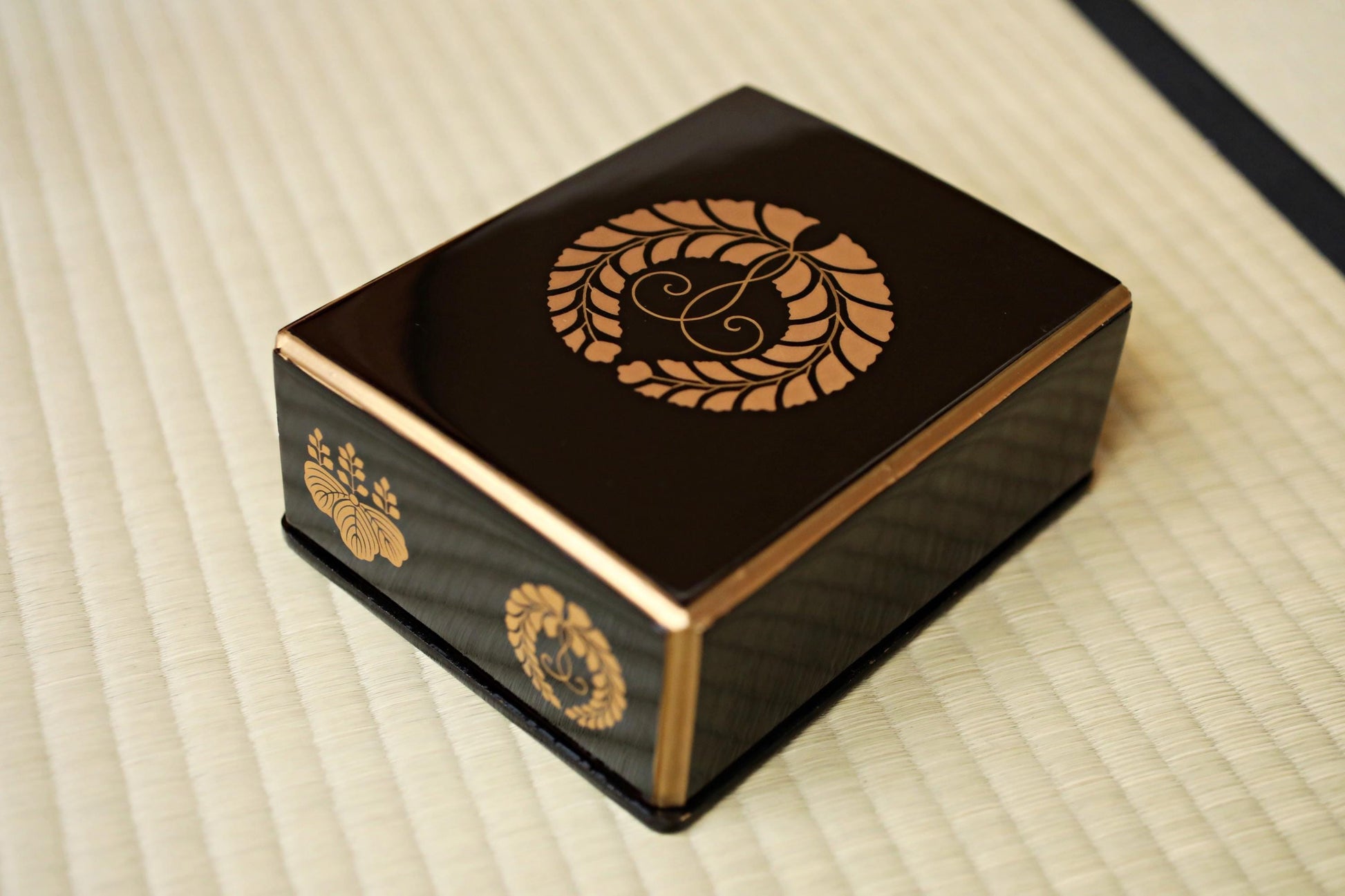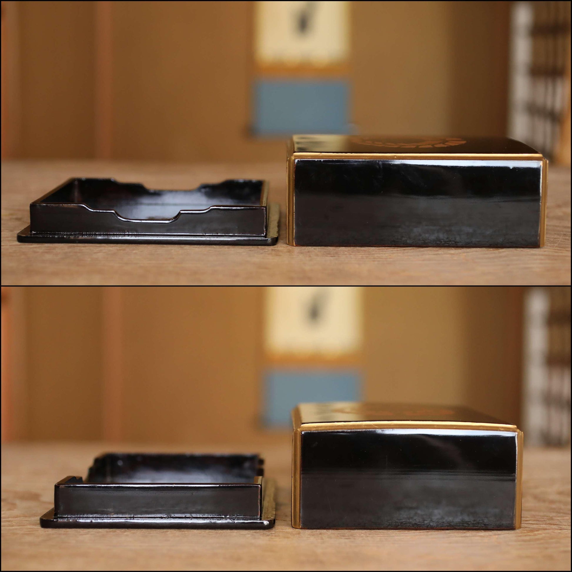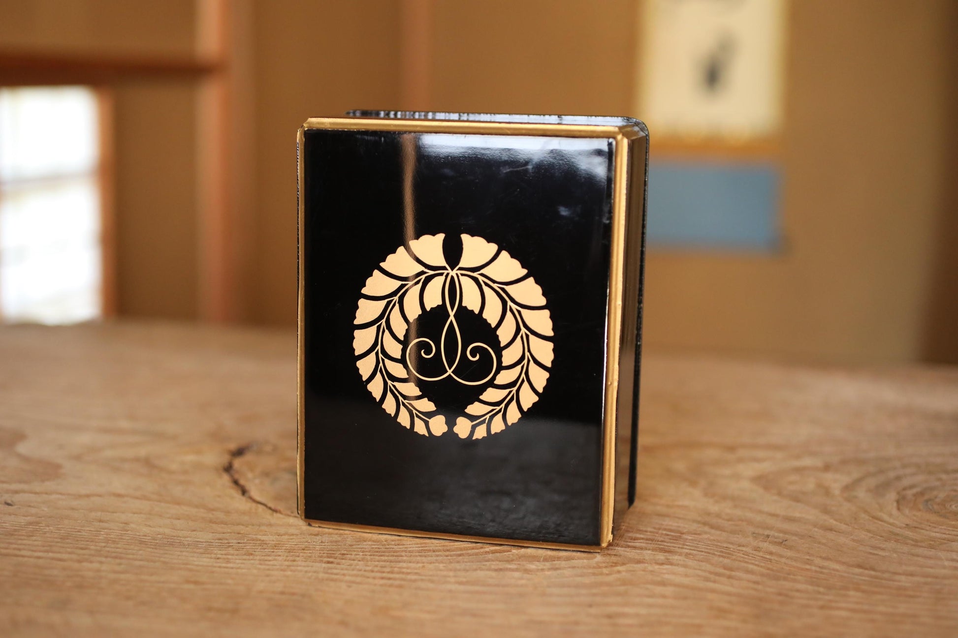 Japanese Makie Black Lacquer Gold wisteria SAMURAI crest wooden box URUSHI Maki-e, lacquer furniture buddhist alter 6.7×5.3in/17×13.5cm