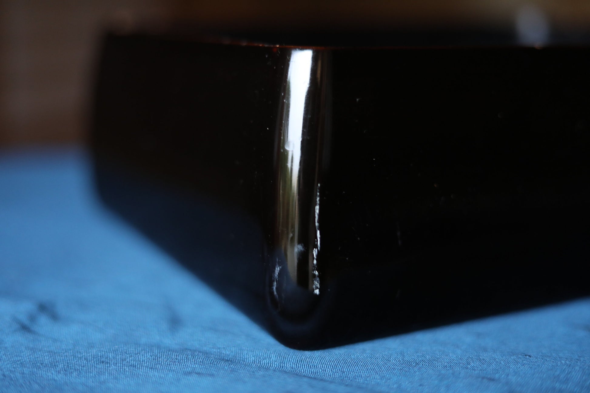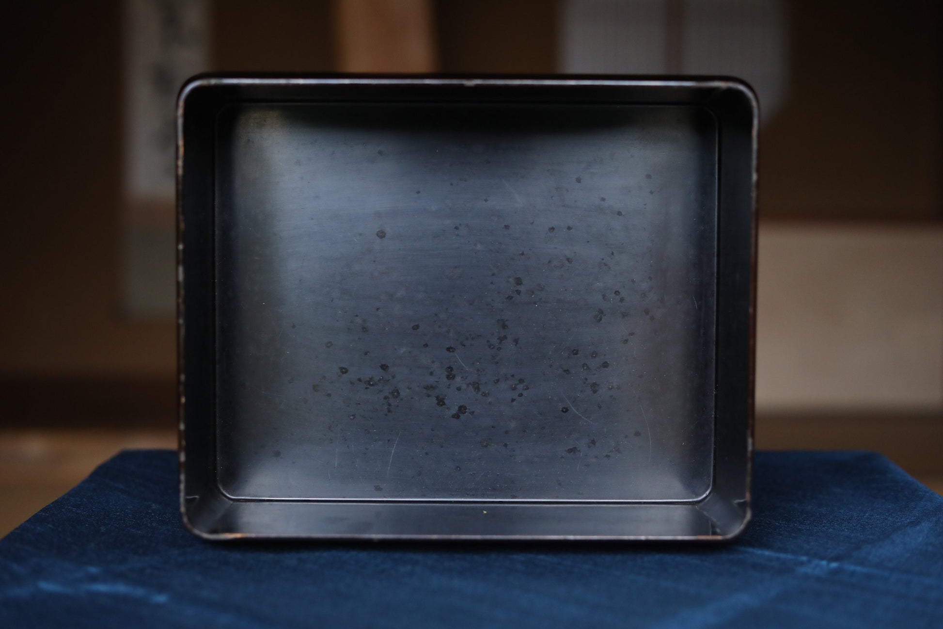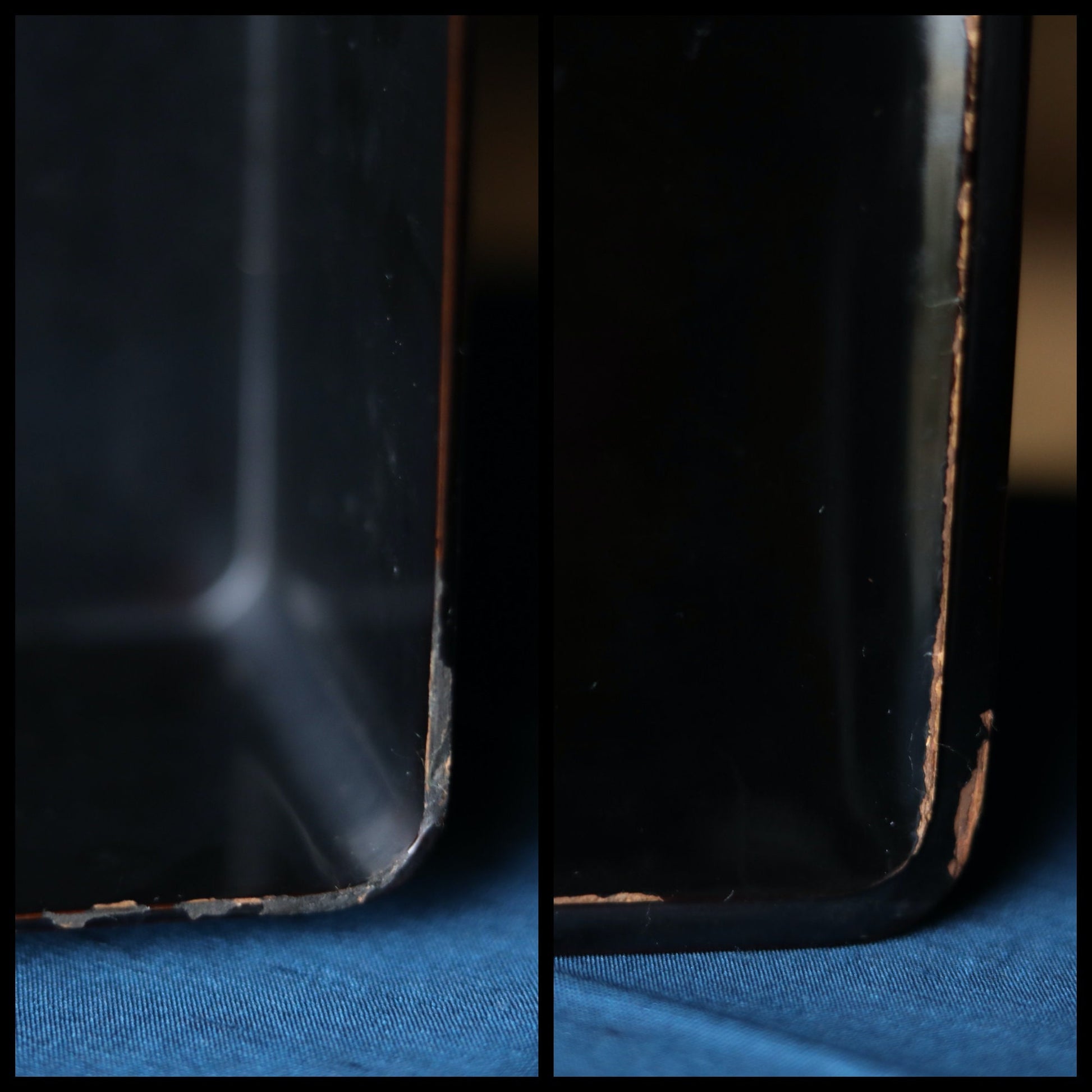 It is in a good condition, but there are small lacquer peeling and crack on edges.