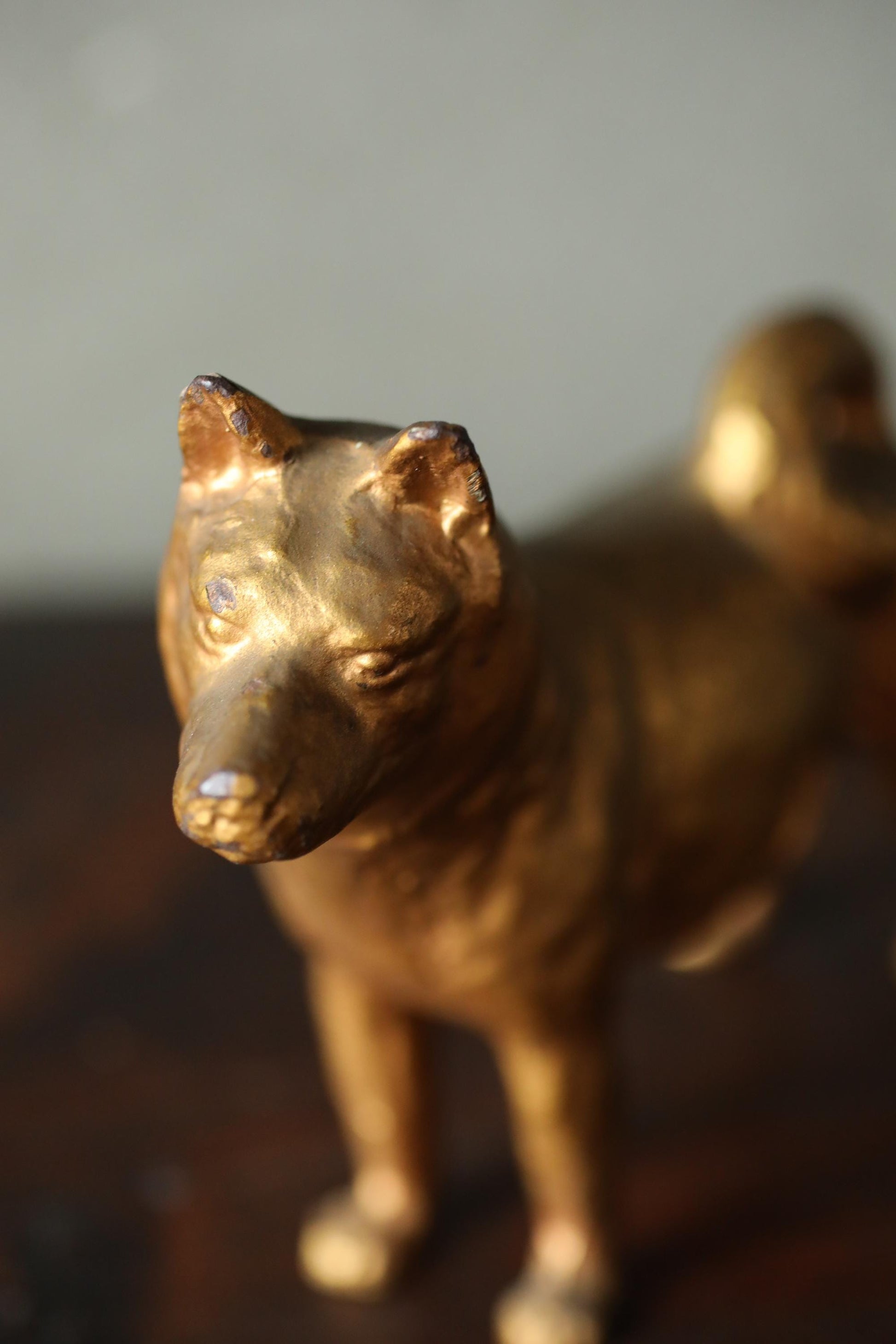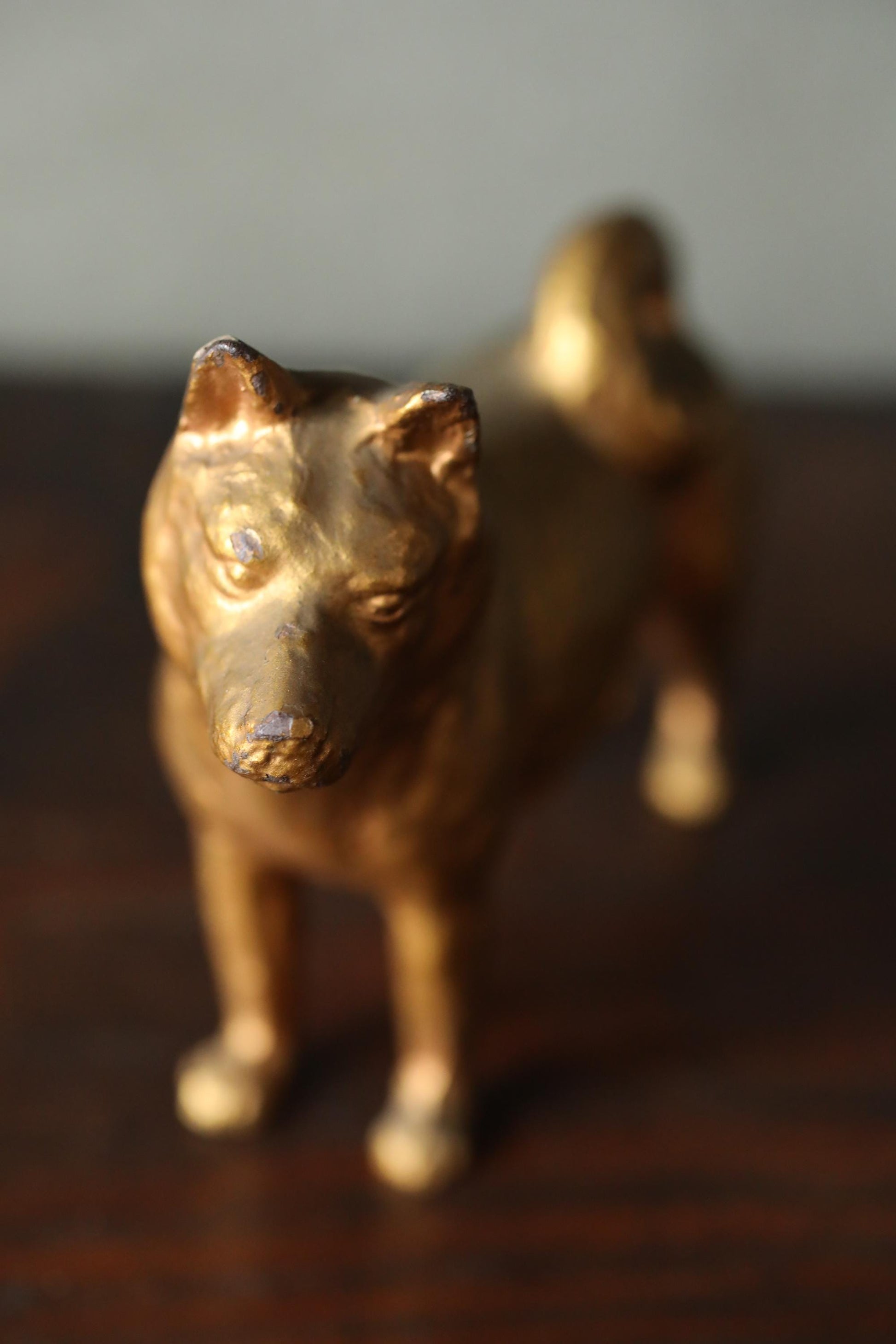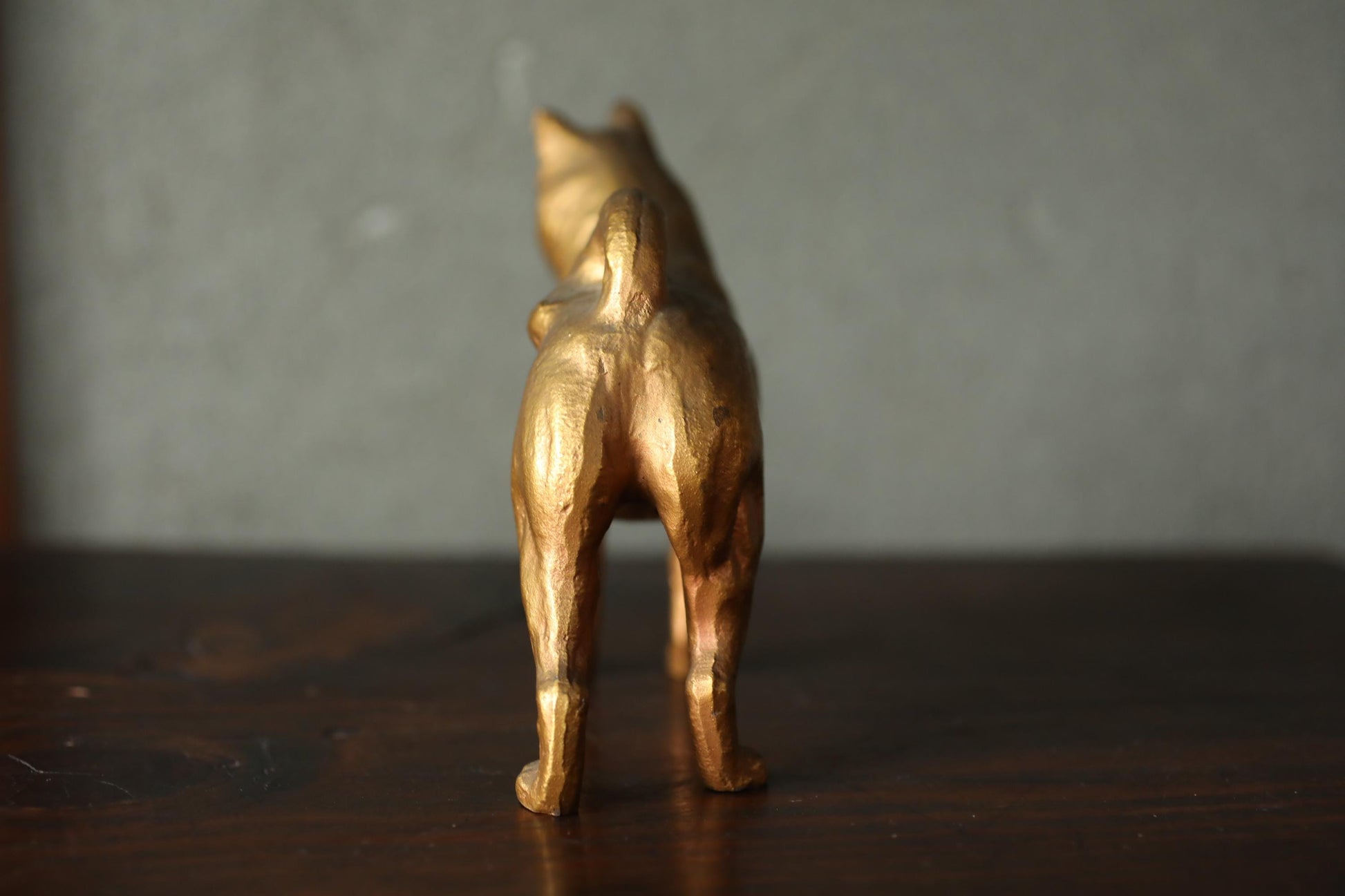 Japanese metal craft animals SHIBAINU DOG doll gold color made of metal ornament H5.9×7.1in/H15×18cm