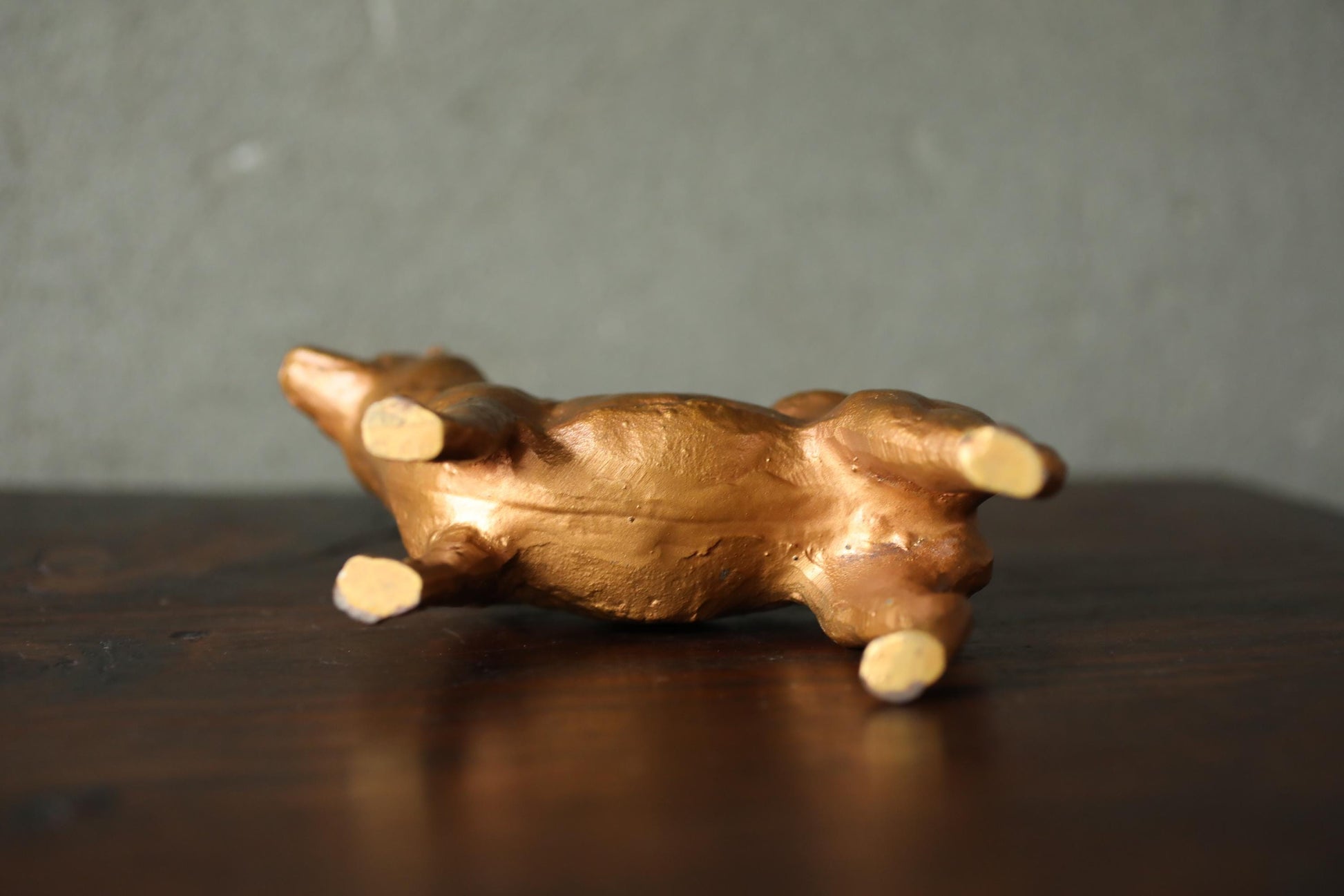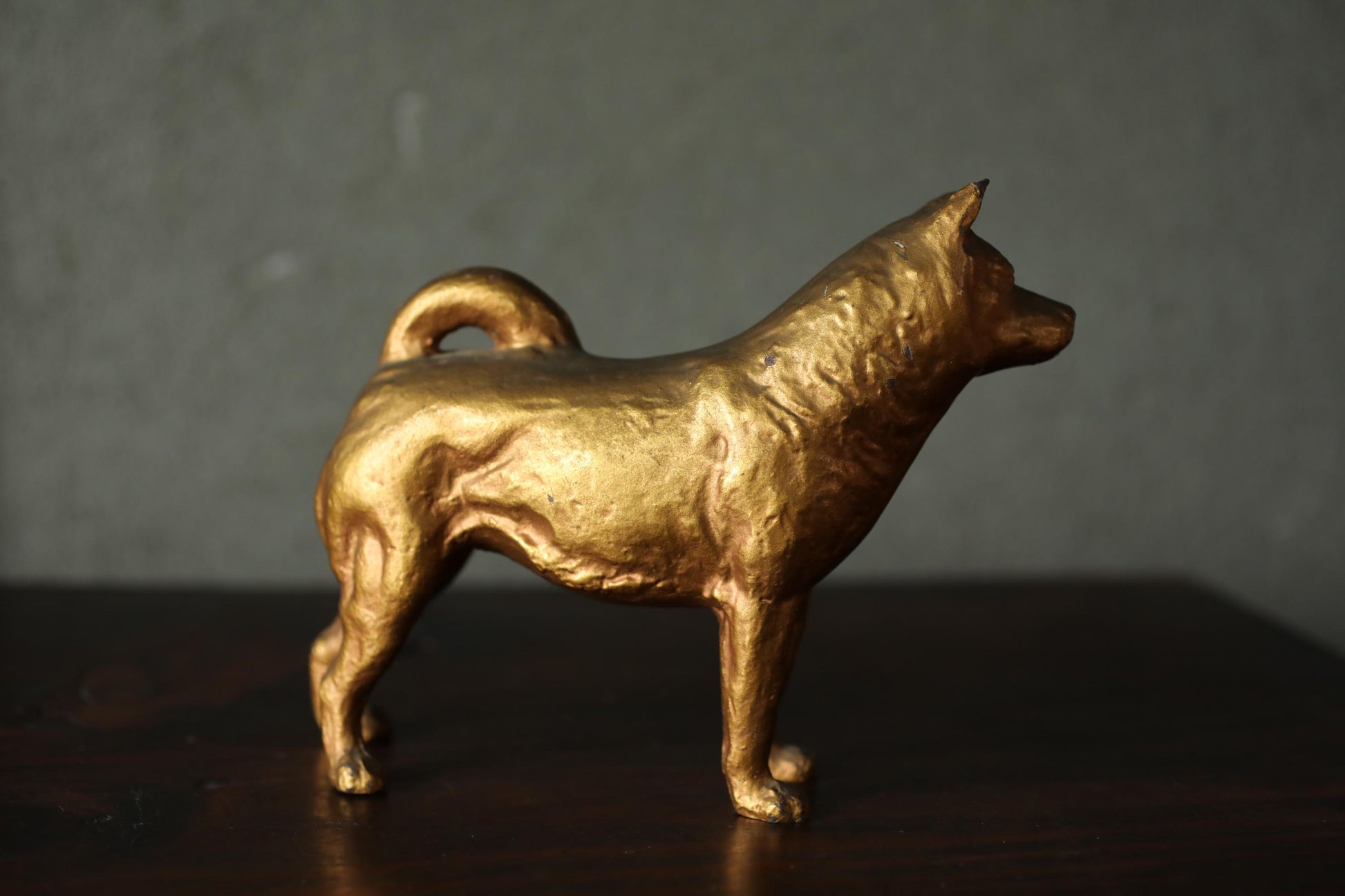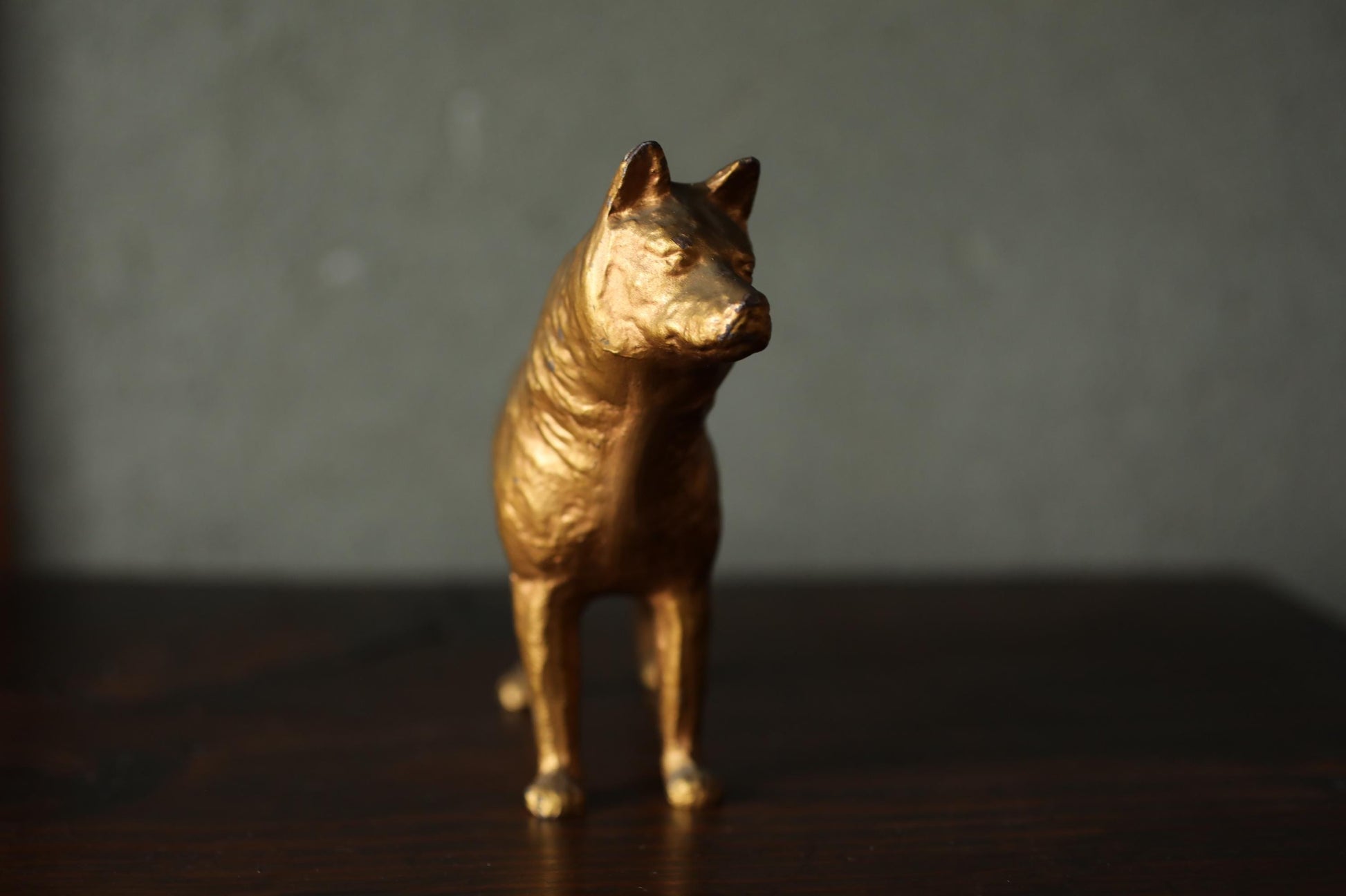 Japanese metal craft animals SHIBAINU DOG doll gold color made of metal ornament H5.9×7.1in/H15×18cm