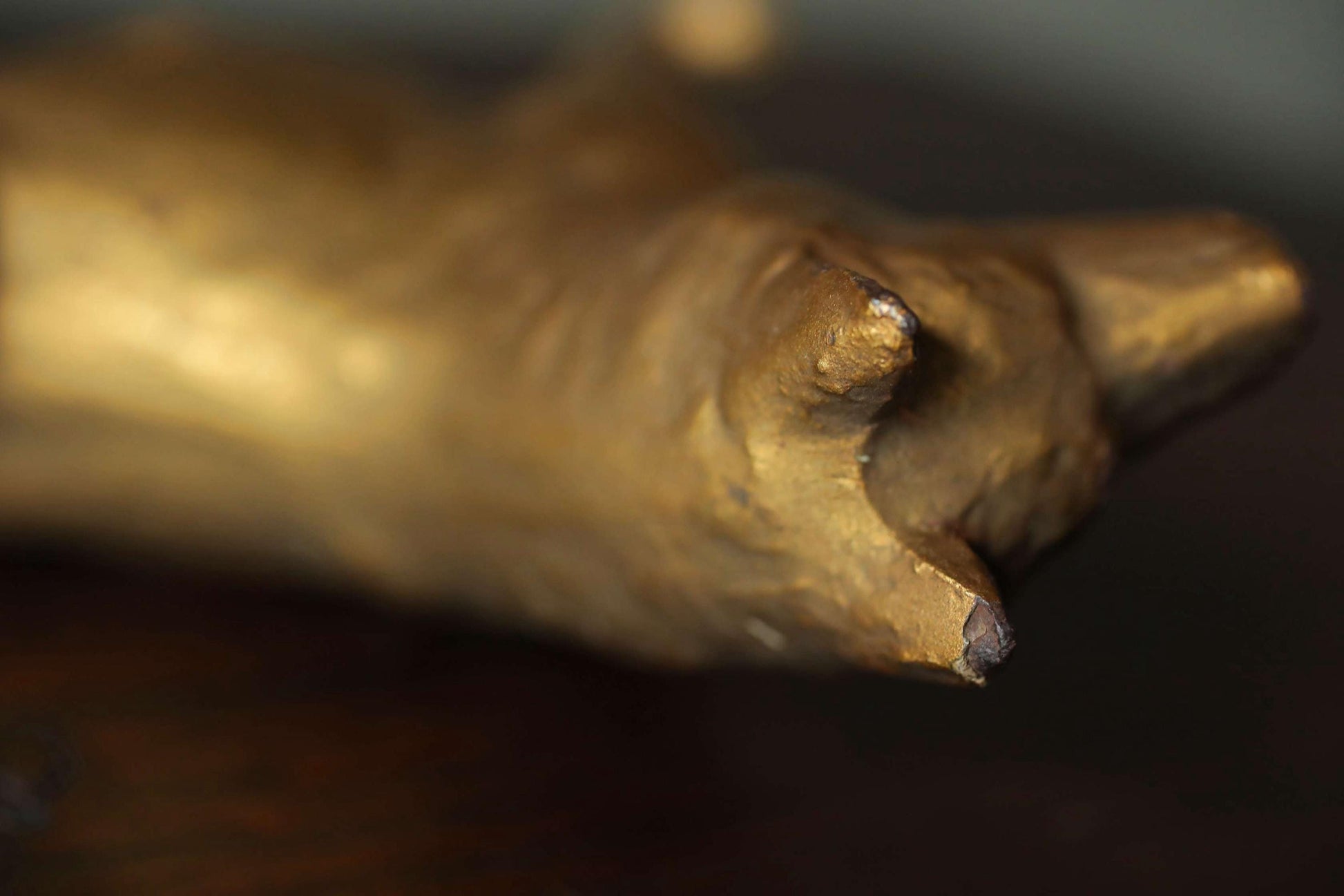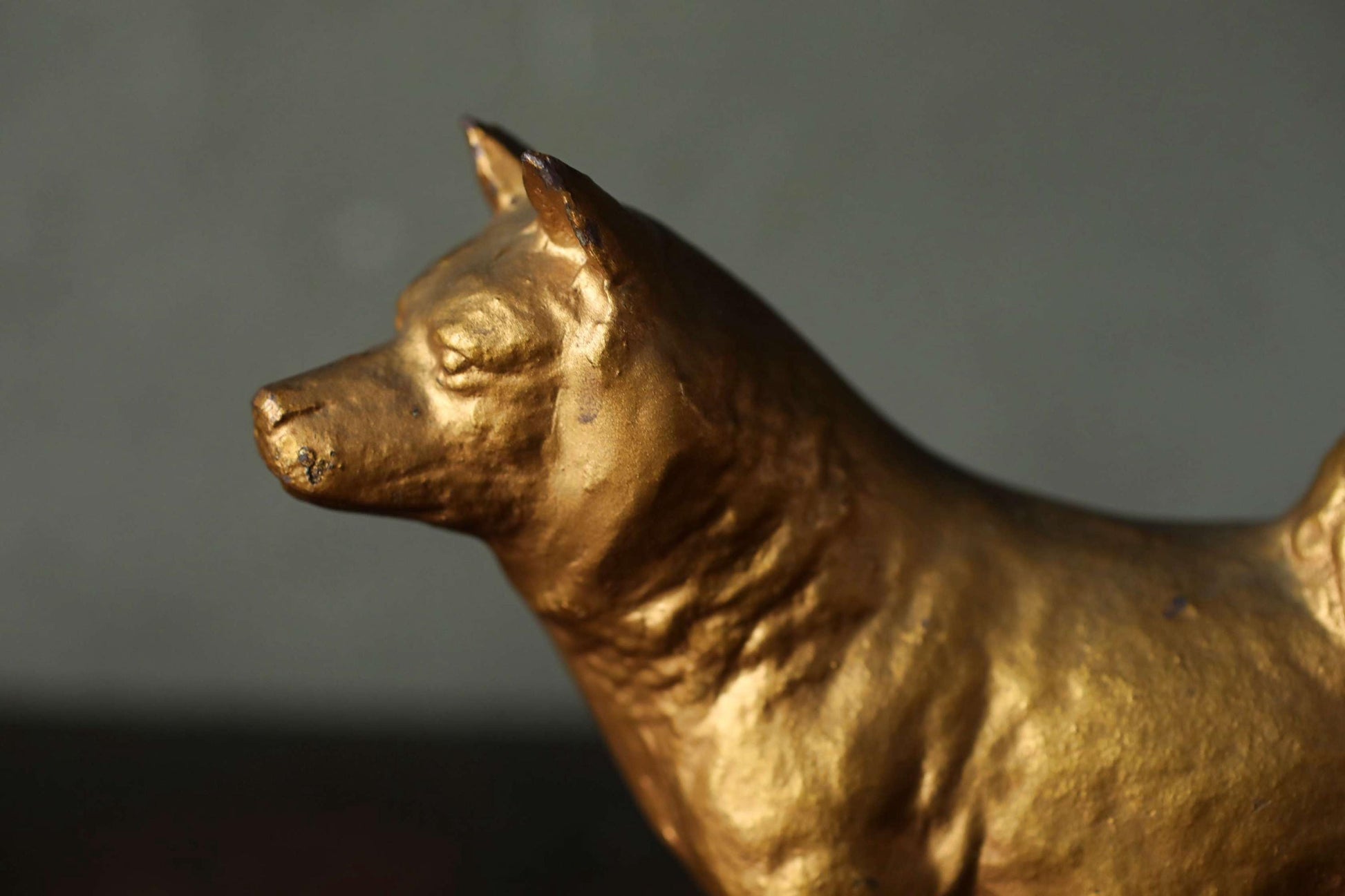 Japanese metal craft animals SHIBAINU DOG doll gold color made of metal ornament H5.9×7.1in/H15×18cm.