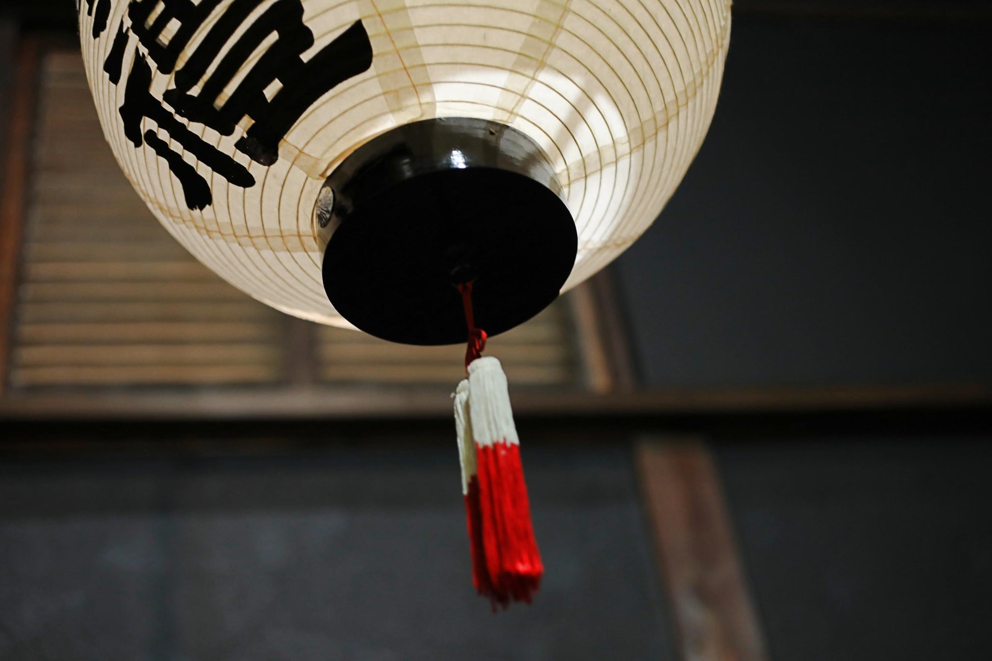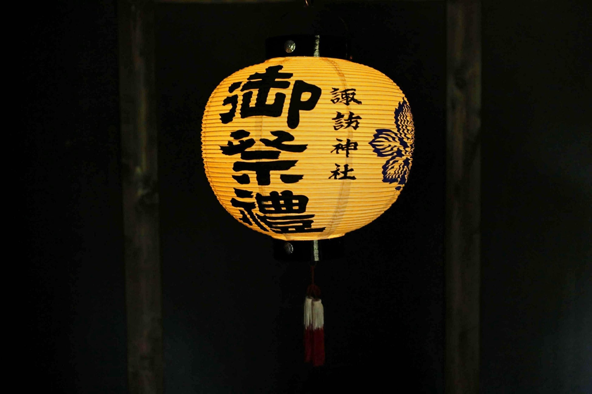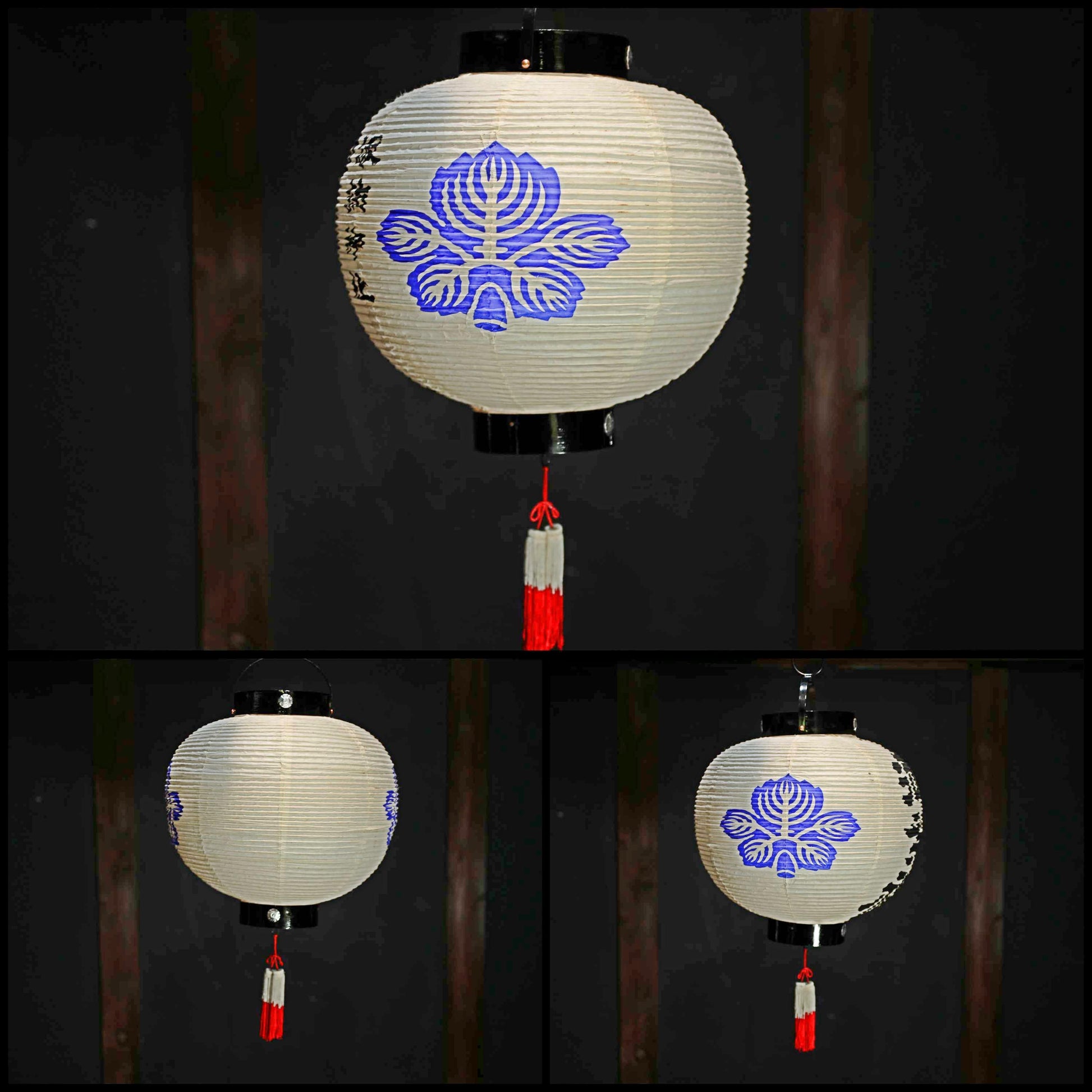 This paper and wood lantern has "御祭禮Gosaire" written in Kanji characters on the front. The word 祭matsuri (festival) in these characters means the act (儀式ritual) of worshipping gods, Buddha, and ancestors for thanksgiving, prayer, and consolation. Offerings and other things are offered. These lanterns are used for this purpose.