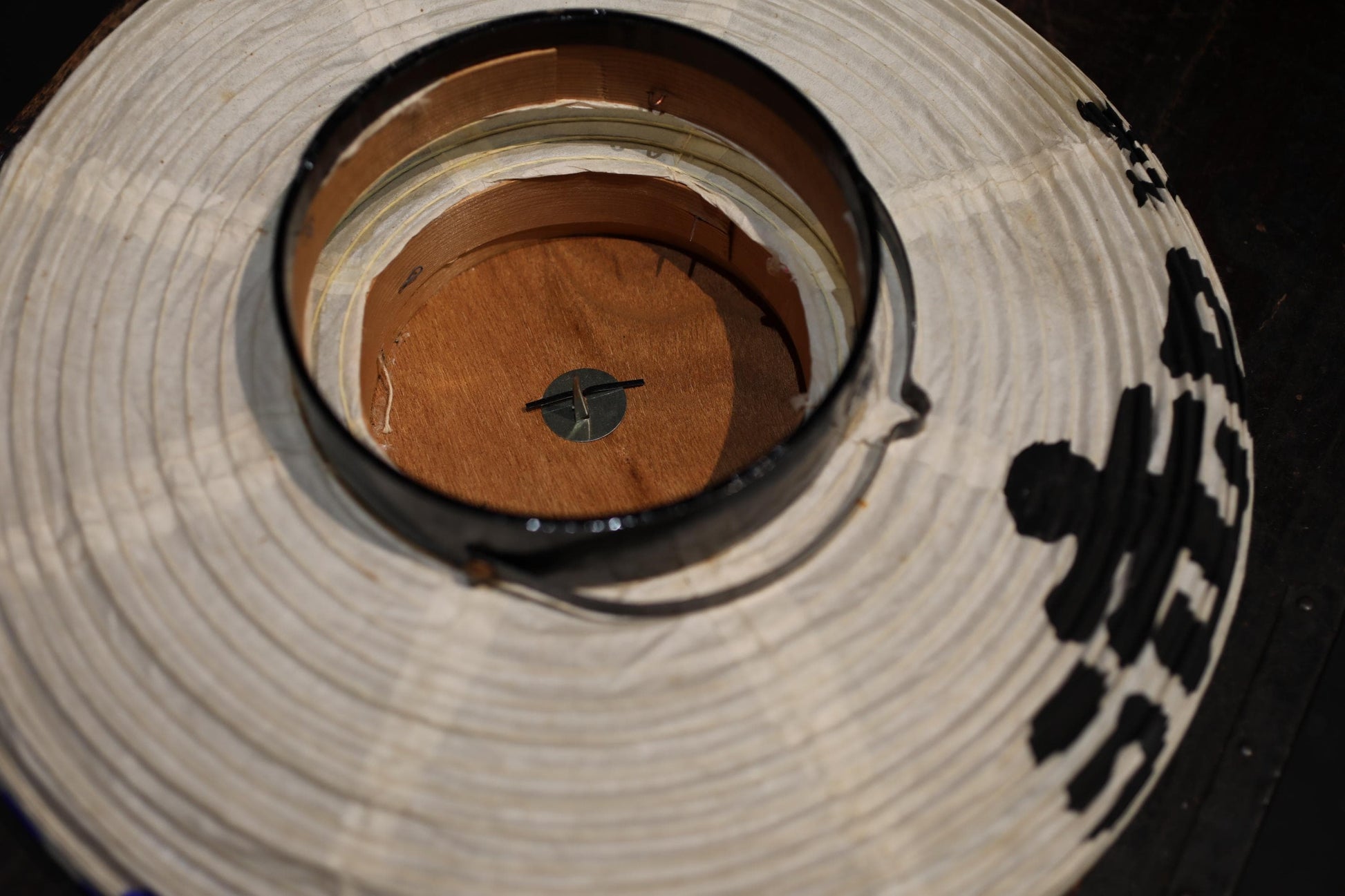 Japanese old hanging paper lantern Candle holder with the shrine name "chouchin"Kanji 御祭禮thanksgiving, prayer calligraphy W14.2in/W36cm.