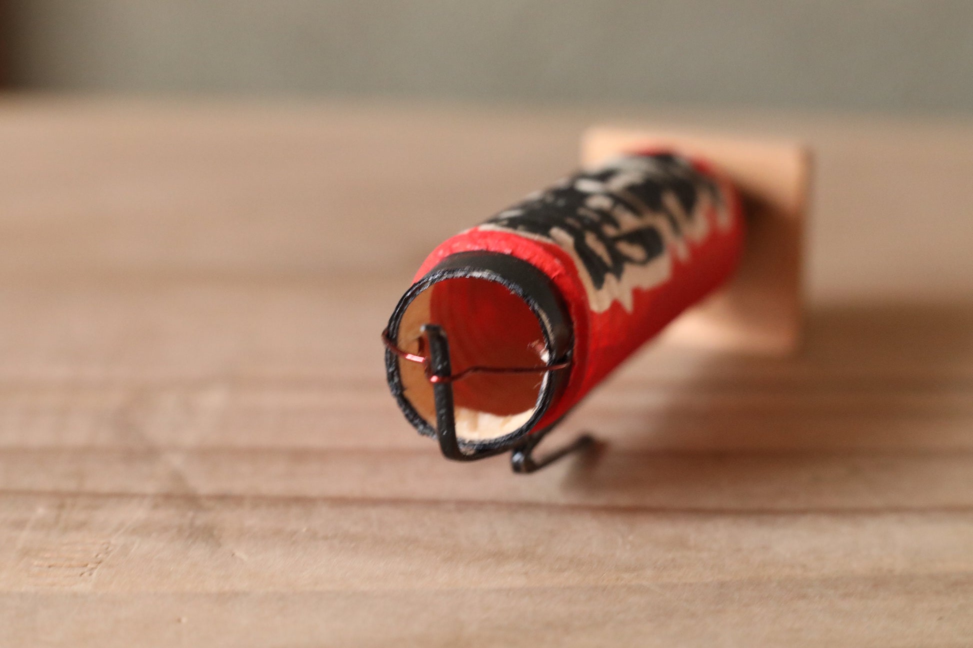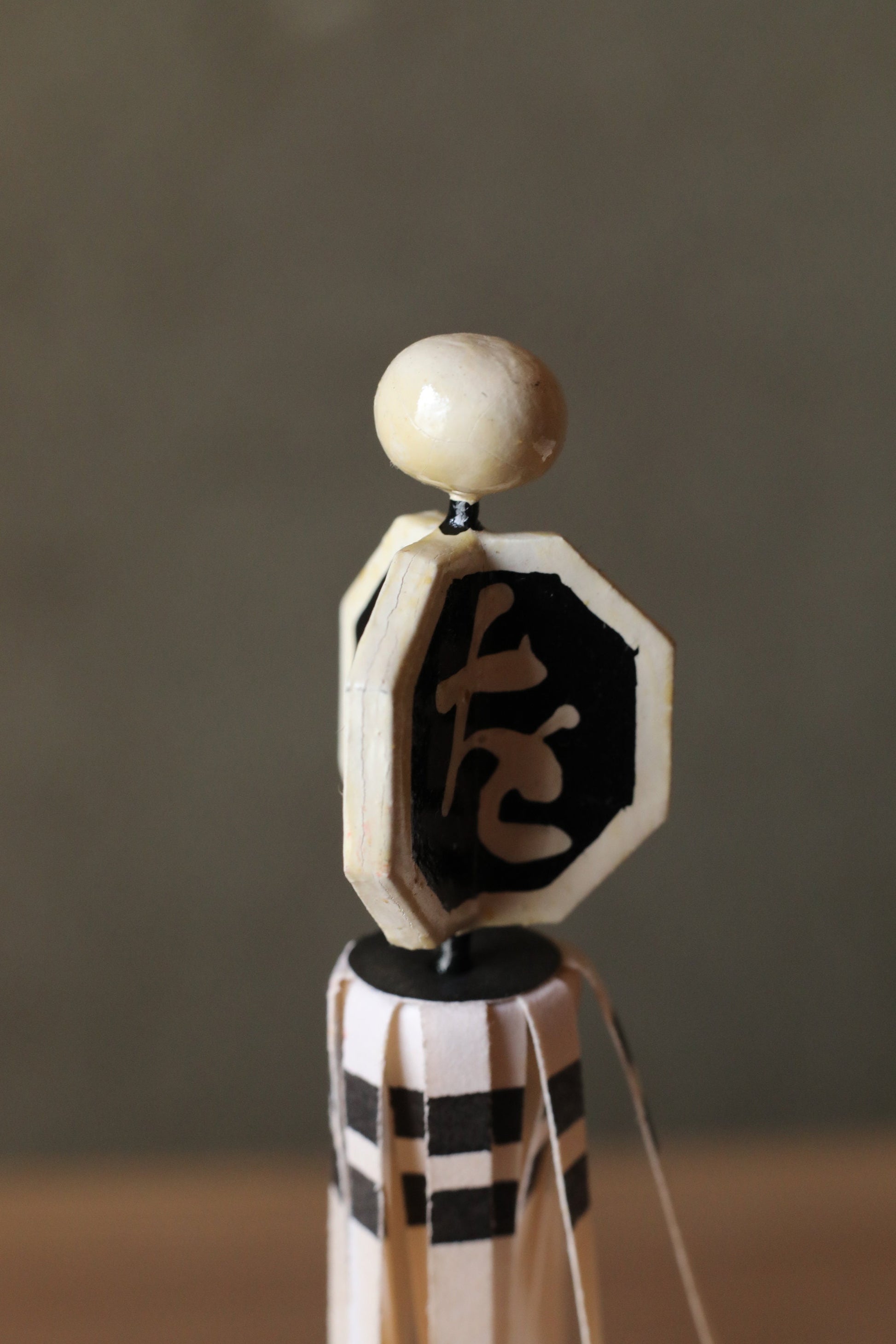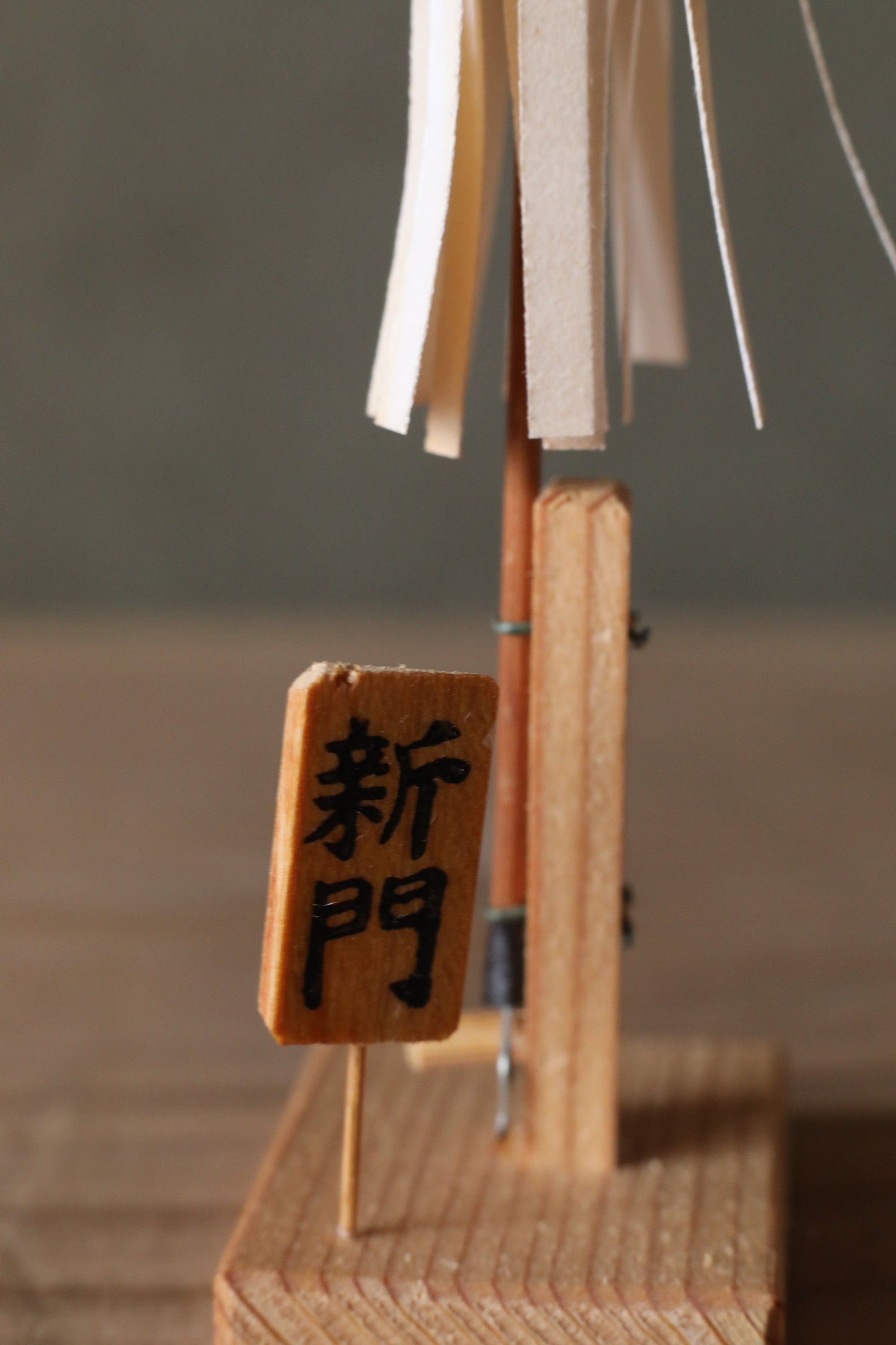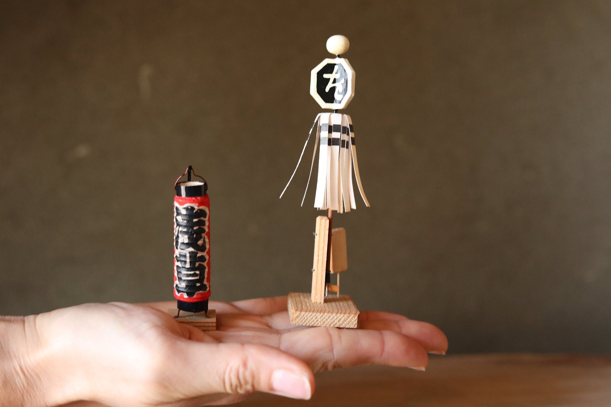 Japanese old miniature toy set Chochin Lanterns and firefighter decorations with Kanji calligraphy made of wood and paper 4.6×1.1in