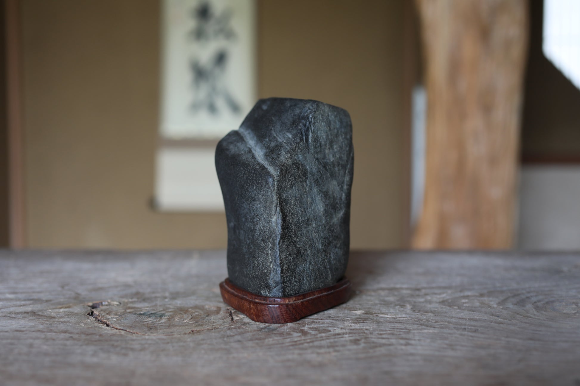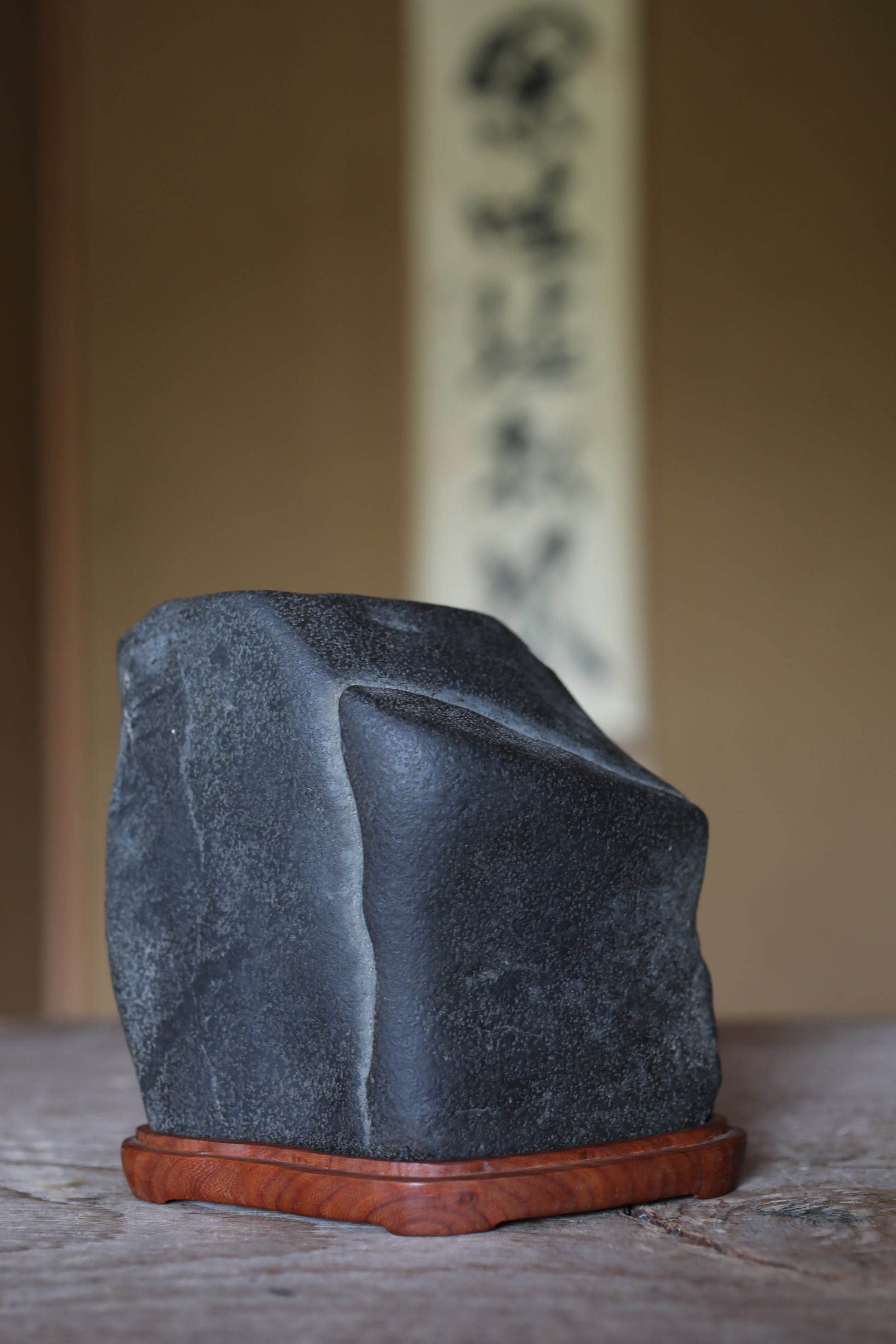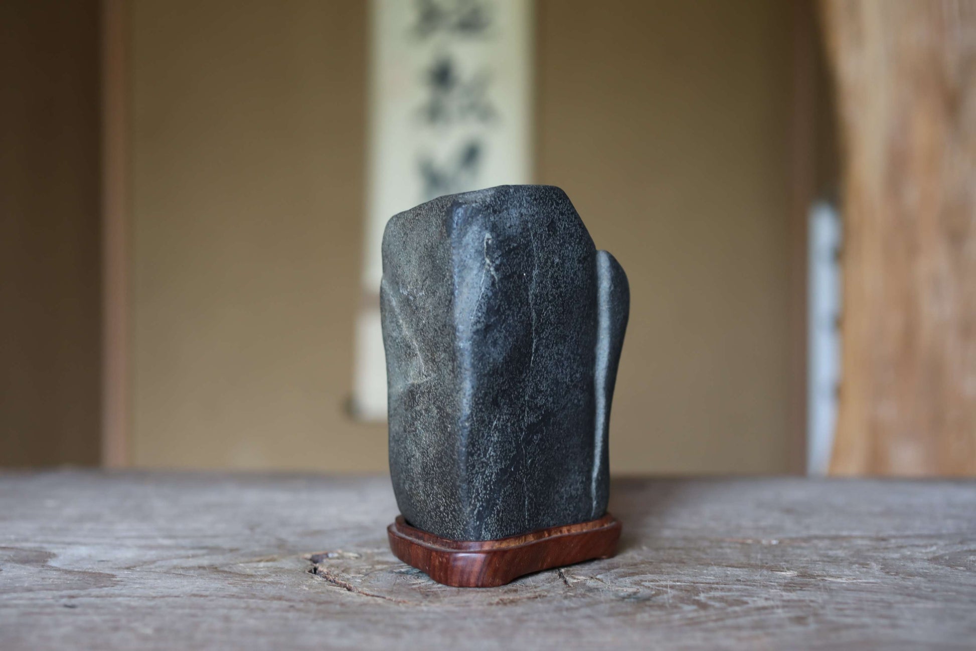Japanese old "SUISEKI" scholars stone, indoor viewing stone, Seta-gawa stone, with a hand carved pedestal H6.1xW6.3in/15.5x16cm
