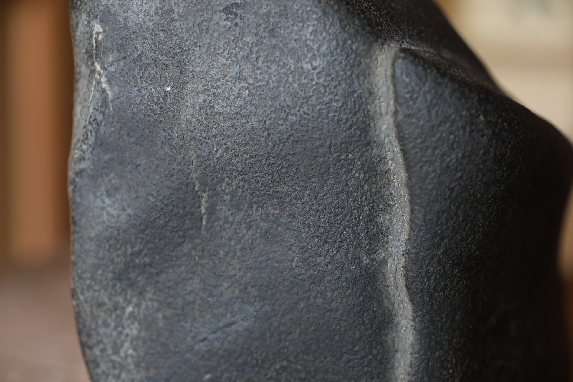 The allure of the Seta-gawa Stone lies in its deep black color. It is not merely black, but features a matte surface known as Nashiji, meaning 'pear skin.' This texture offers a unique dichotomy: it has the distinct grainy feel of a pear's peel yet is remarkably smooth to the touch. These extremely fine, shallow irregularities create a diverse range of expressions depending on the light's intensity and angle, guaranteeing that the viewer never tires of its presence.